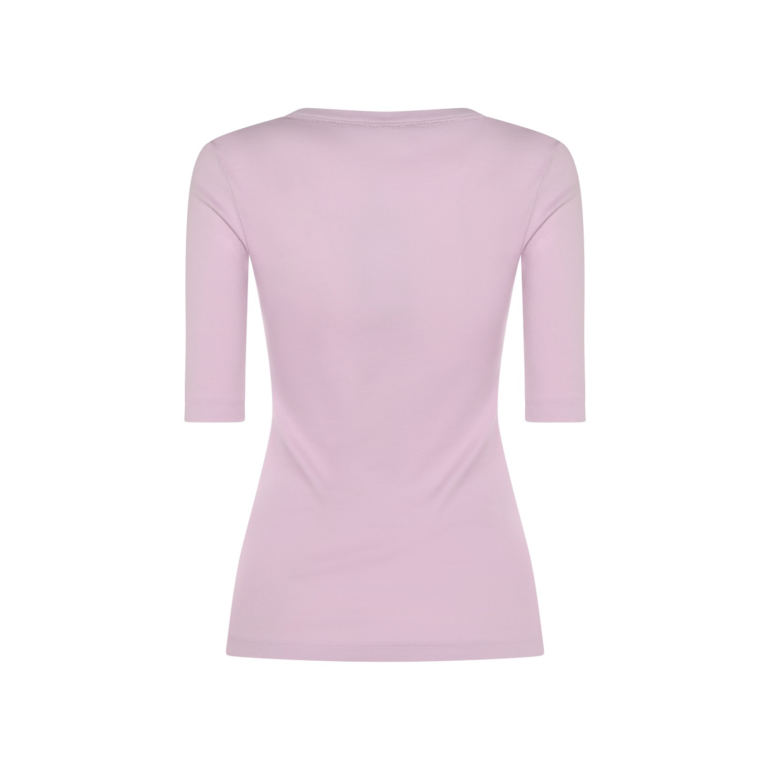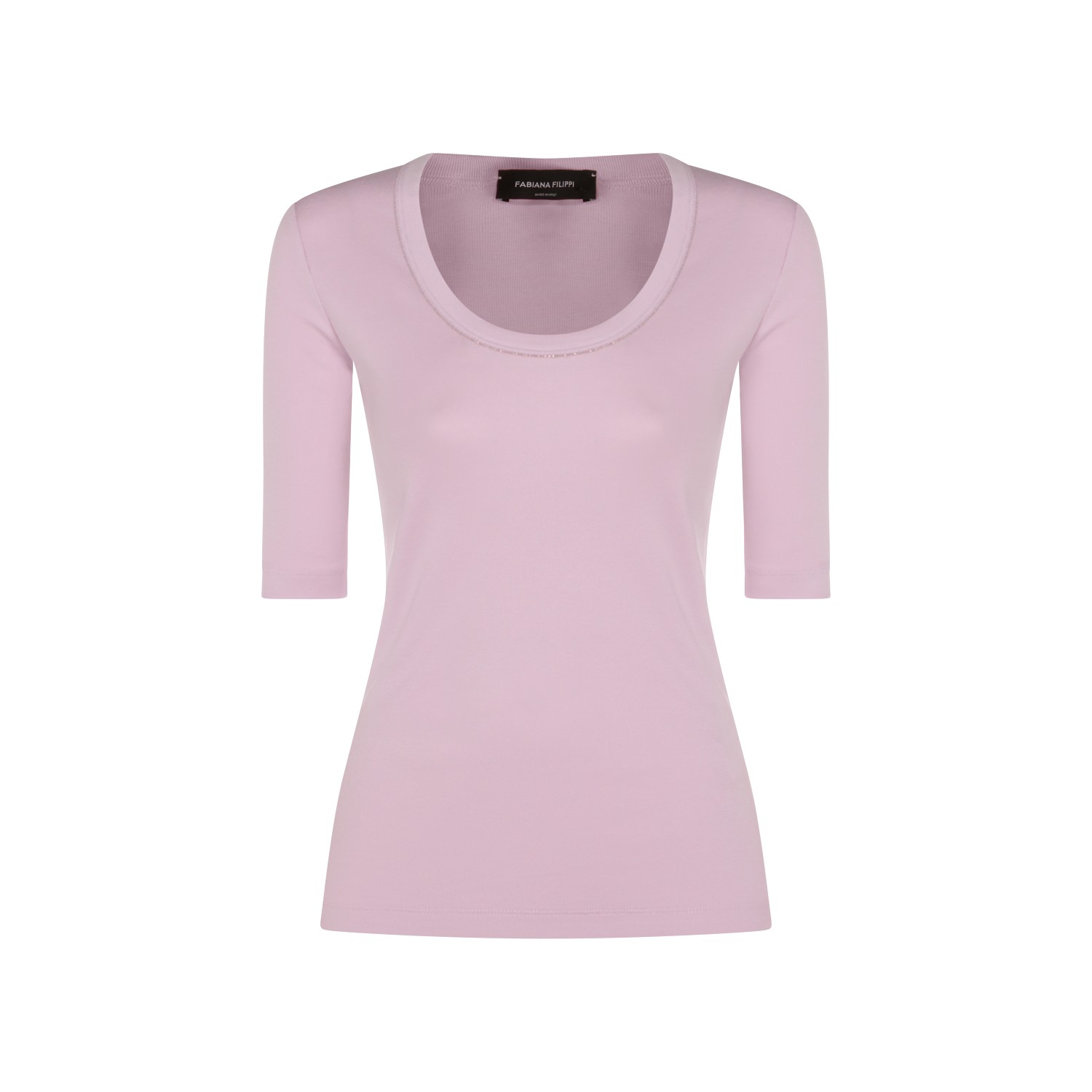 Pink cotton top from Fabiana Filippi featring round neck, mid length sleeves and regular vestibility.