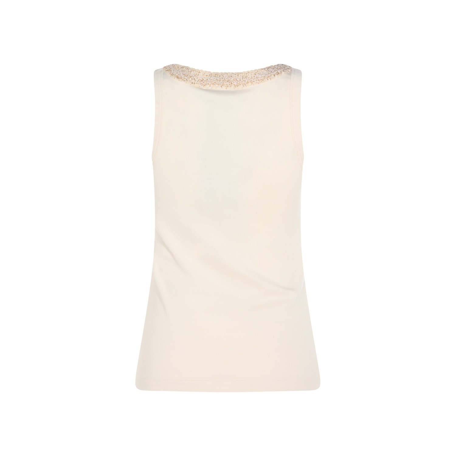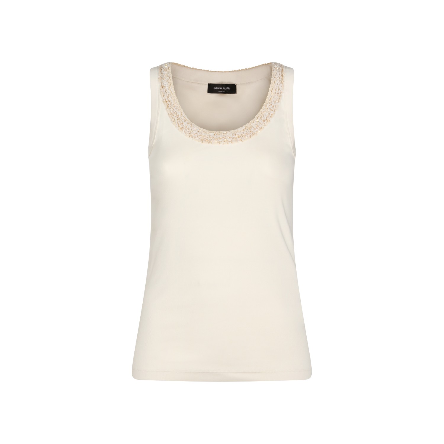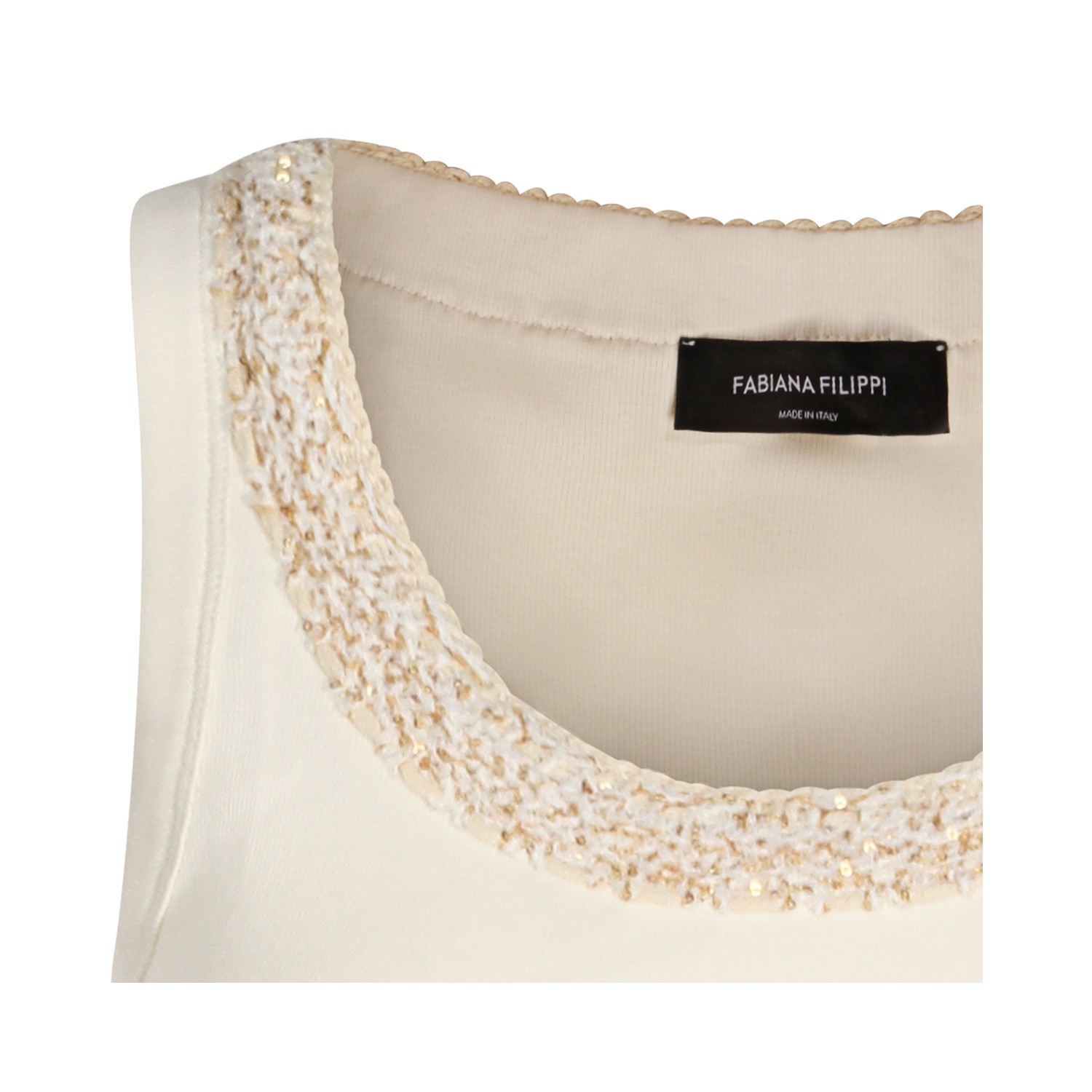 White cotton top from Fabiana Filippi featuring round neck, sleeveless, frontal detail and regular vestibility.