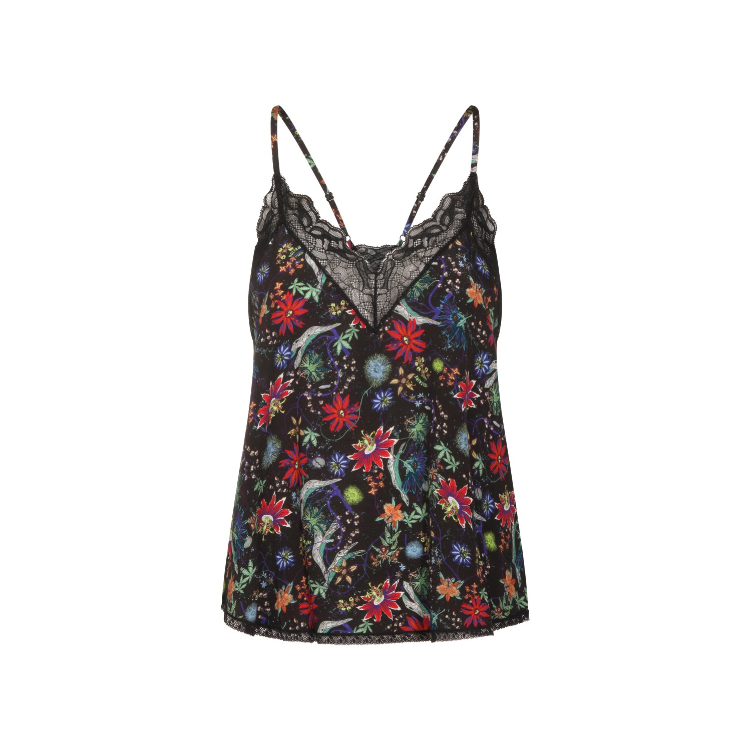 Black viscose top from Zadig & Voltaire featuring sleeveless, V-neck, lace details and all over stamp.