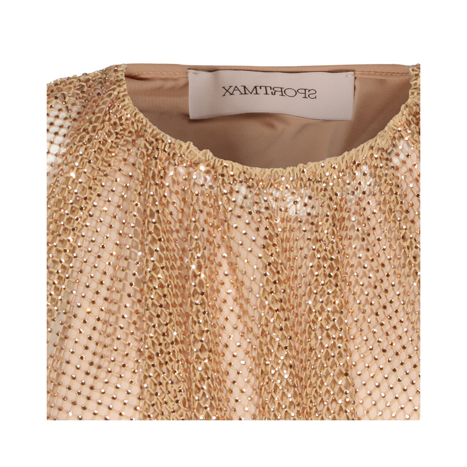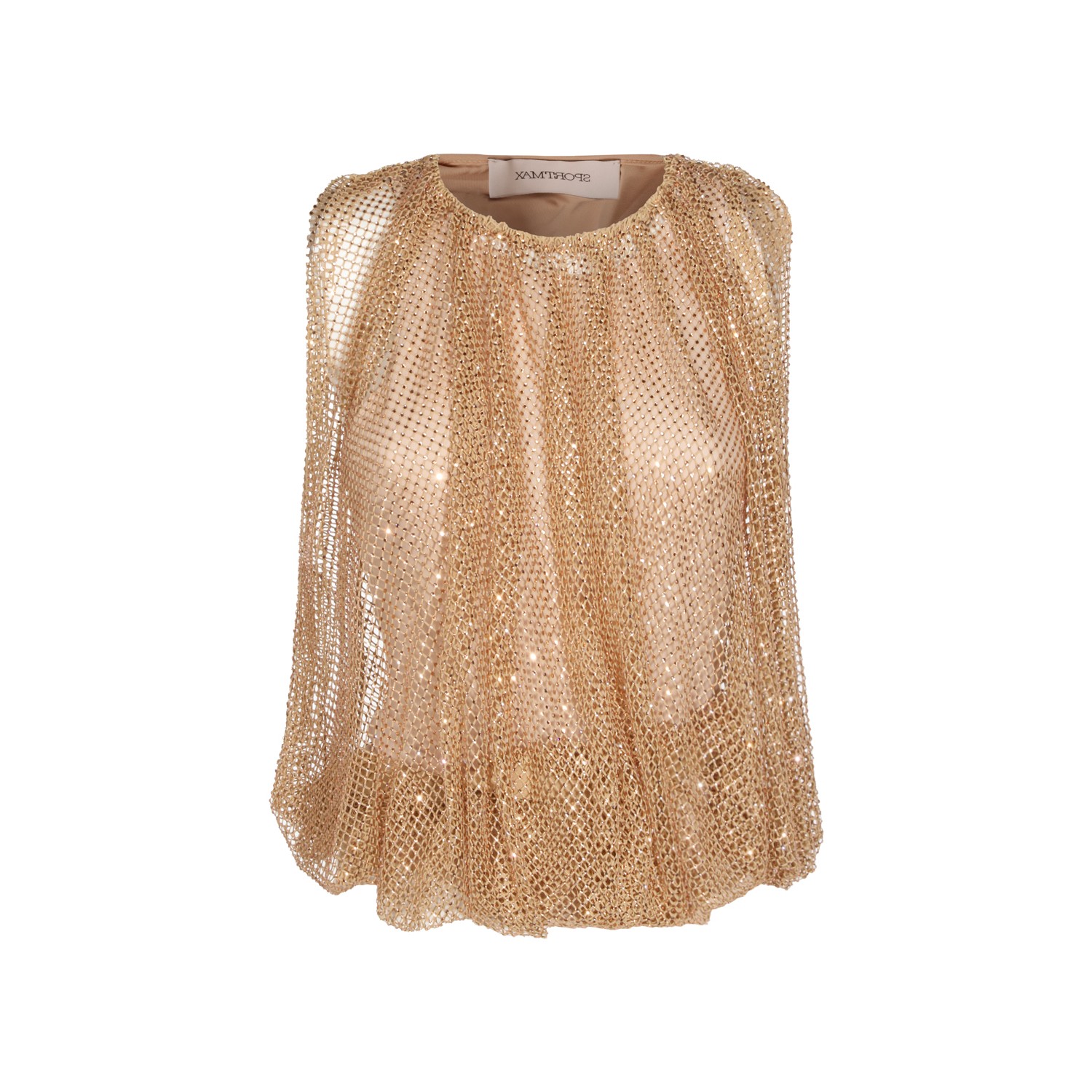 Camel top from Sportmax featuring round collar, sleeveless, loose vestibility, transparencies and tank top.