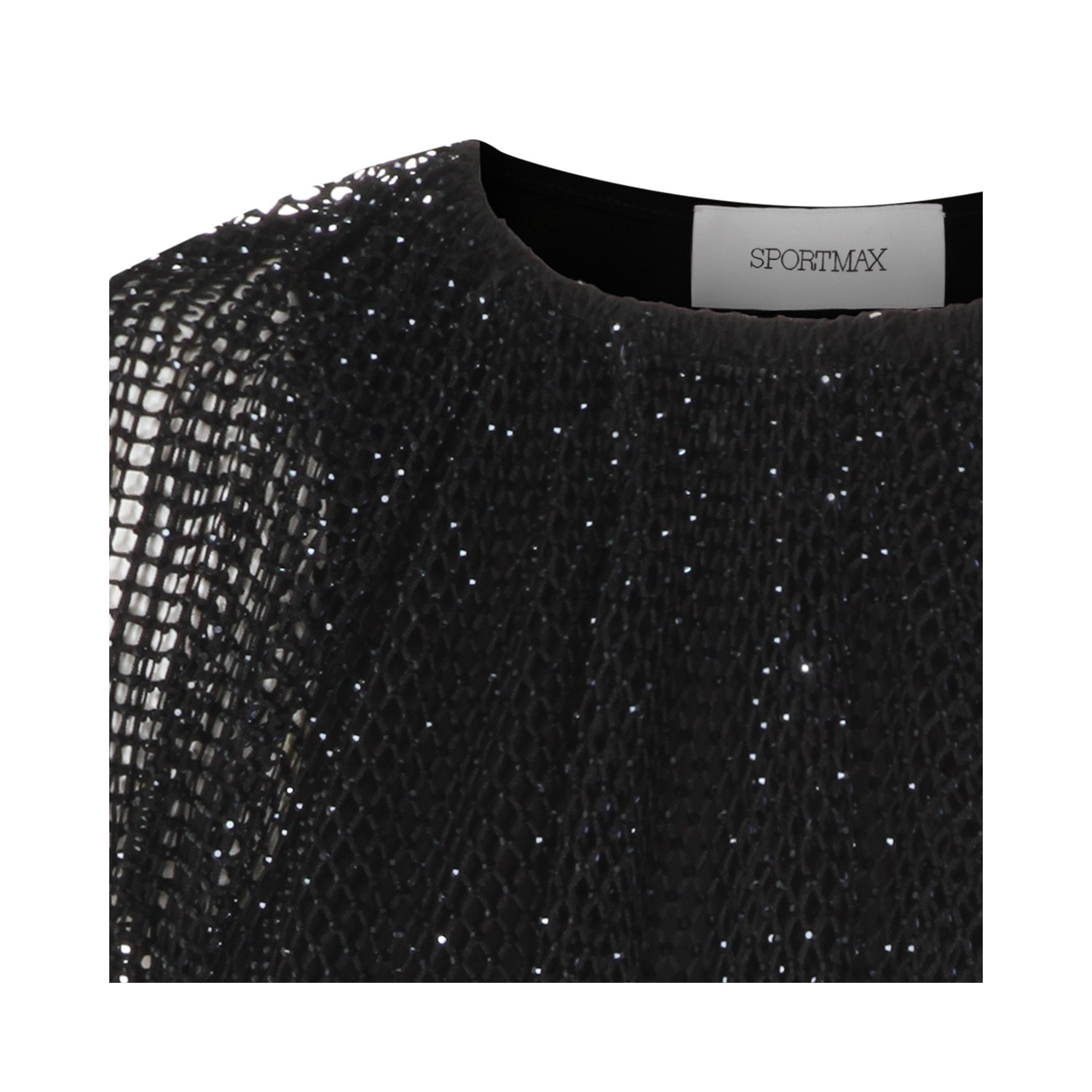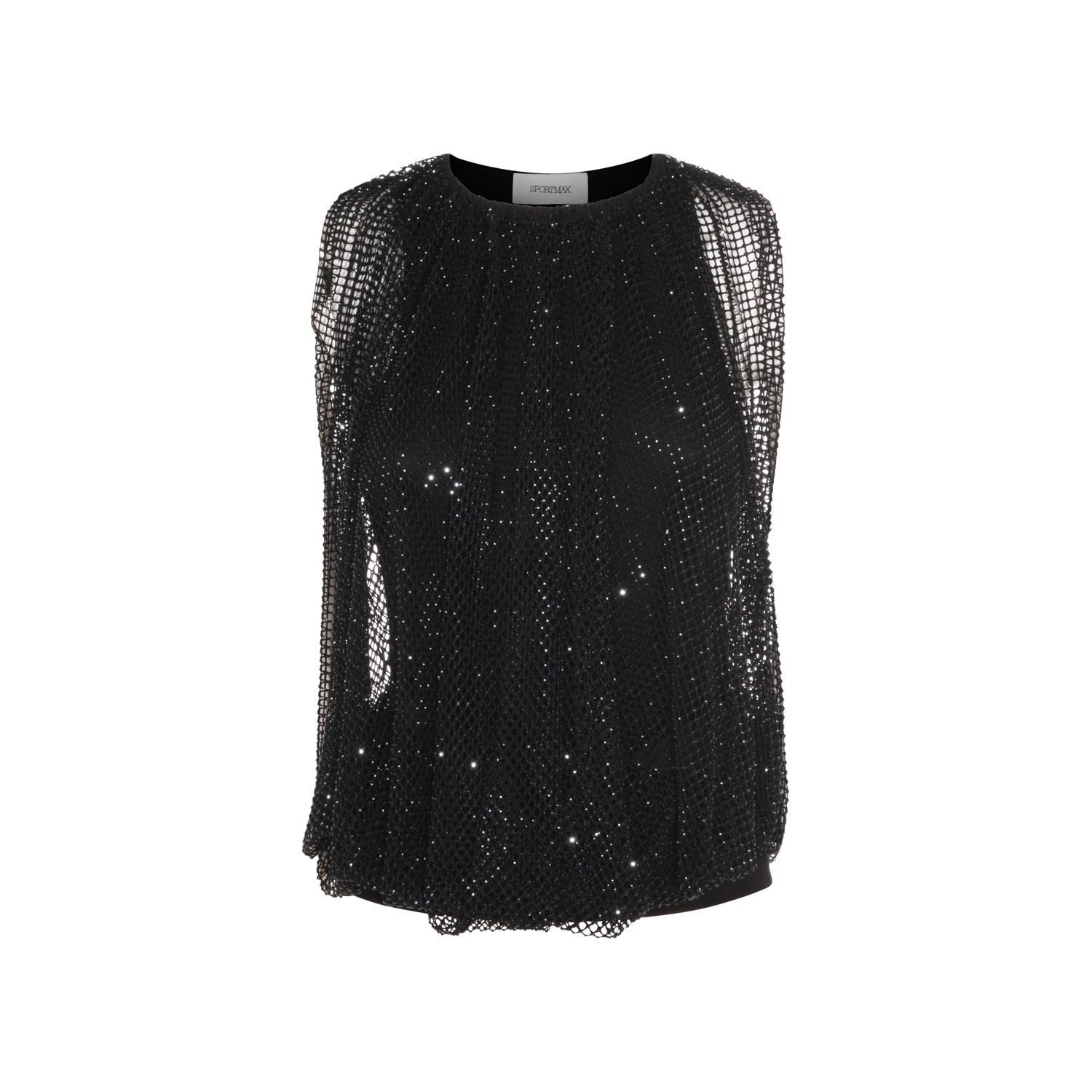 Black top from Sportmax featuring round collar, sleeveless, loose vestibility, transparencies and tank top.