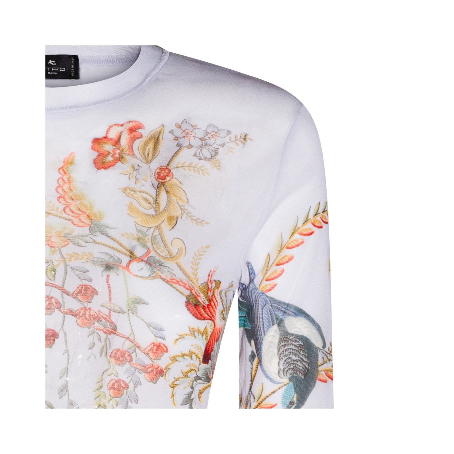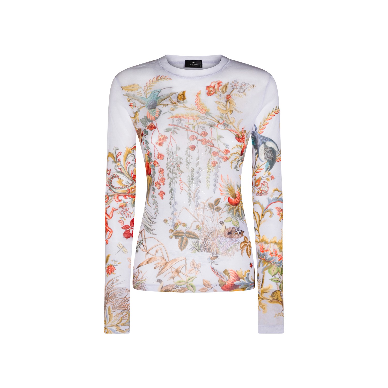 White top from Etro featuring long sleeves, round collar and print.