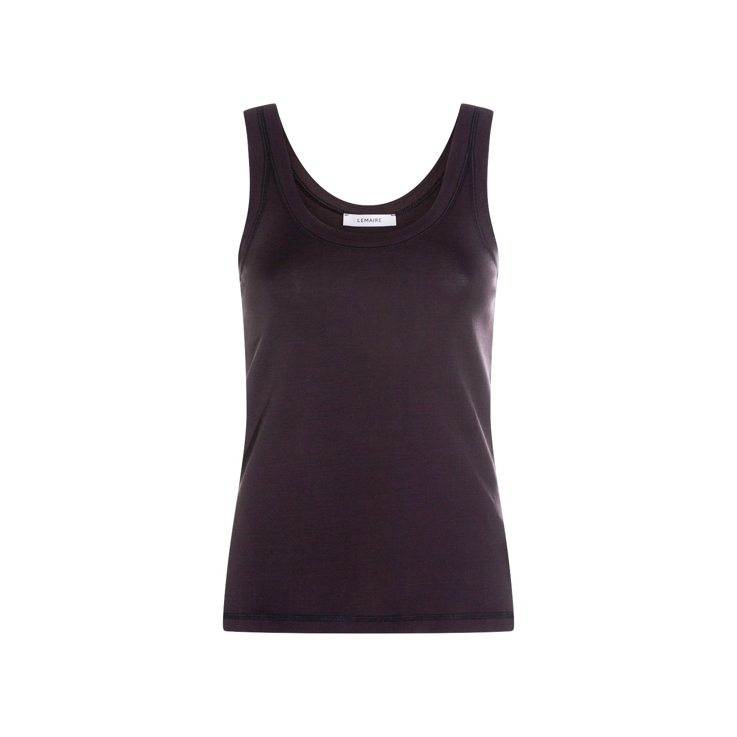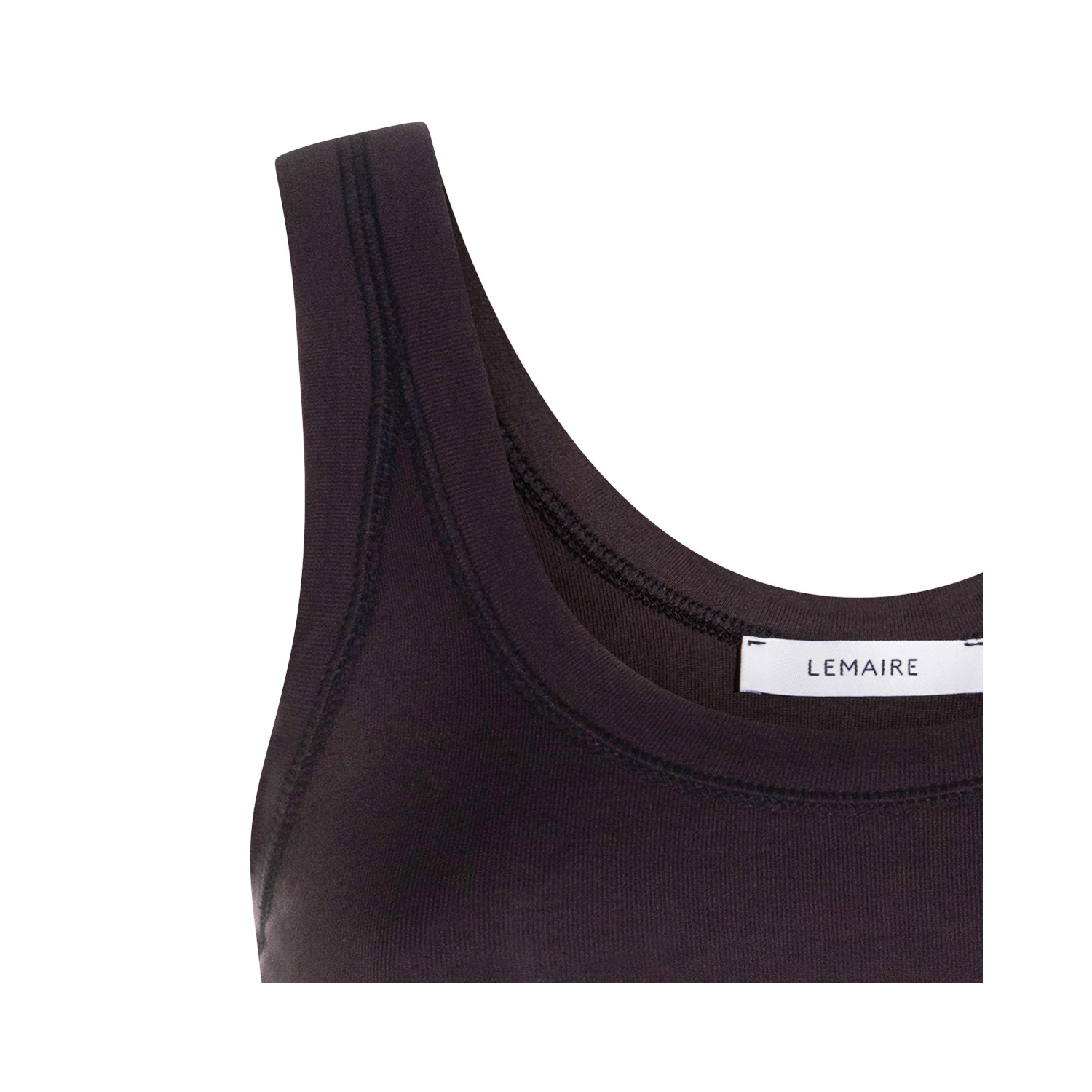 Black cotton top from Lemaire featuring round collar, sleeveless, rib collar and straps, fitted shape and regular vestibility.