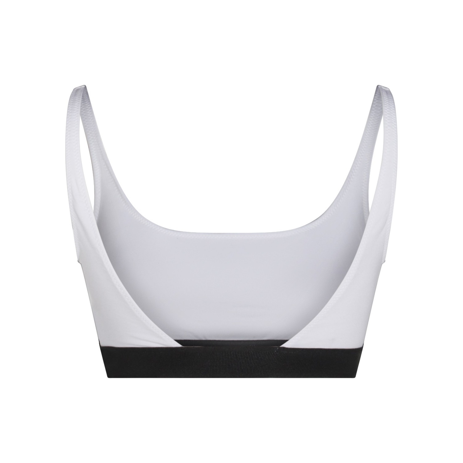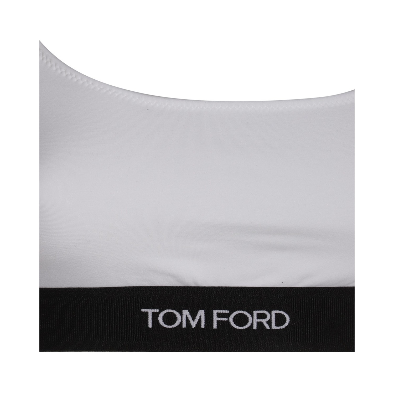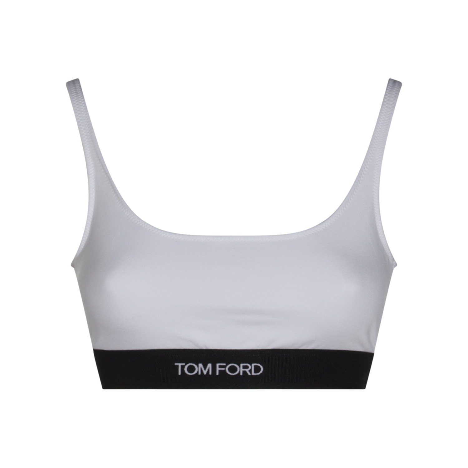 White modal top from Tom Ford featuring wide neckline, shoulder straps and elastic waistband with logo.