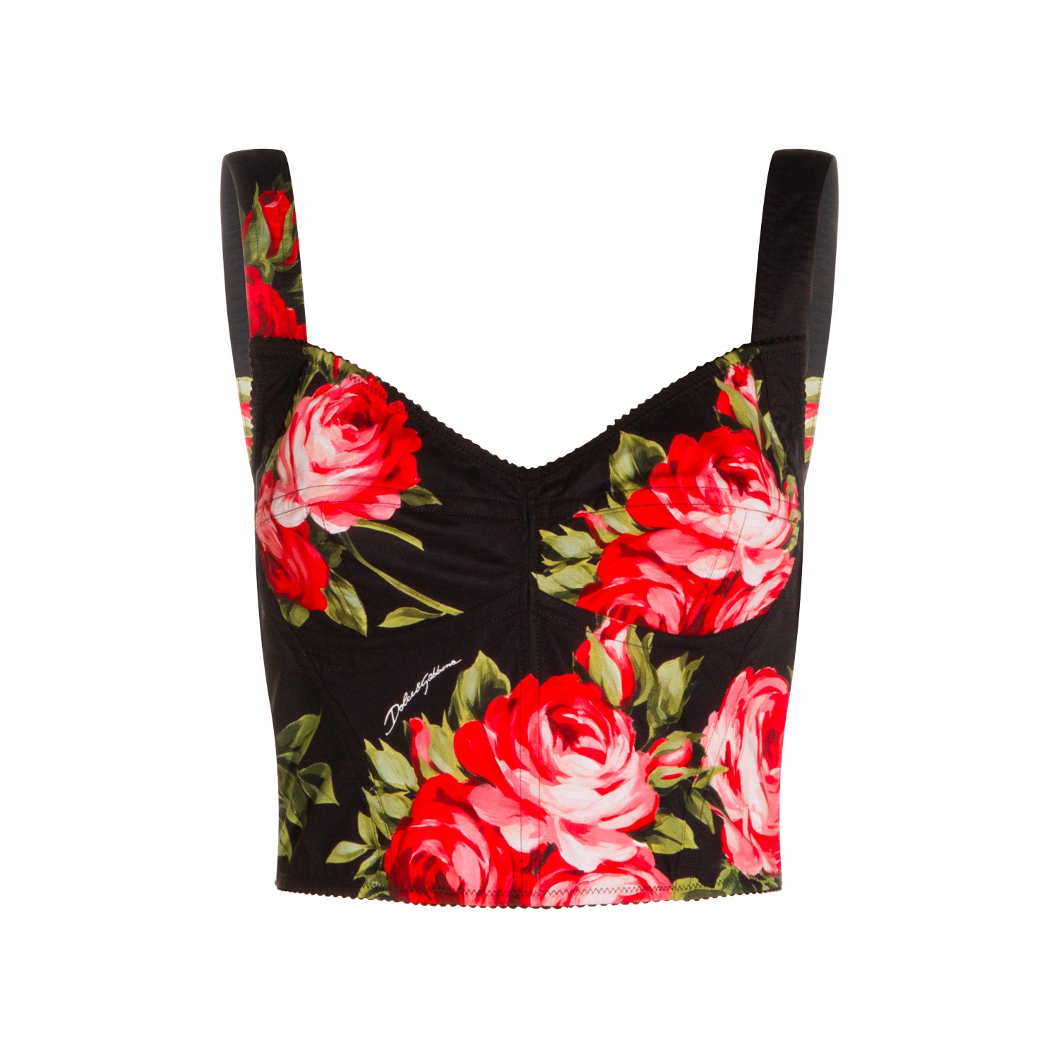 Multicolor cotton top from Dolce & Gabbana featuring heart neckline, sleeveless, thin straps, floral pattern and regular fit.