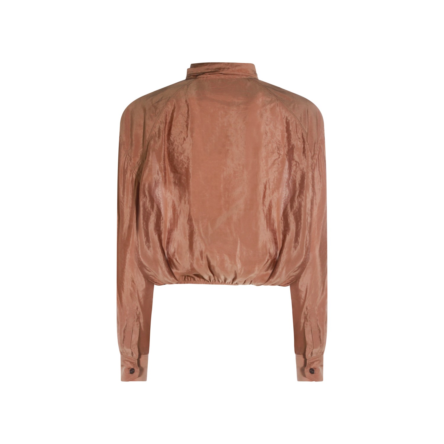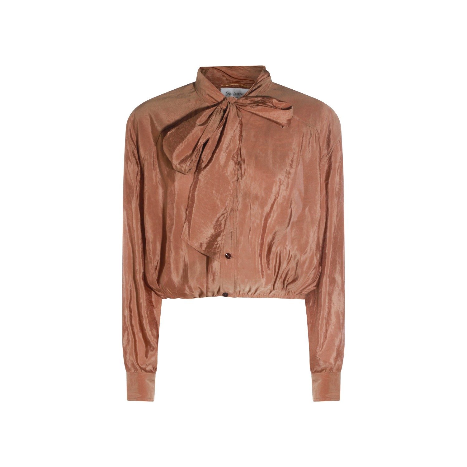 Beige top from Saint Laurent featuring long sleeves, collar with laces, buttons fastening and soft vestibility.
