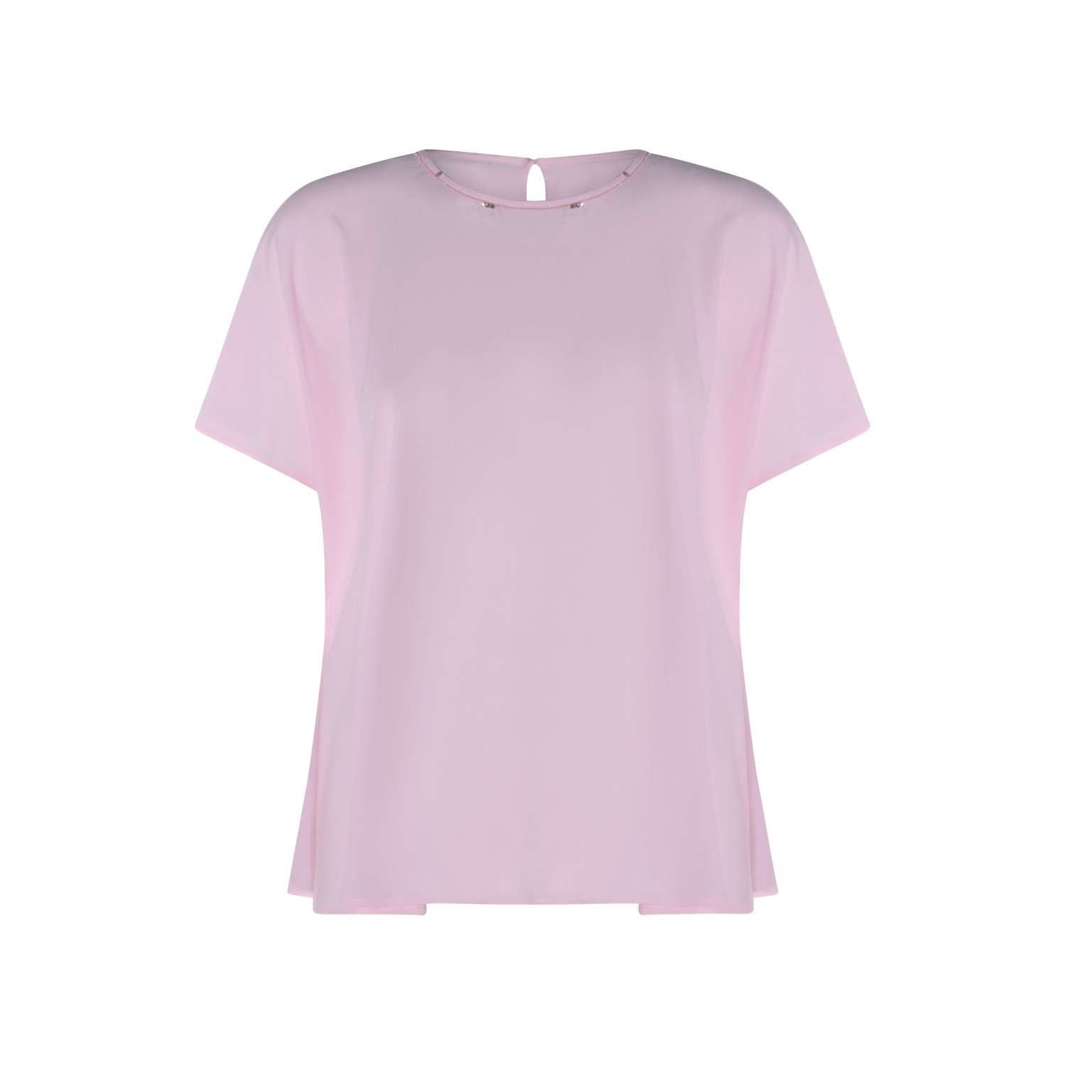 Pink silk blend top from Fabiana Filippi featuring short sleeves, round neck, button closure at back, metal details and regular fit.