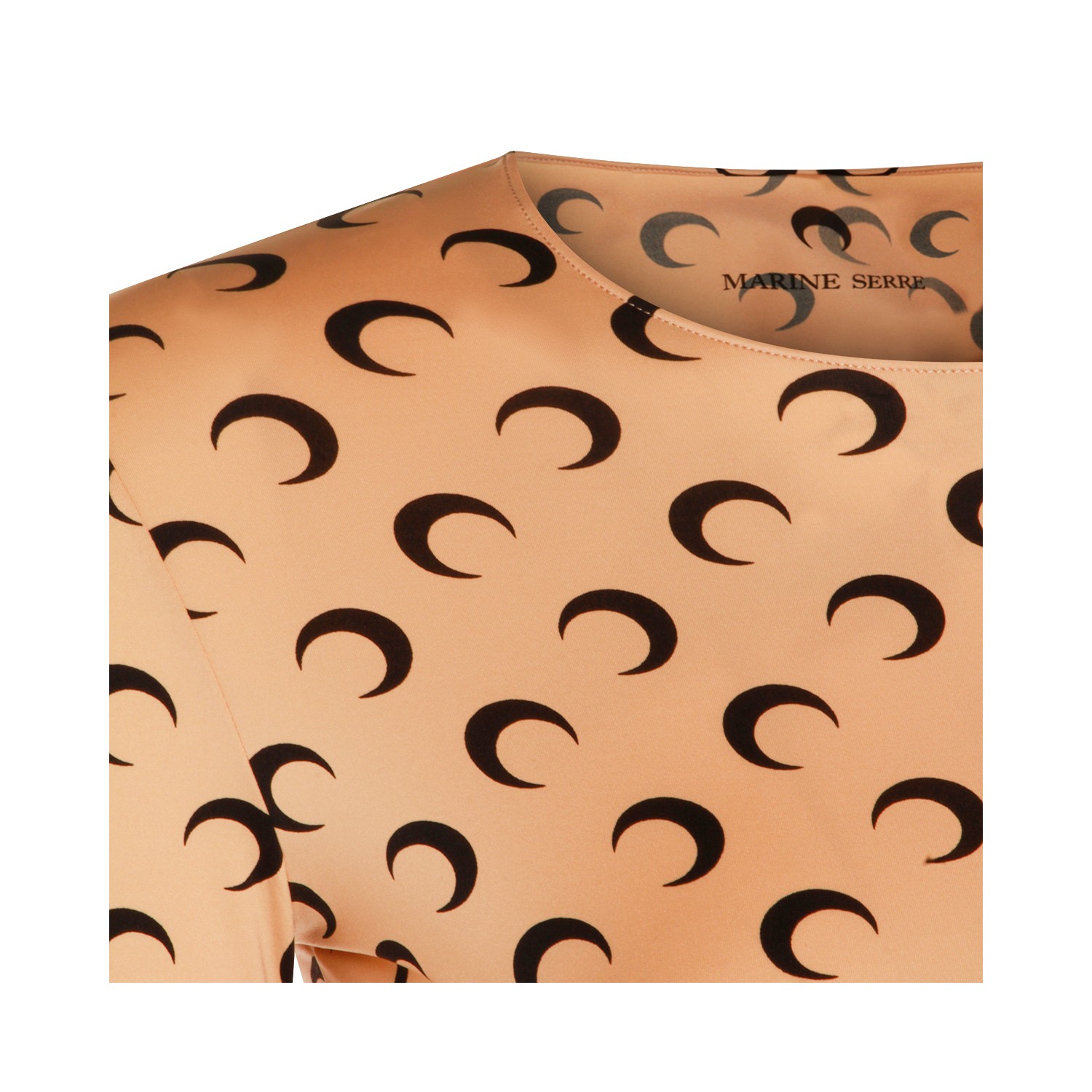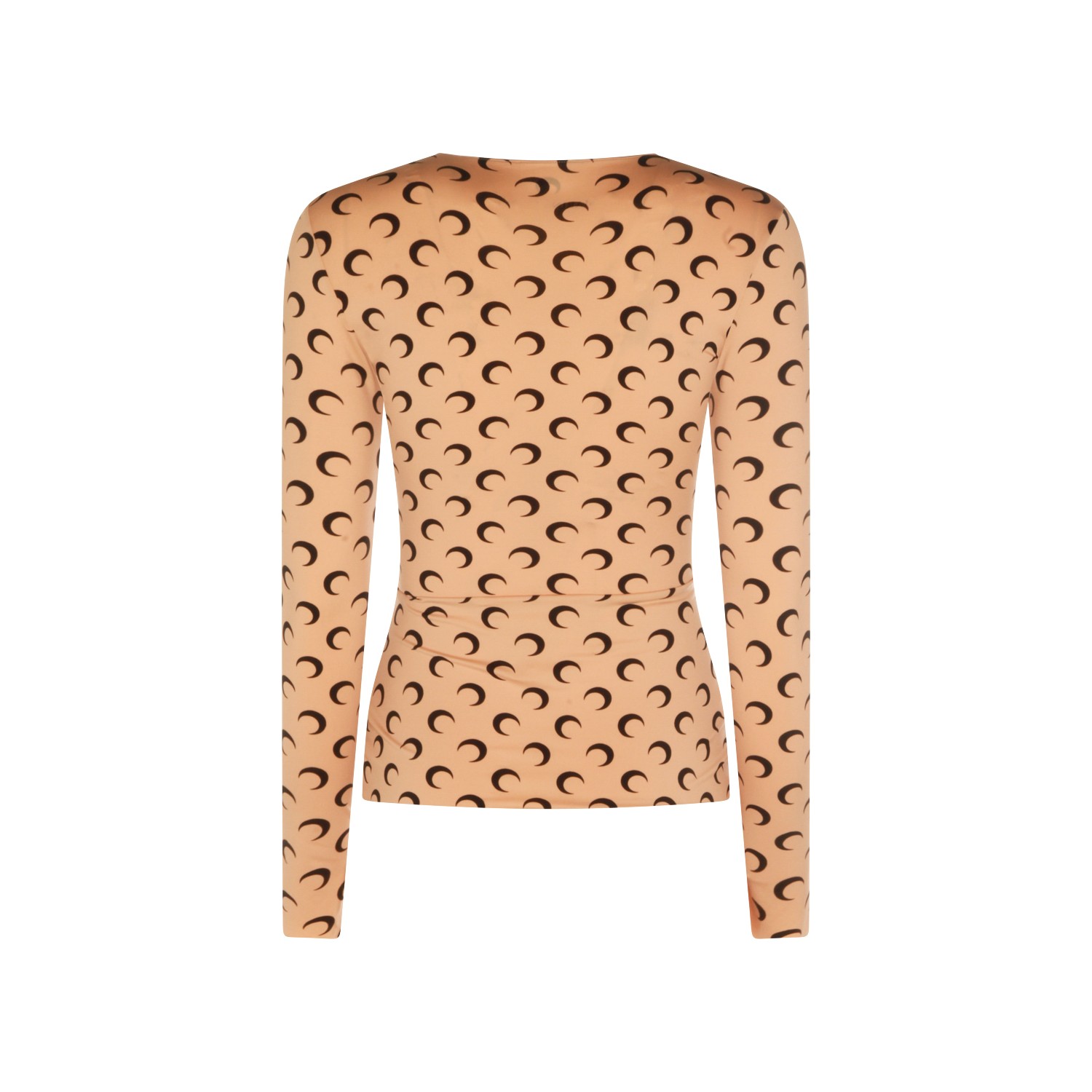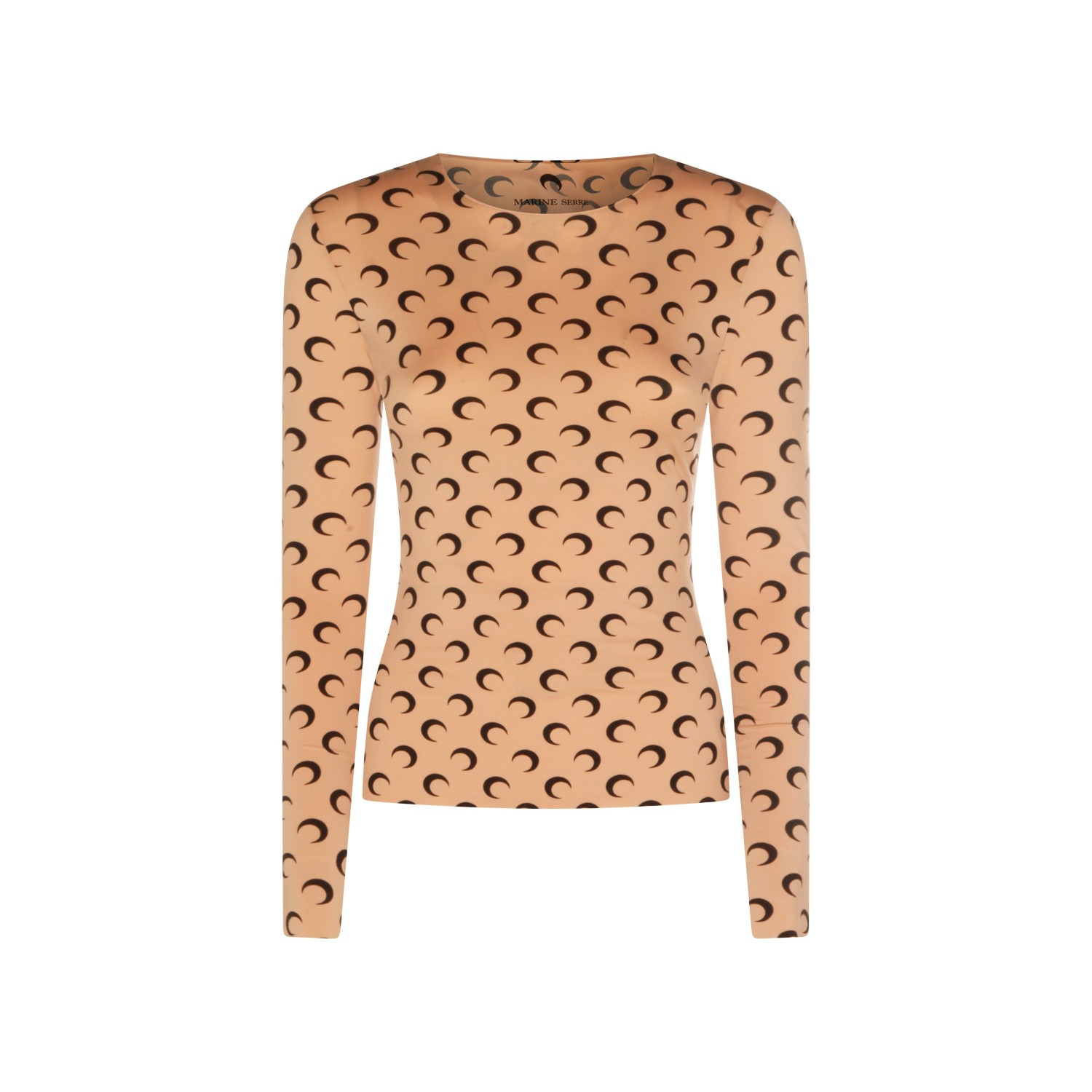 Beige top from Marine Serre featuring crew neckline, long sleeves, all-over Moon print and regular fit.