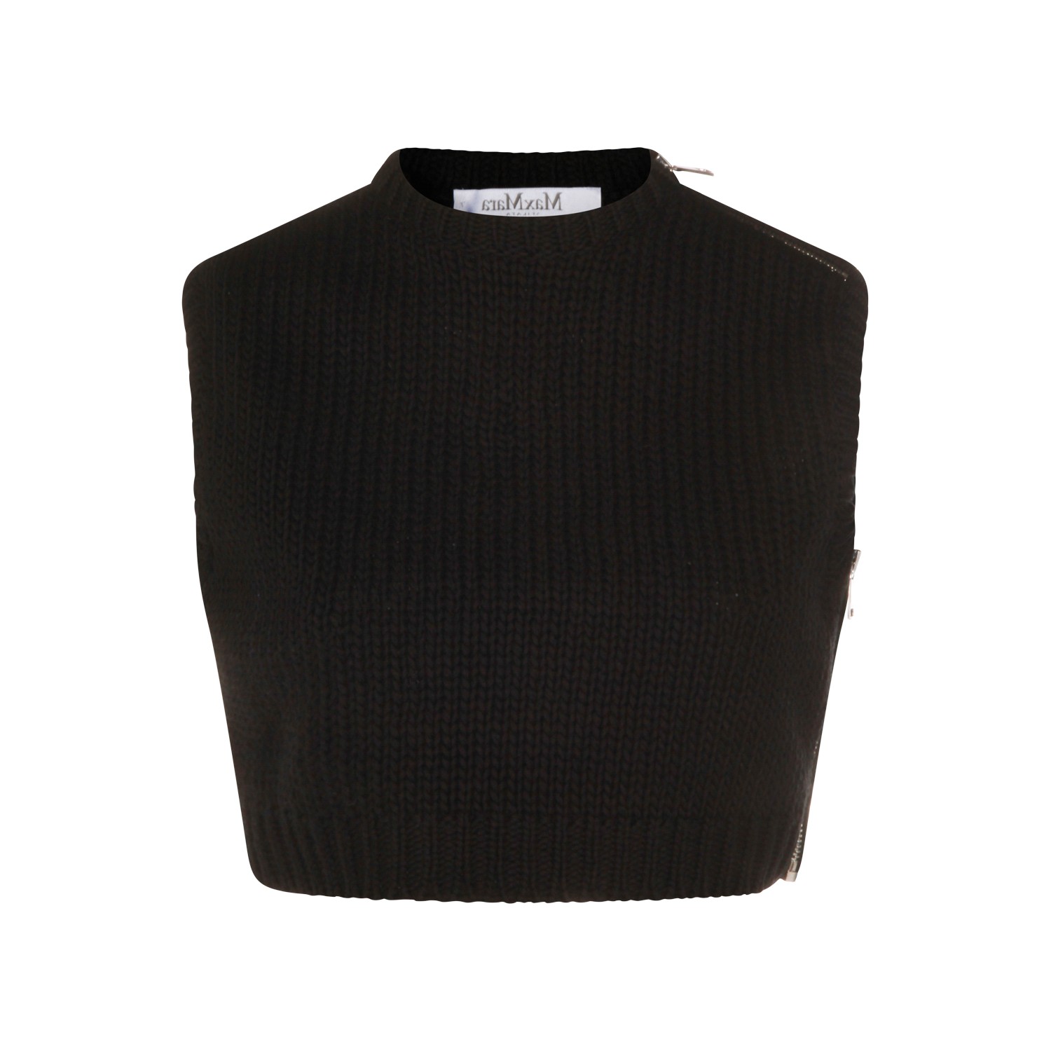 Black cotton MxSvolto top from Max Mara featuring round collar, sleeveless and cropped.