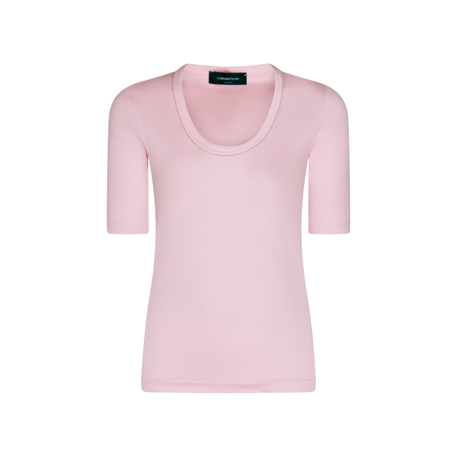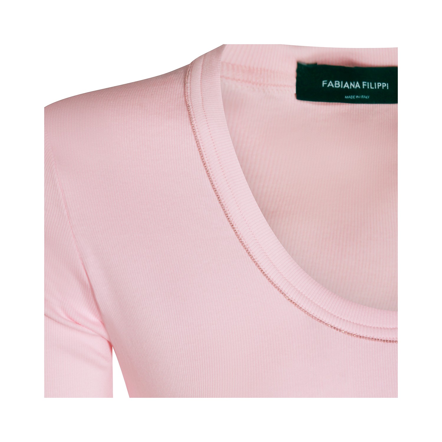 Pink cotton top from Fabiana Filippi featuring round collar, short sleeves, embellishments and slim fit.
