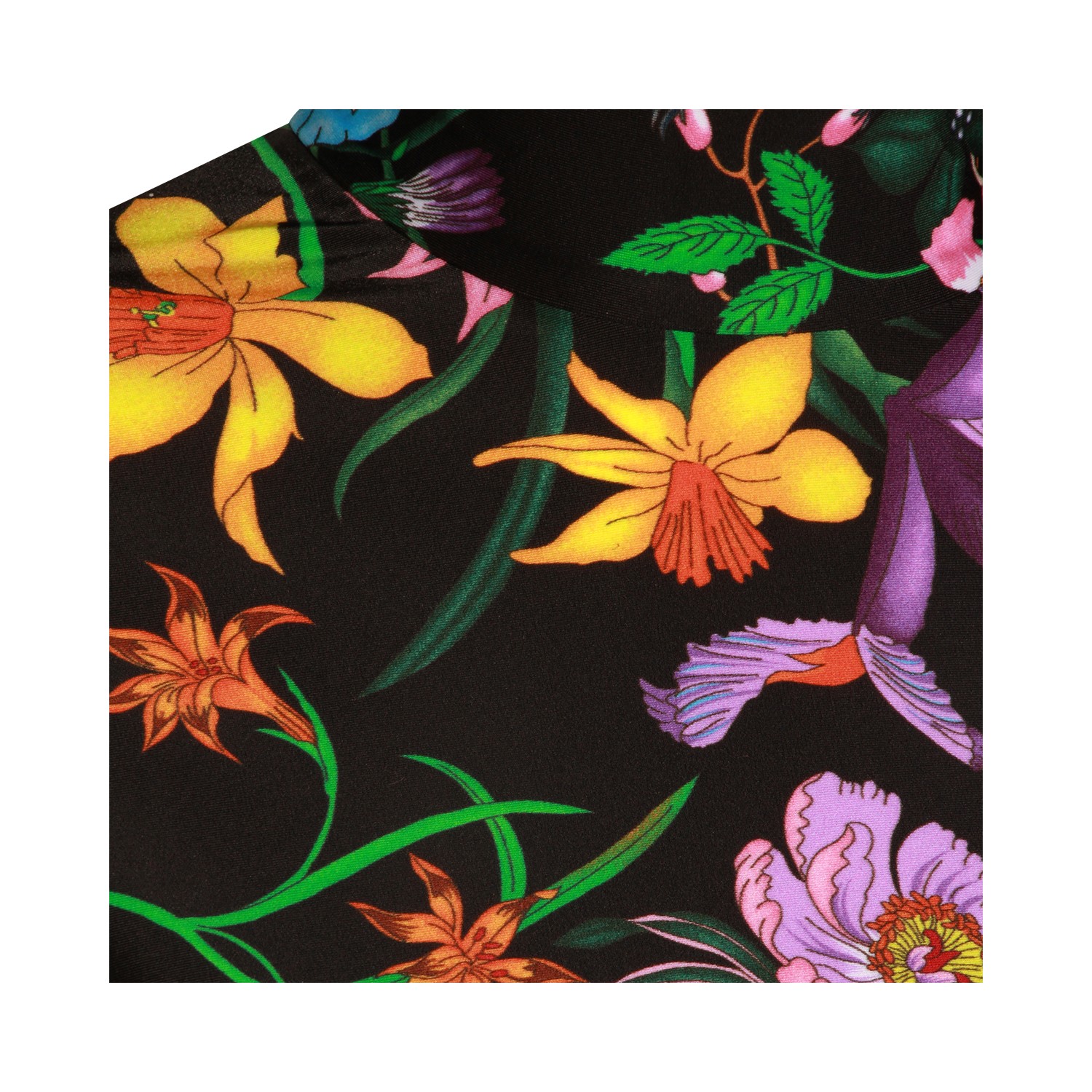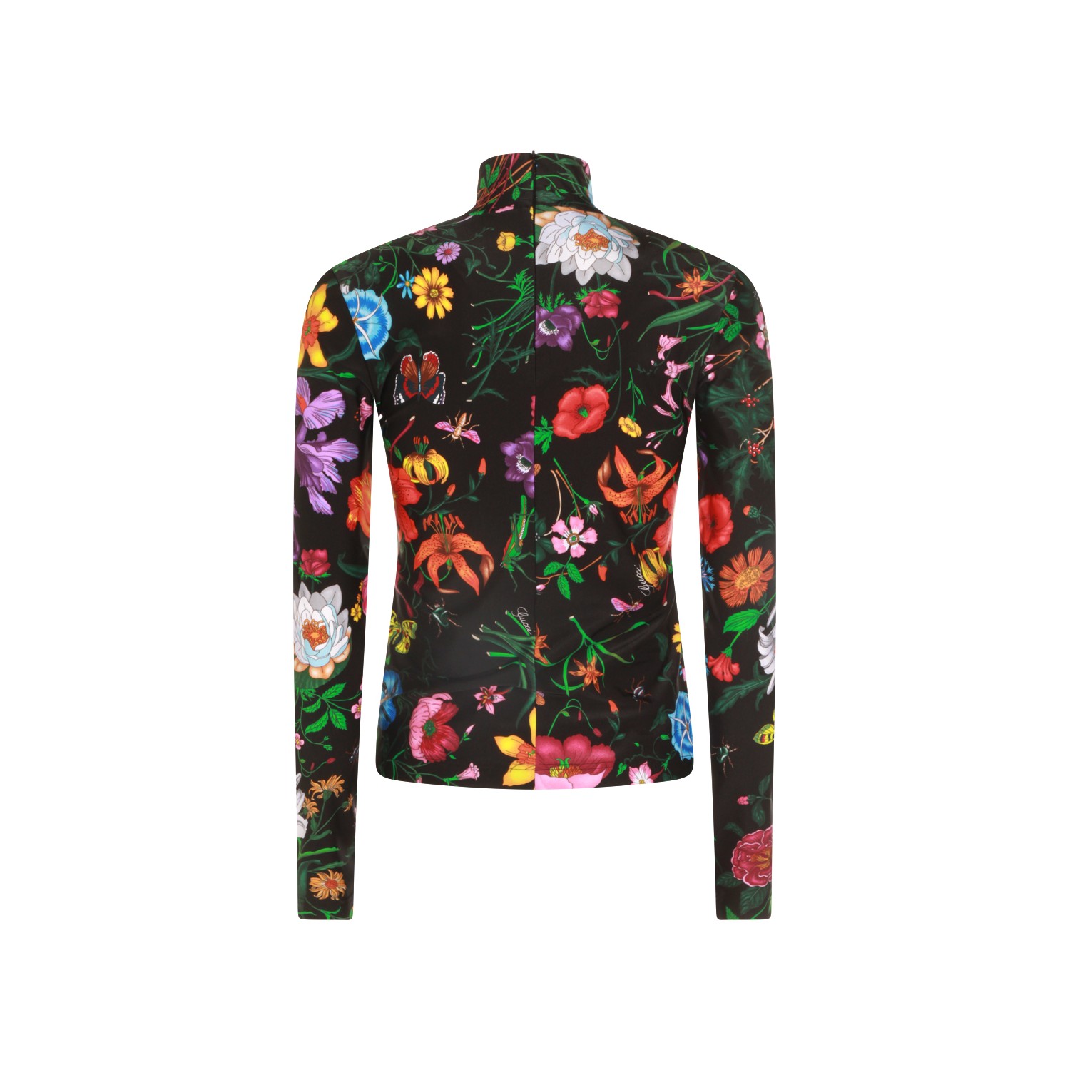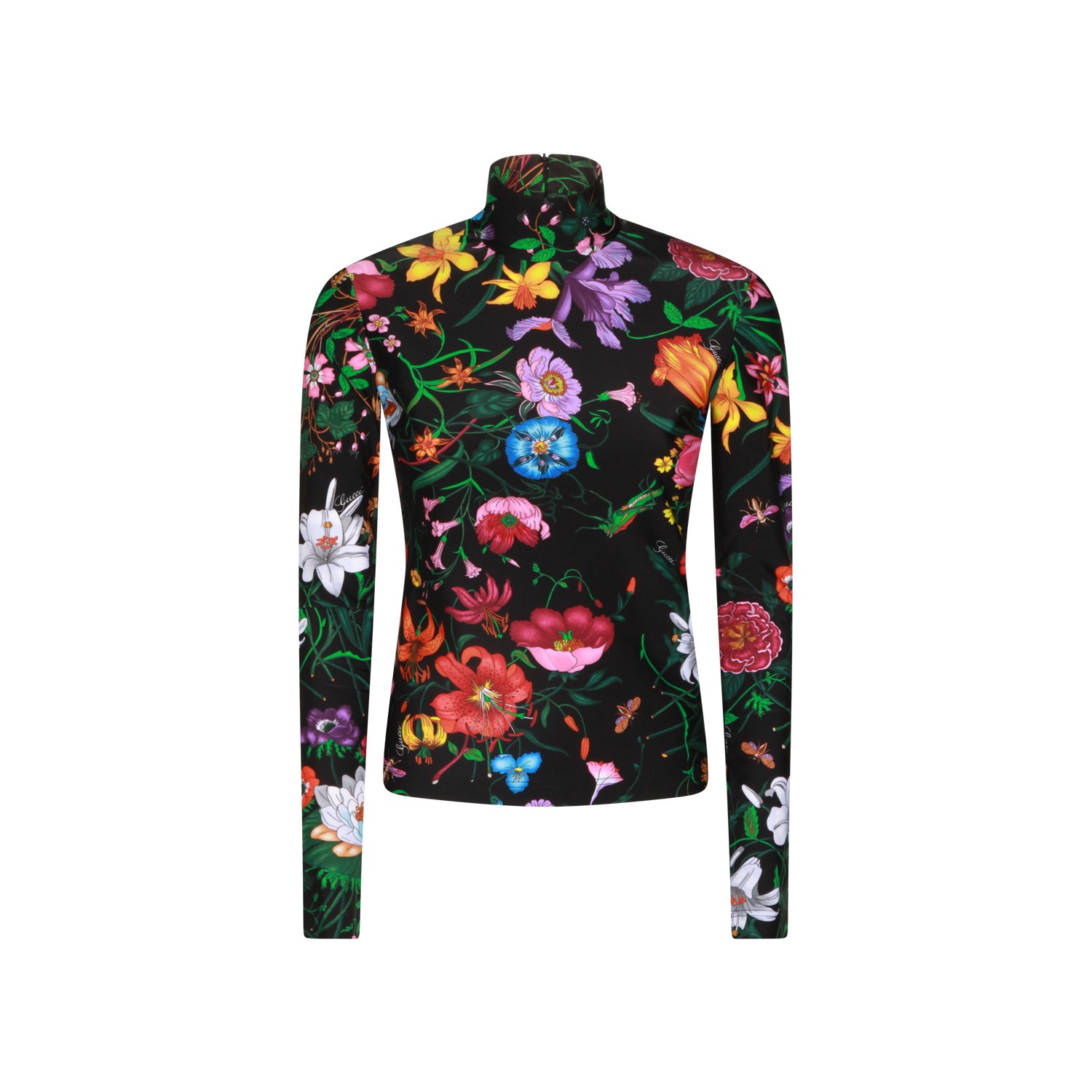 Multicolor top from Gucci featuring high collar, long sleeves, floral pattern and tight fit.