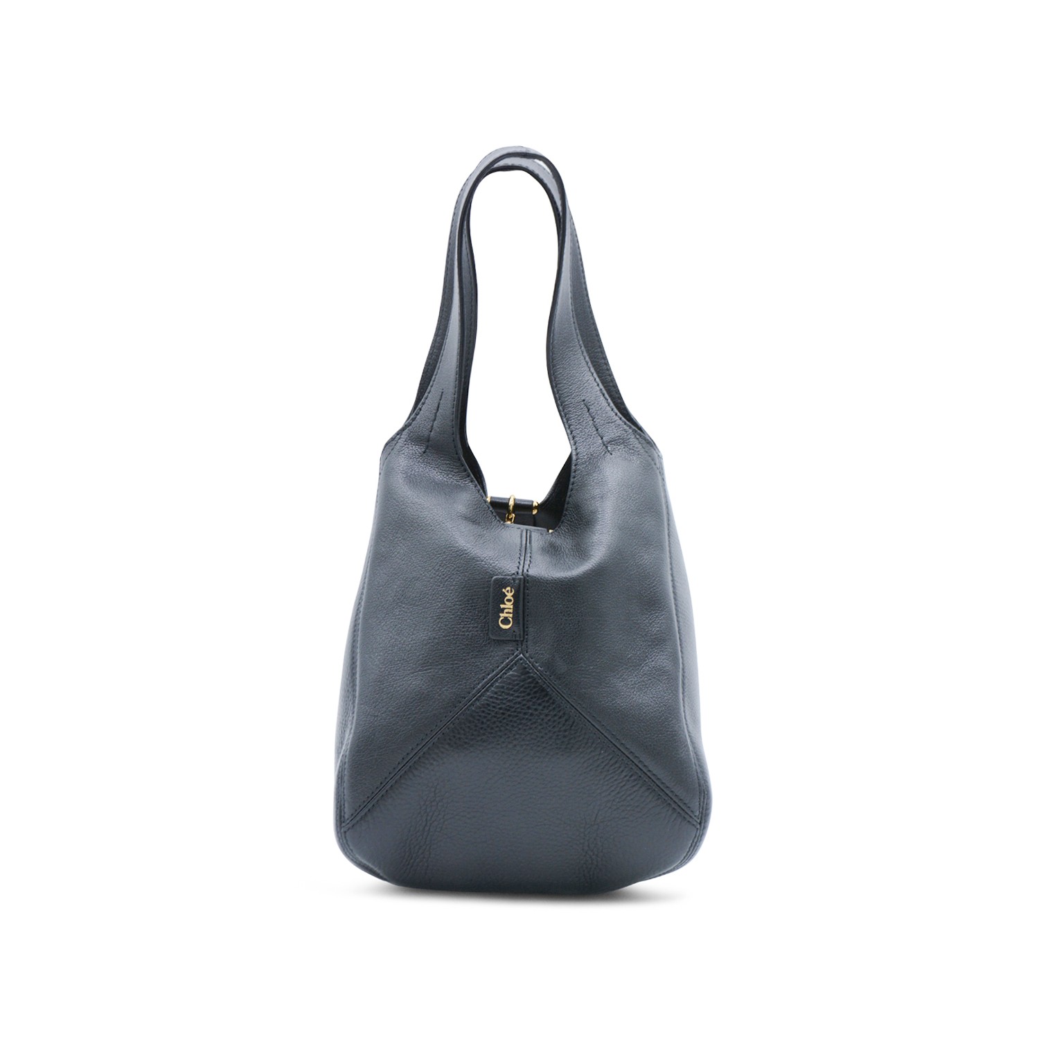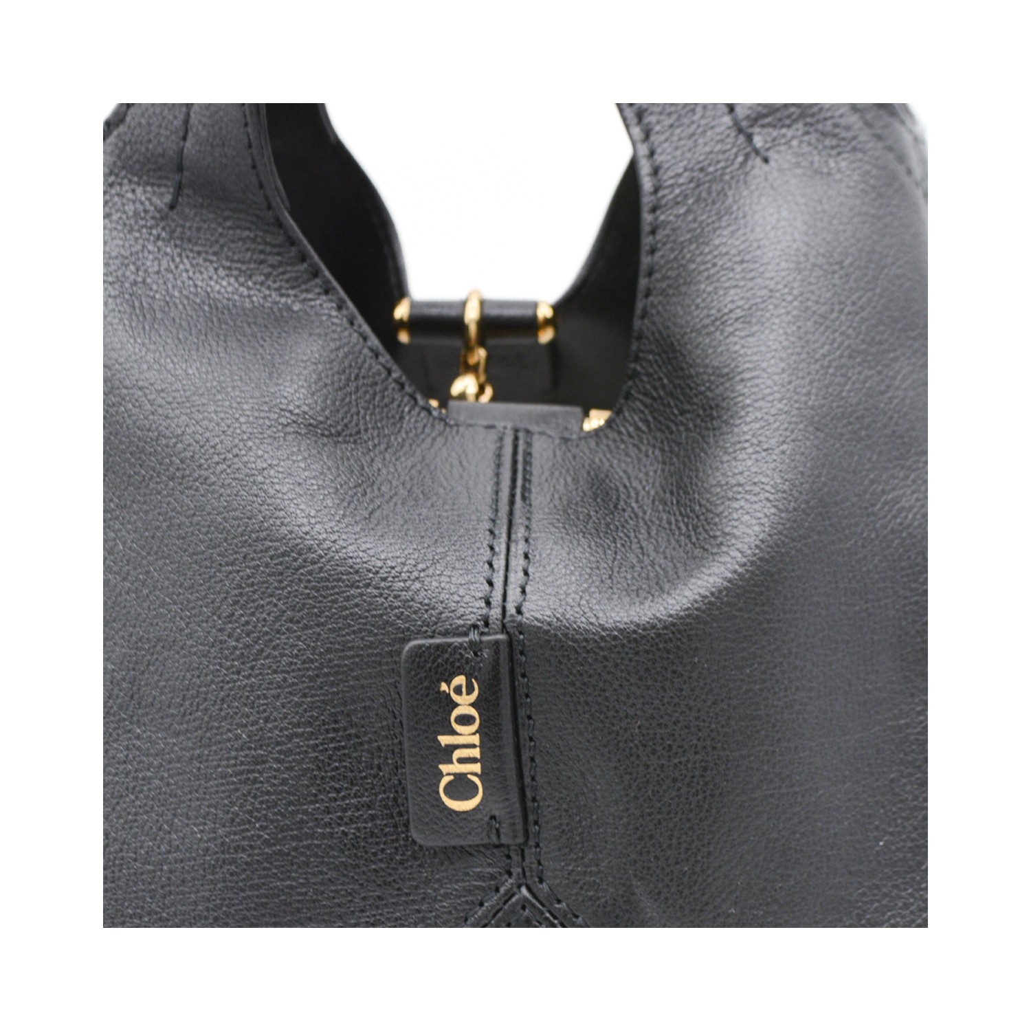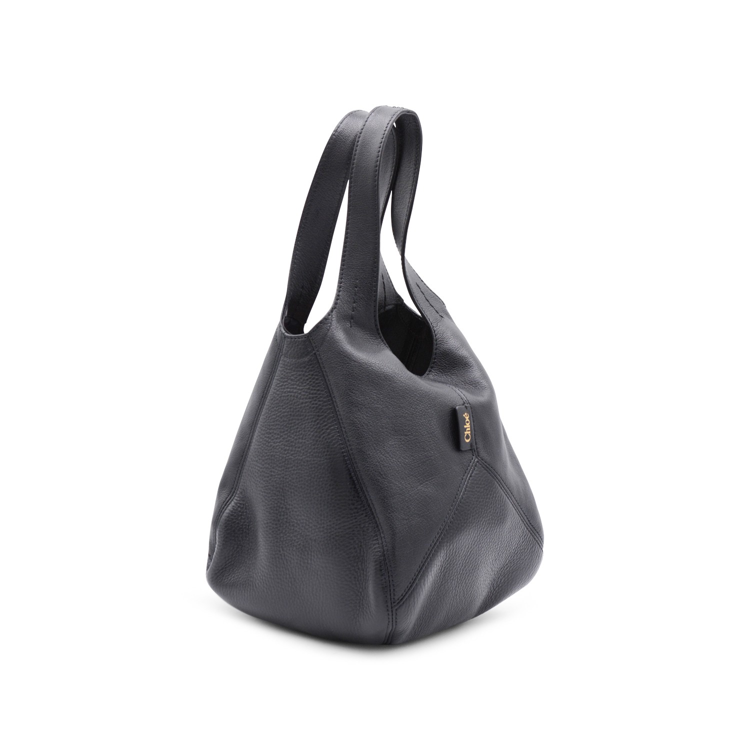 Black leather Balloon small tote from Chlofeaturing handles, frontal logo, toggle closure and main compartment.