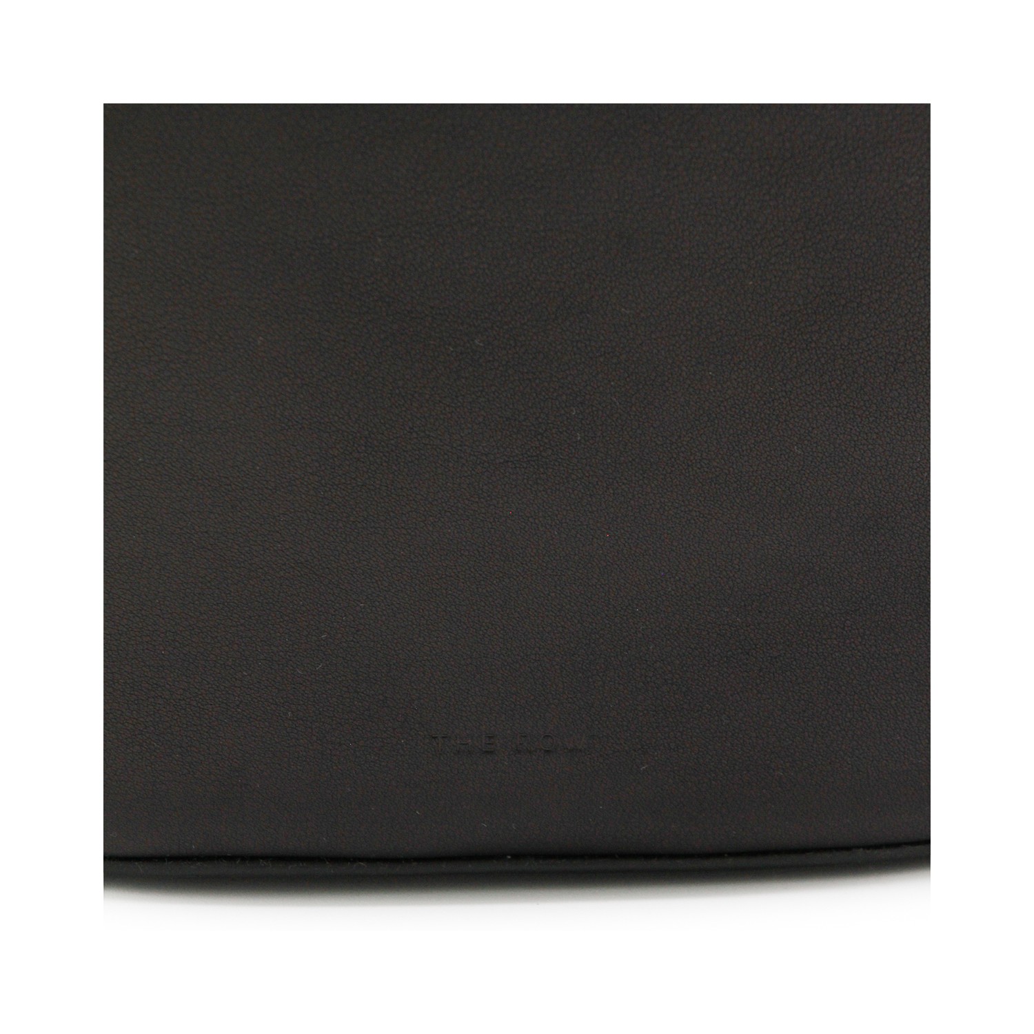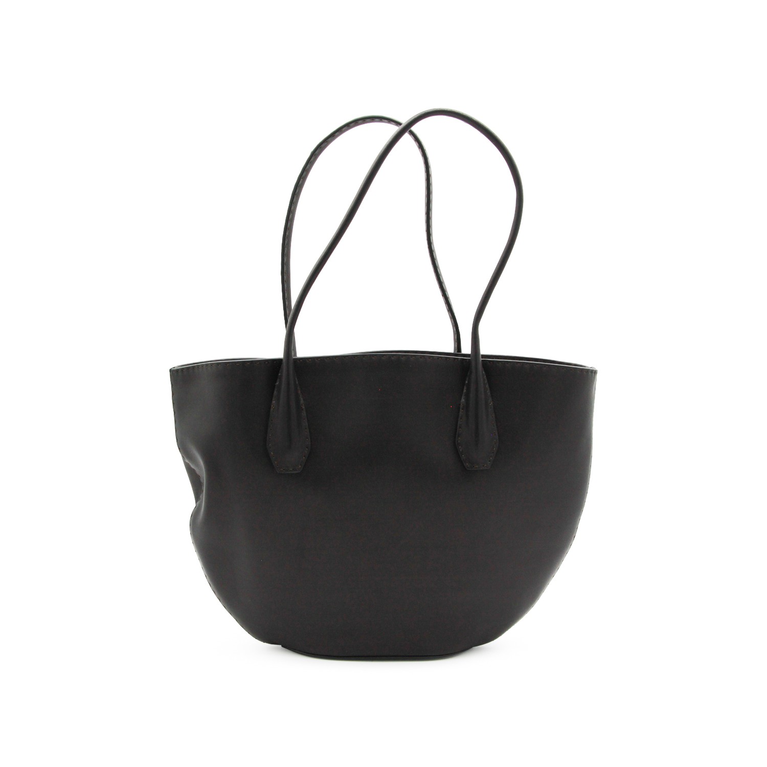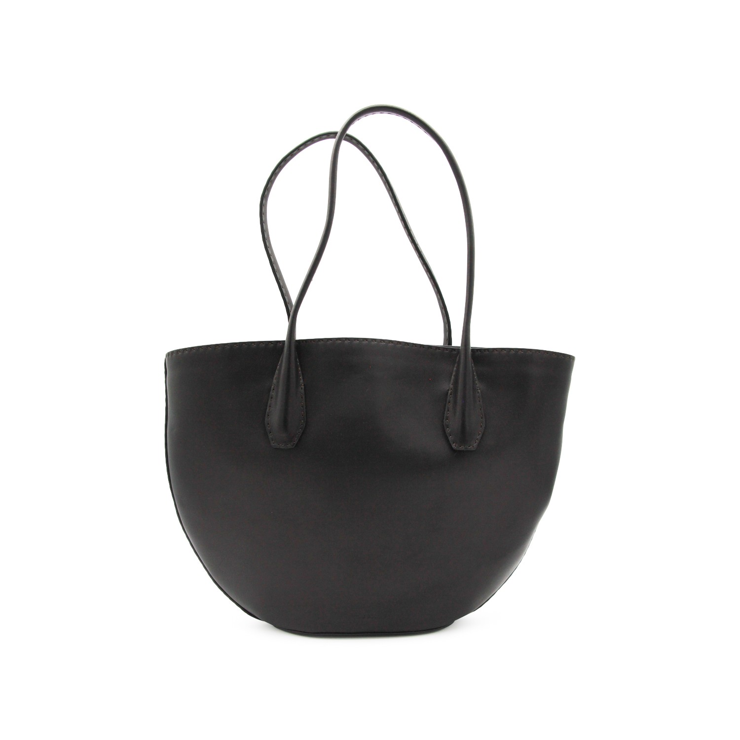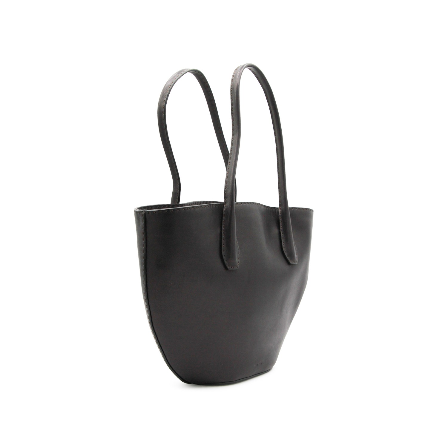 Black leather Alger tote from The Row featuring top handles, hand stitching and main compartment.