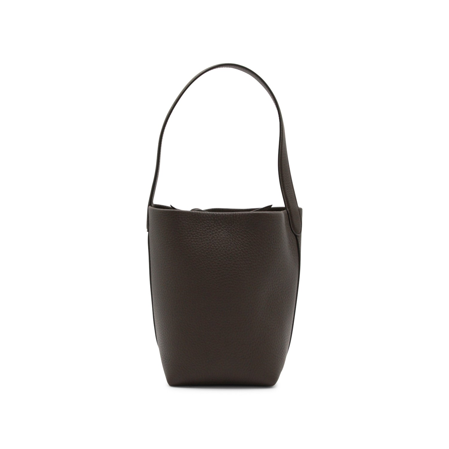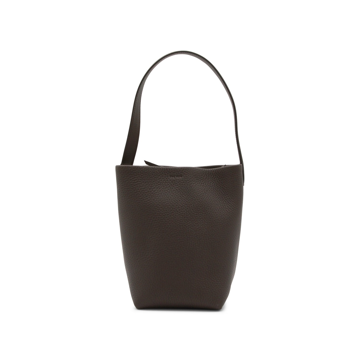 Deep brown leather tote from The Row featuring upper handle, laces fastening, single compartment and frontal logo.