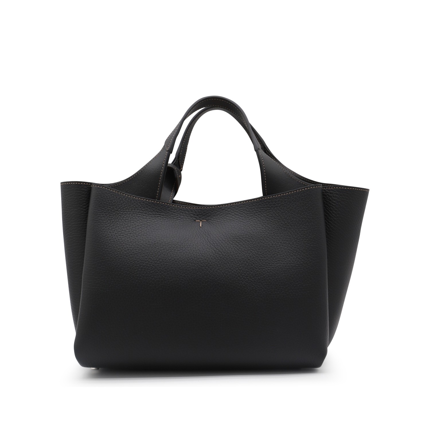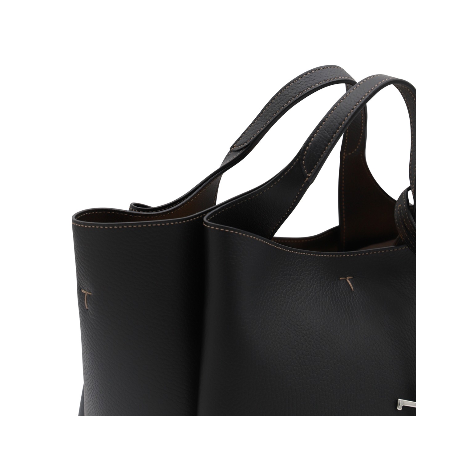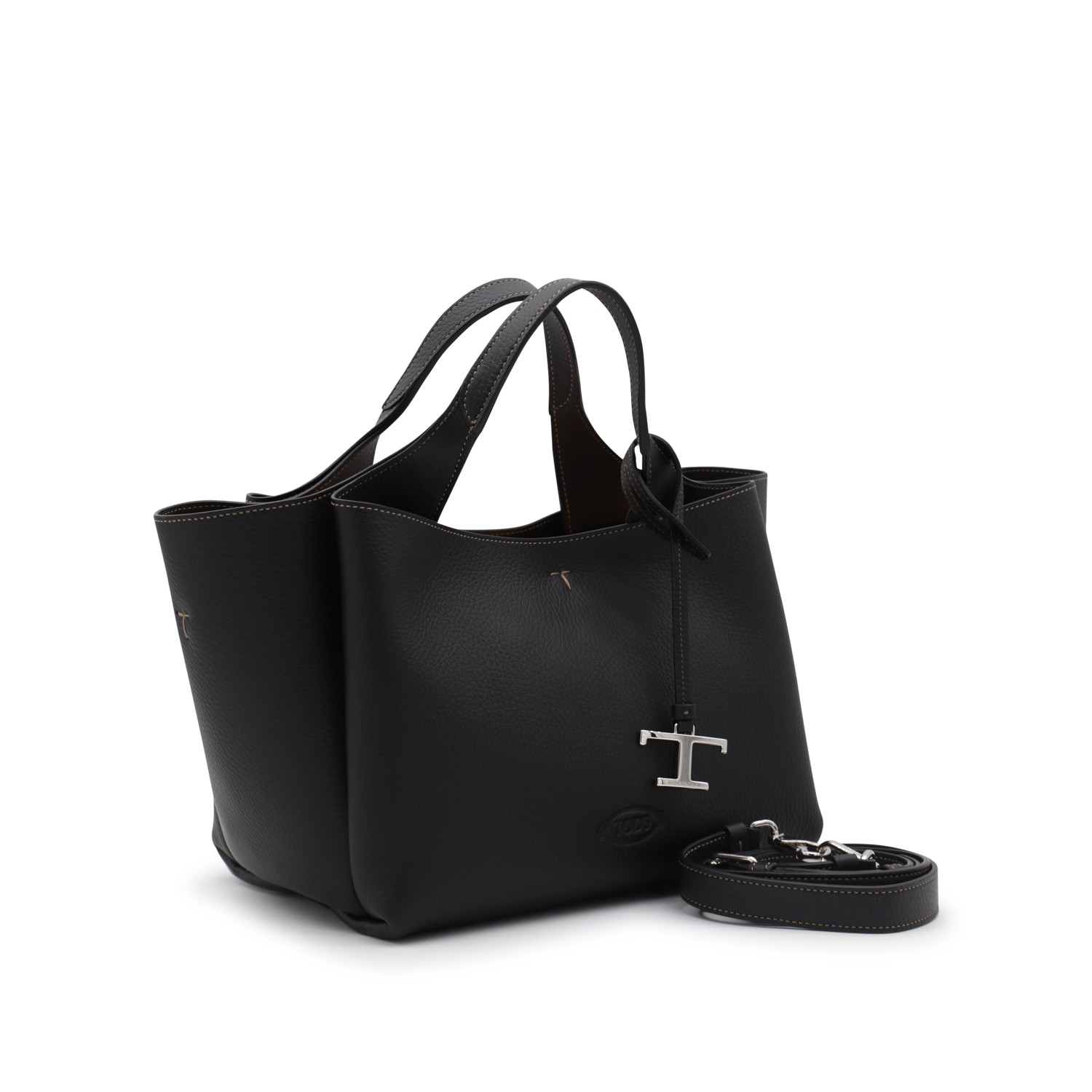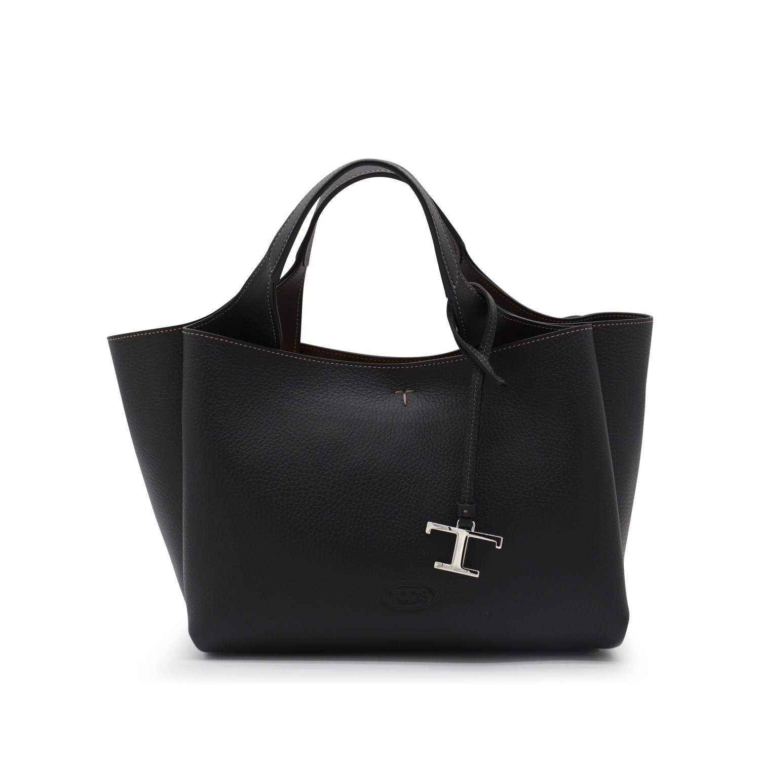 Black leather totes from Tod's featuring top handles, frontal logo, silver tone details, shoulder strap and inside pocket.