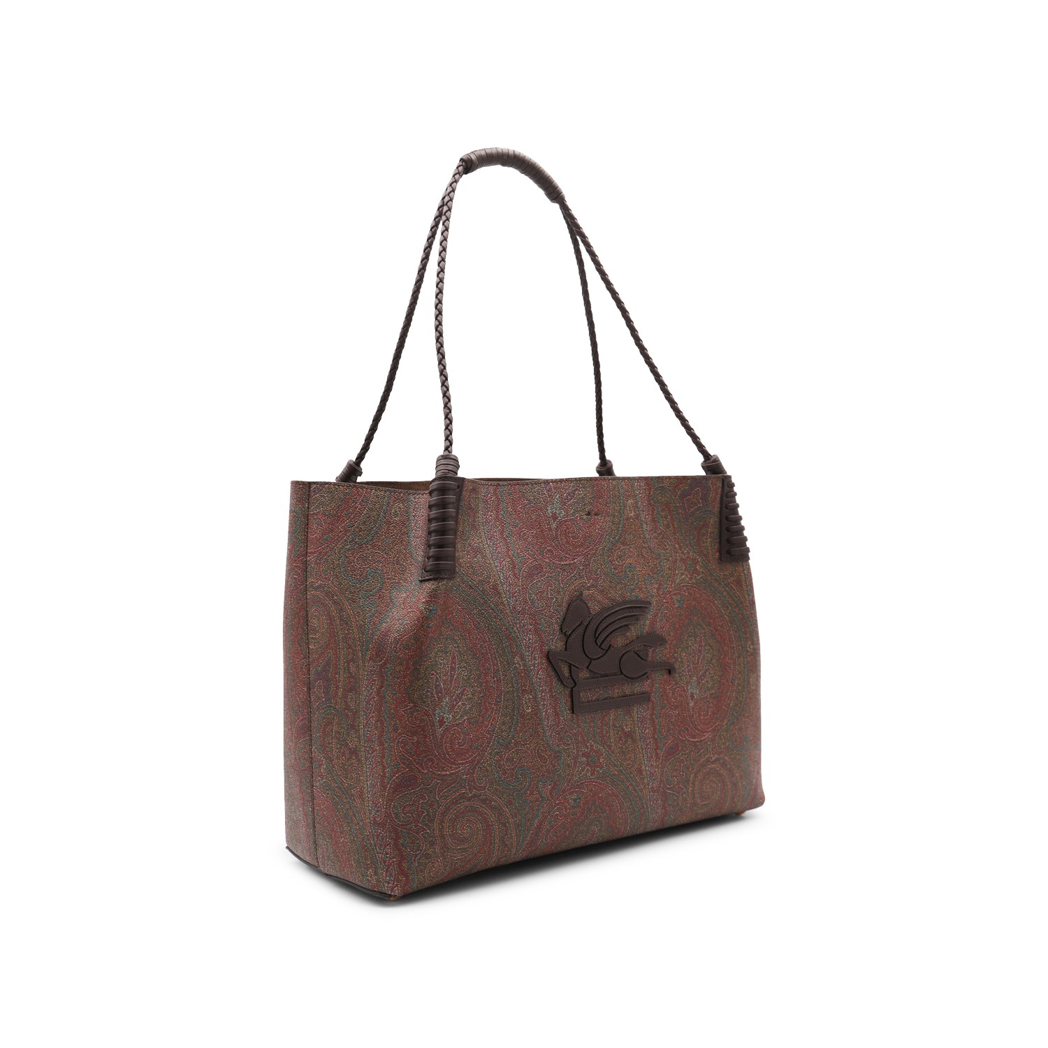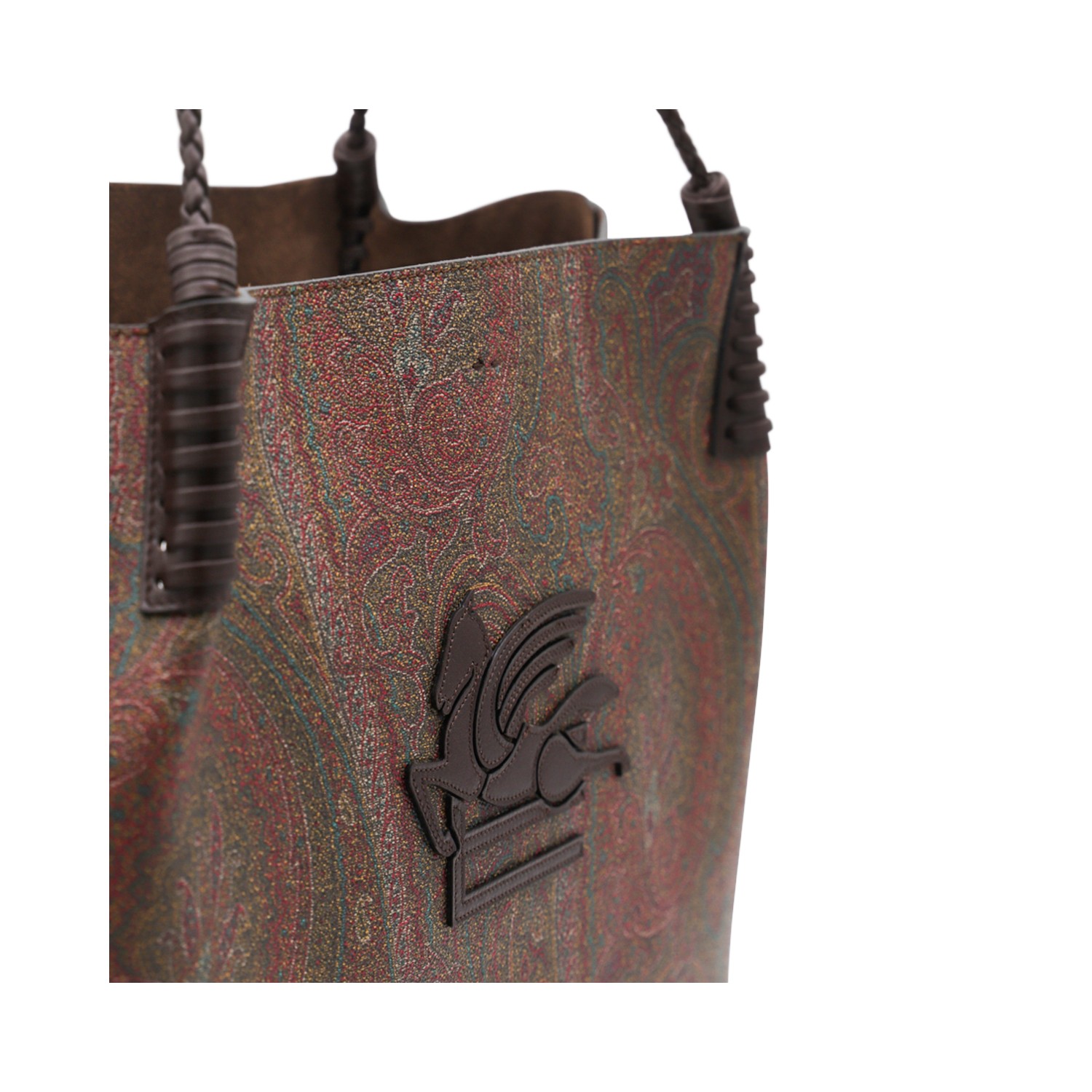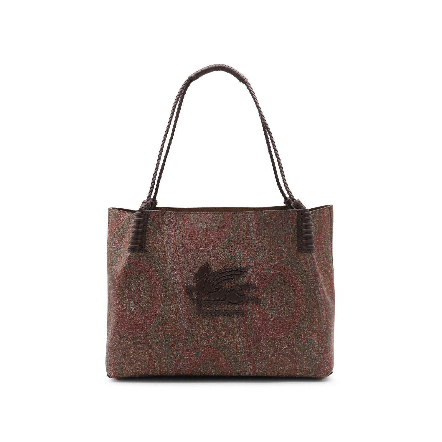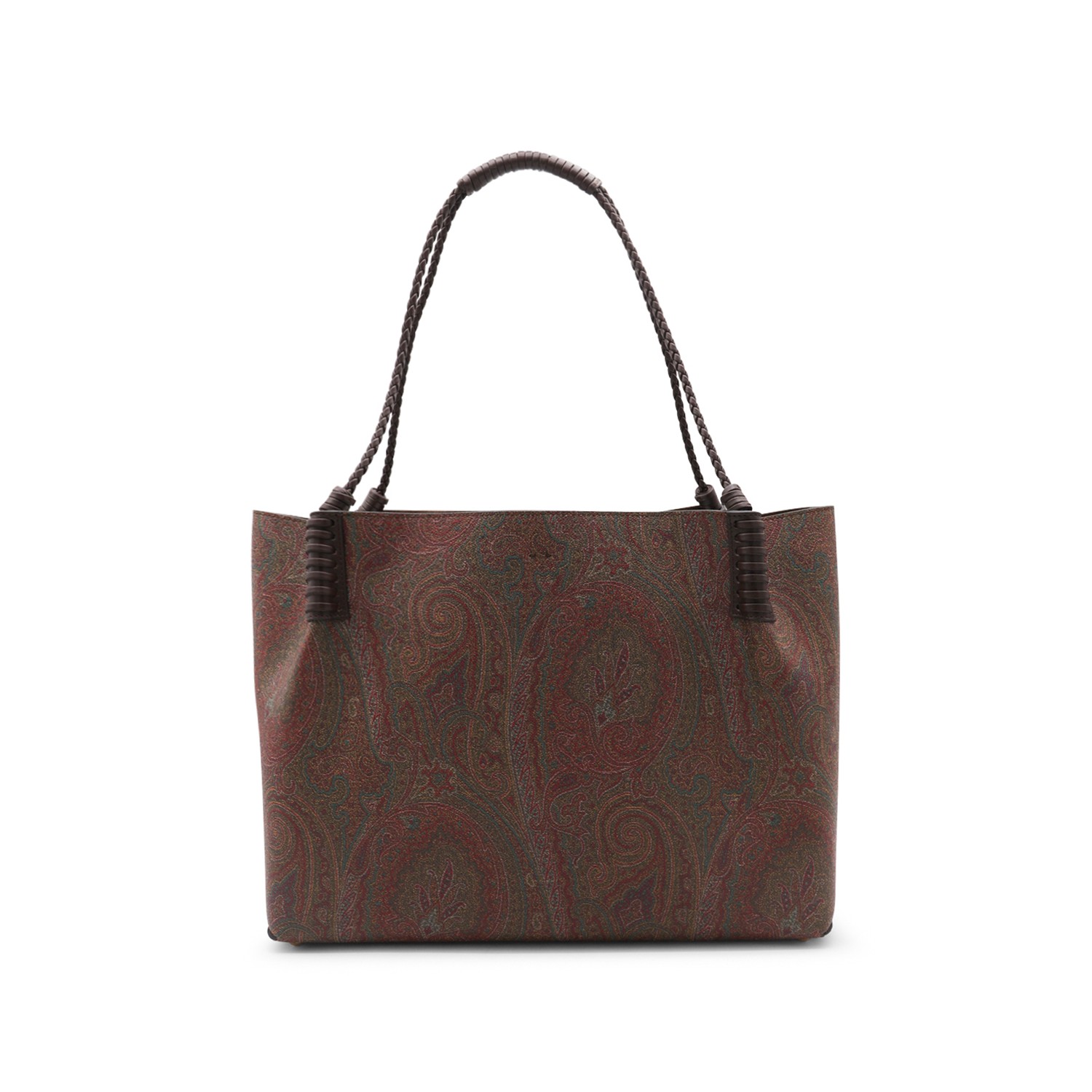 Brown shoulder bag from Etro featuring top handles, main compartment, frontal logo and all over pattern.