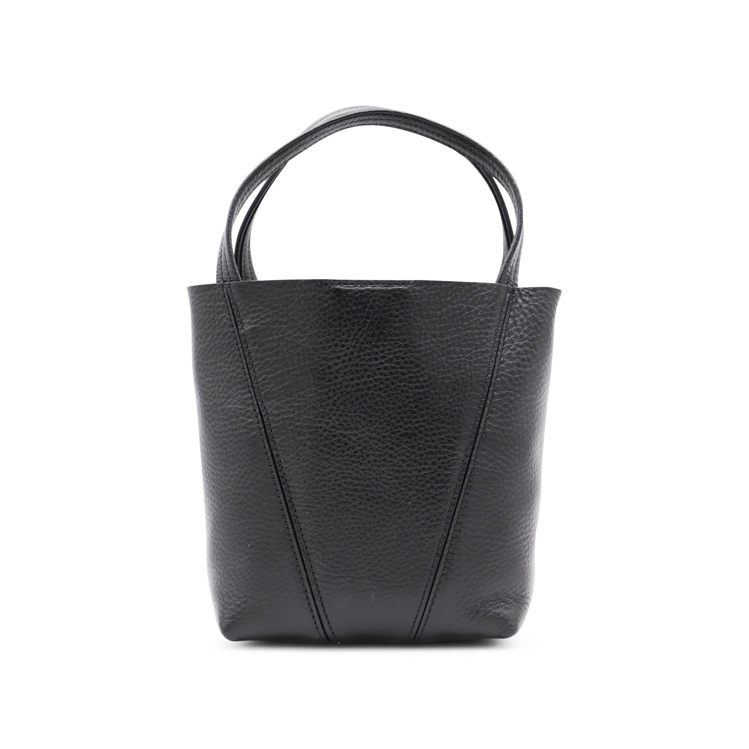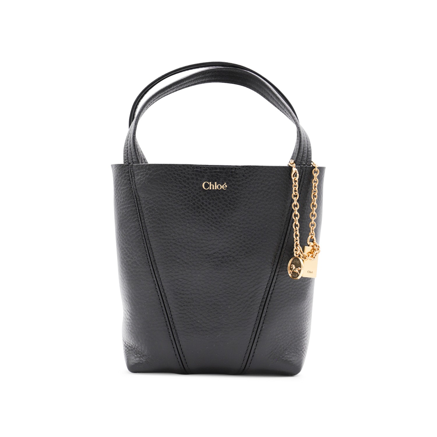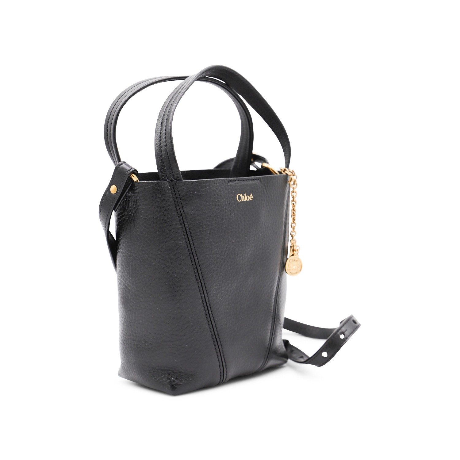 Black leather Spin tote from ChloFeaturing top handles, frontal logo, gold tone detail, adjustable strap, magnetic fastening and pocket.