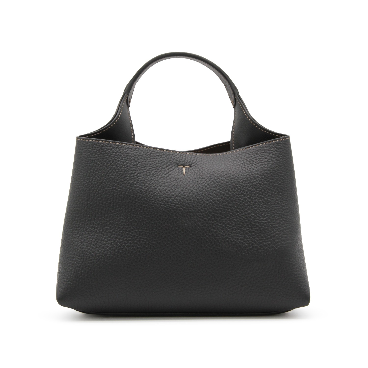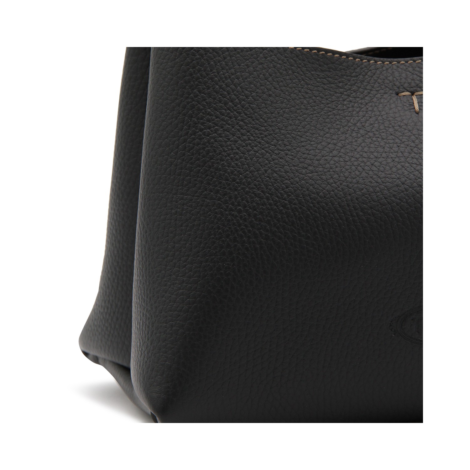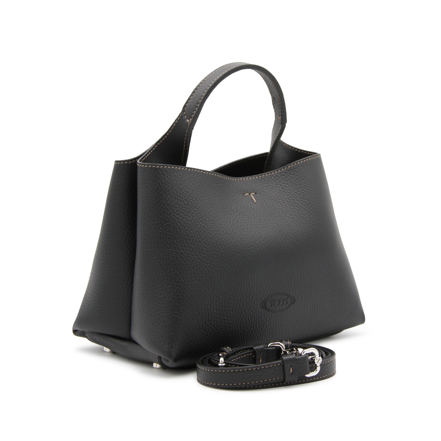 Black leather tote bag from Tod's featuring top handle, frontal logo, inside pockets, regulable shoulder strap and details.