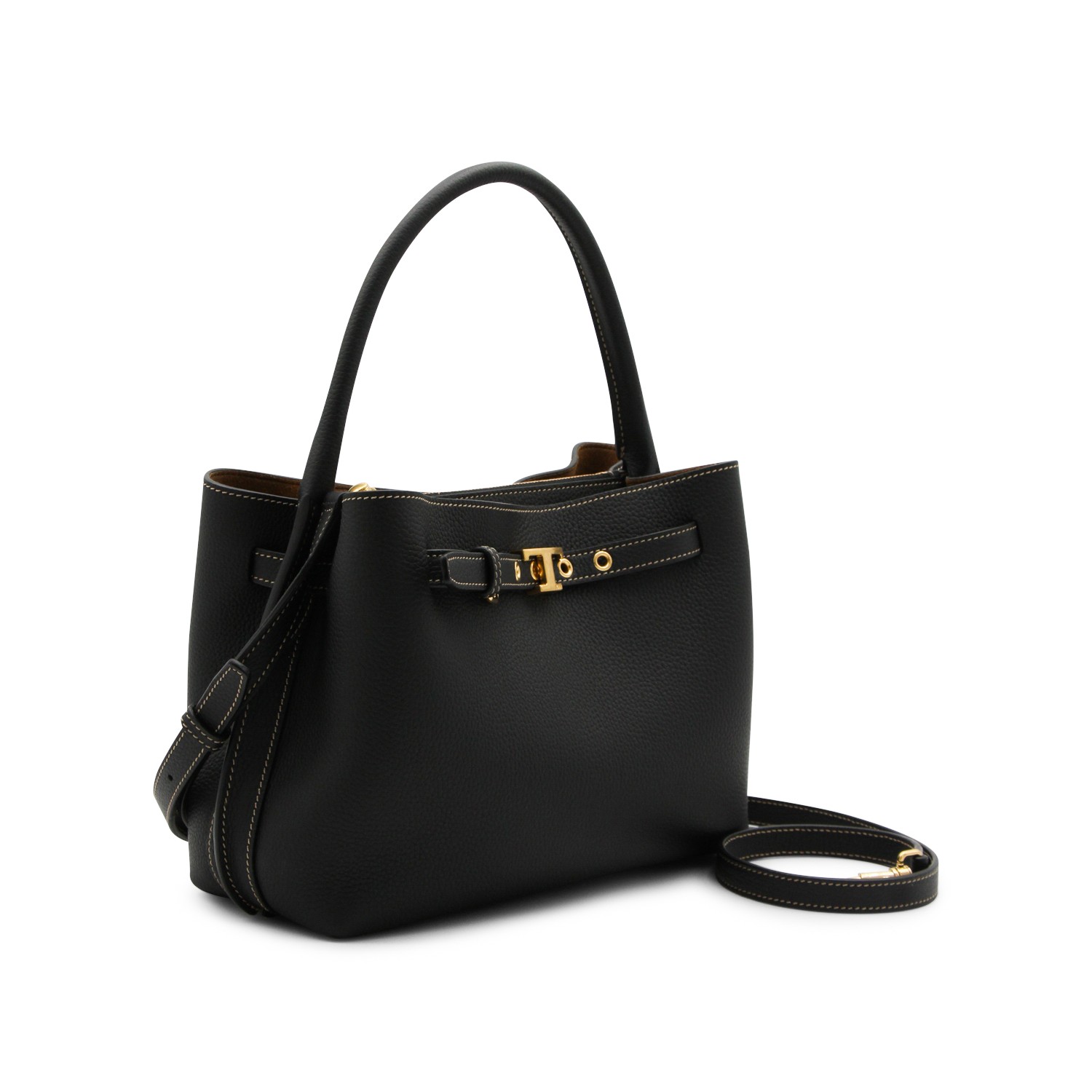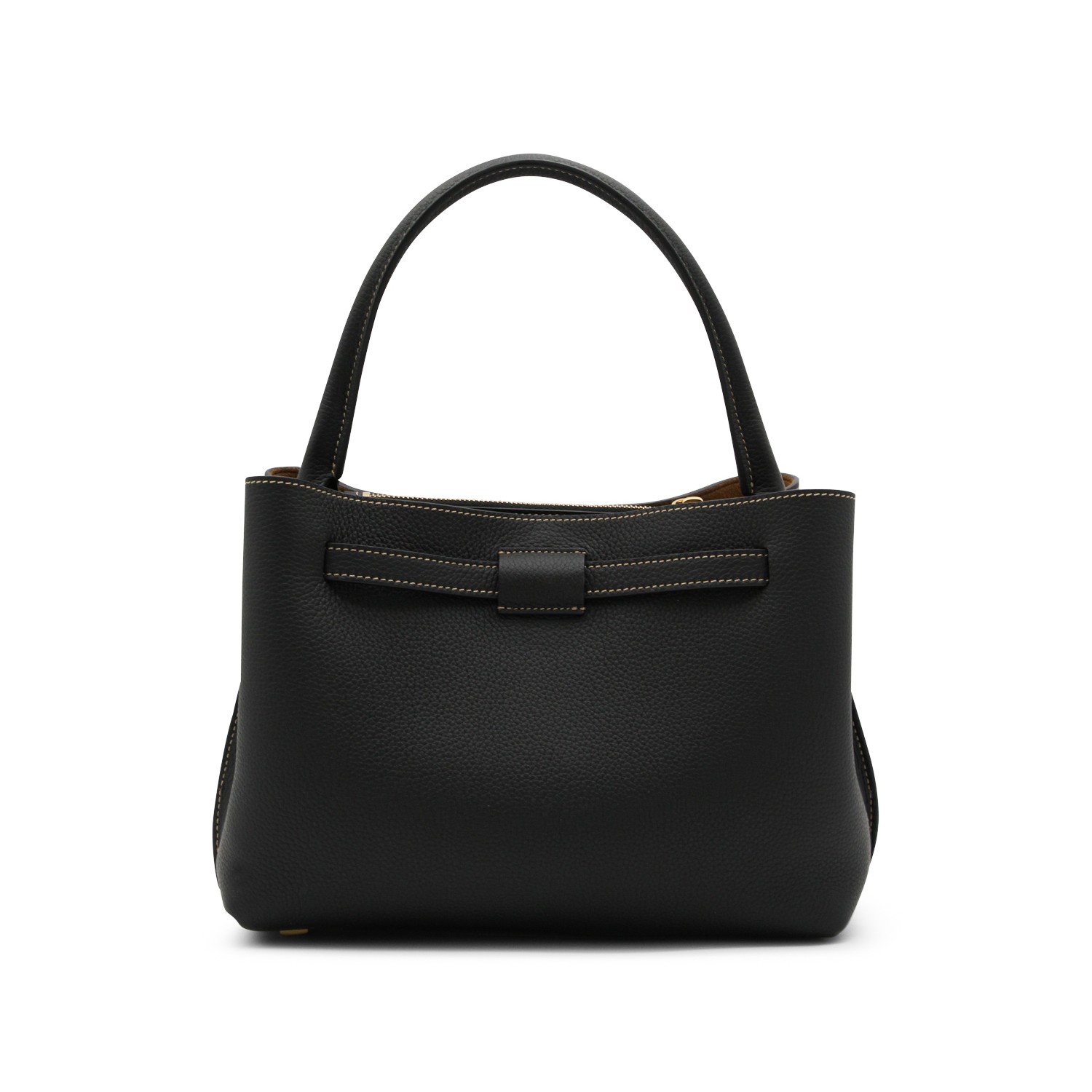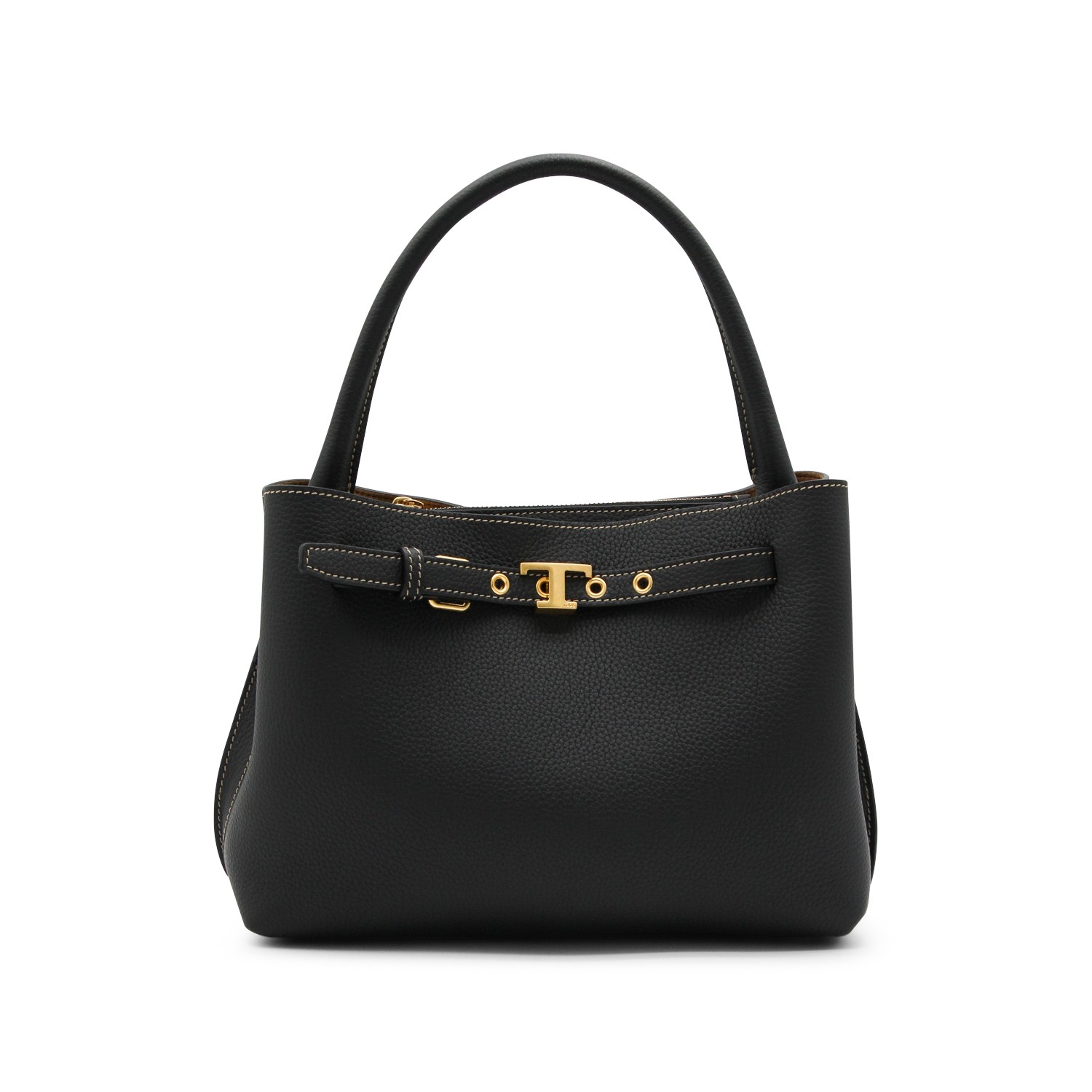 Black leather tote from Tod's featuring top handle, main compartment, zip fastening, removable strap, frontal logo and gold tone hardware.