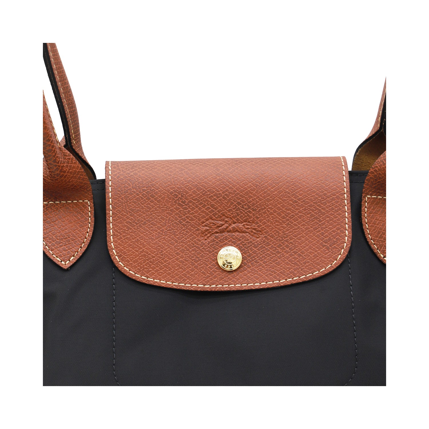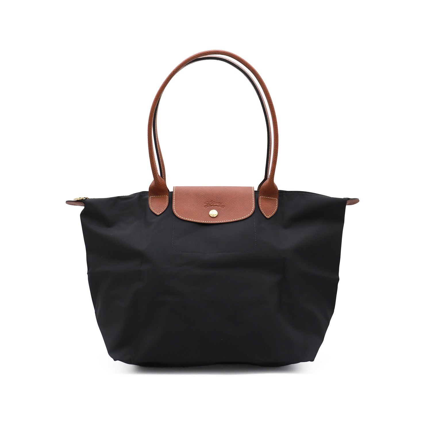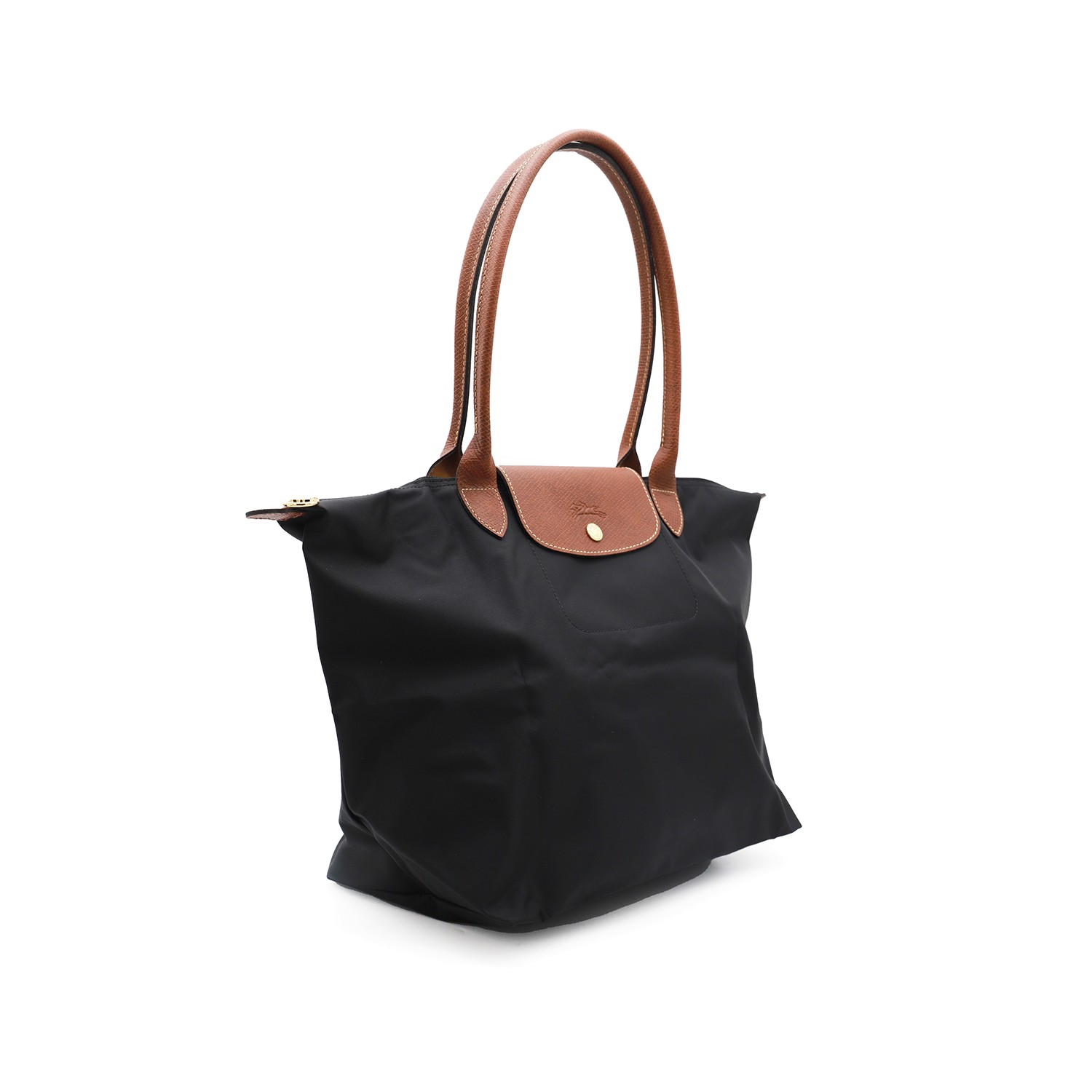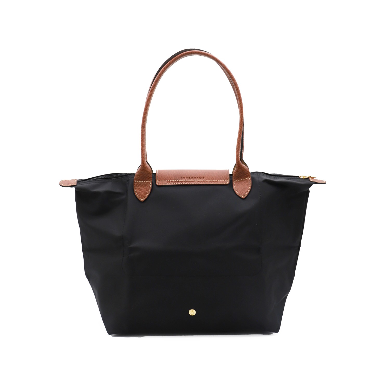 Cognac Le Pliage Original - Sac Cabas L tote from Longchamp featuring round top handles, zip and push lock fastening, embossed logo, foldable design and leather details.