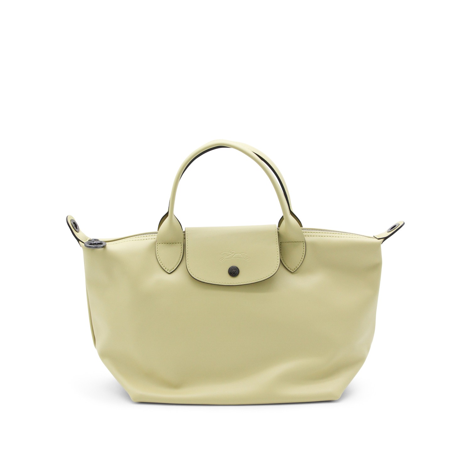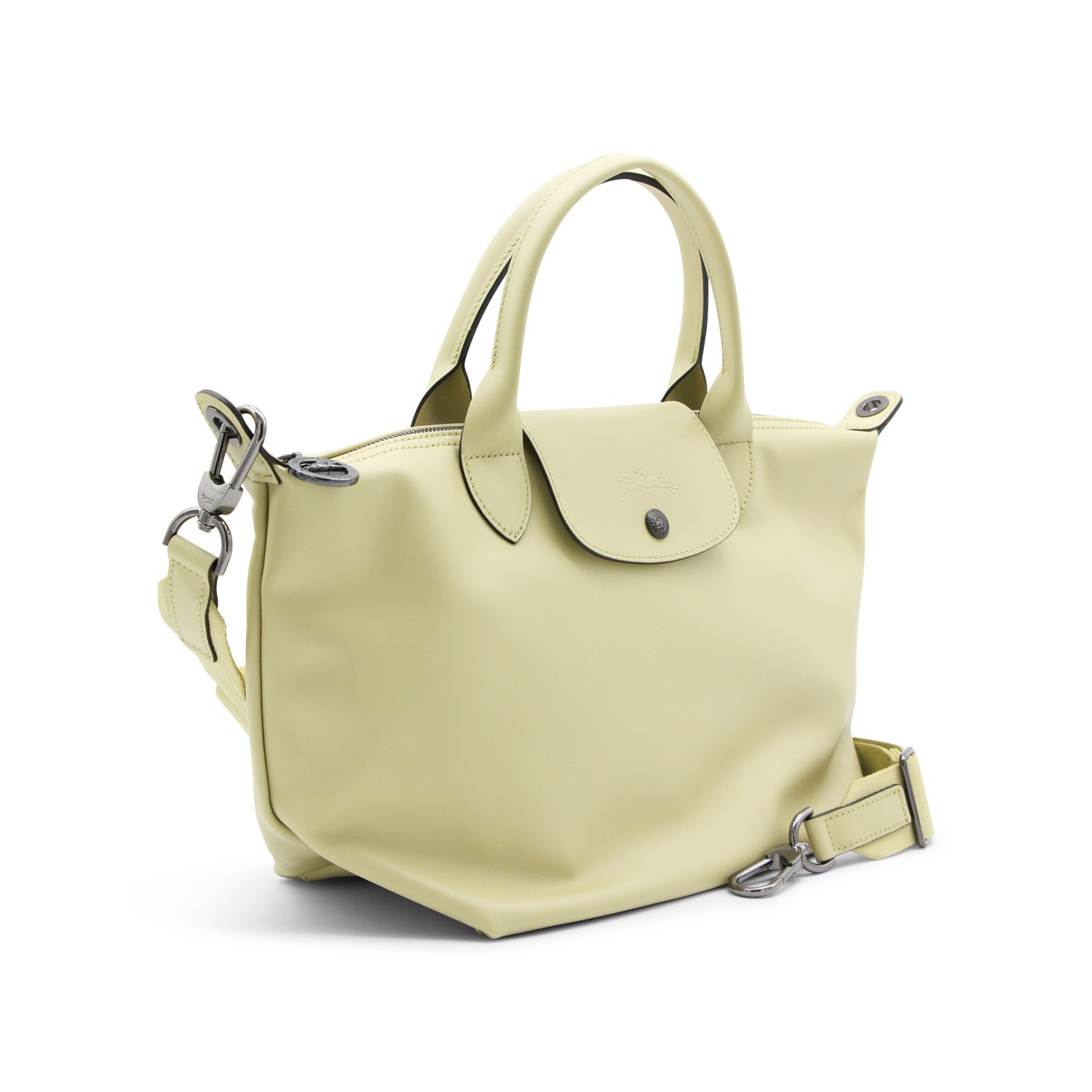 Pistachio Le Pliage Energy - Sac Man S tote from Longchamp featuring top handles, foldover top with snap closure, zip fastening, foldable design, leather details, internal zipped pocket and black hardware.