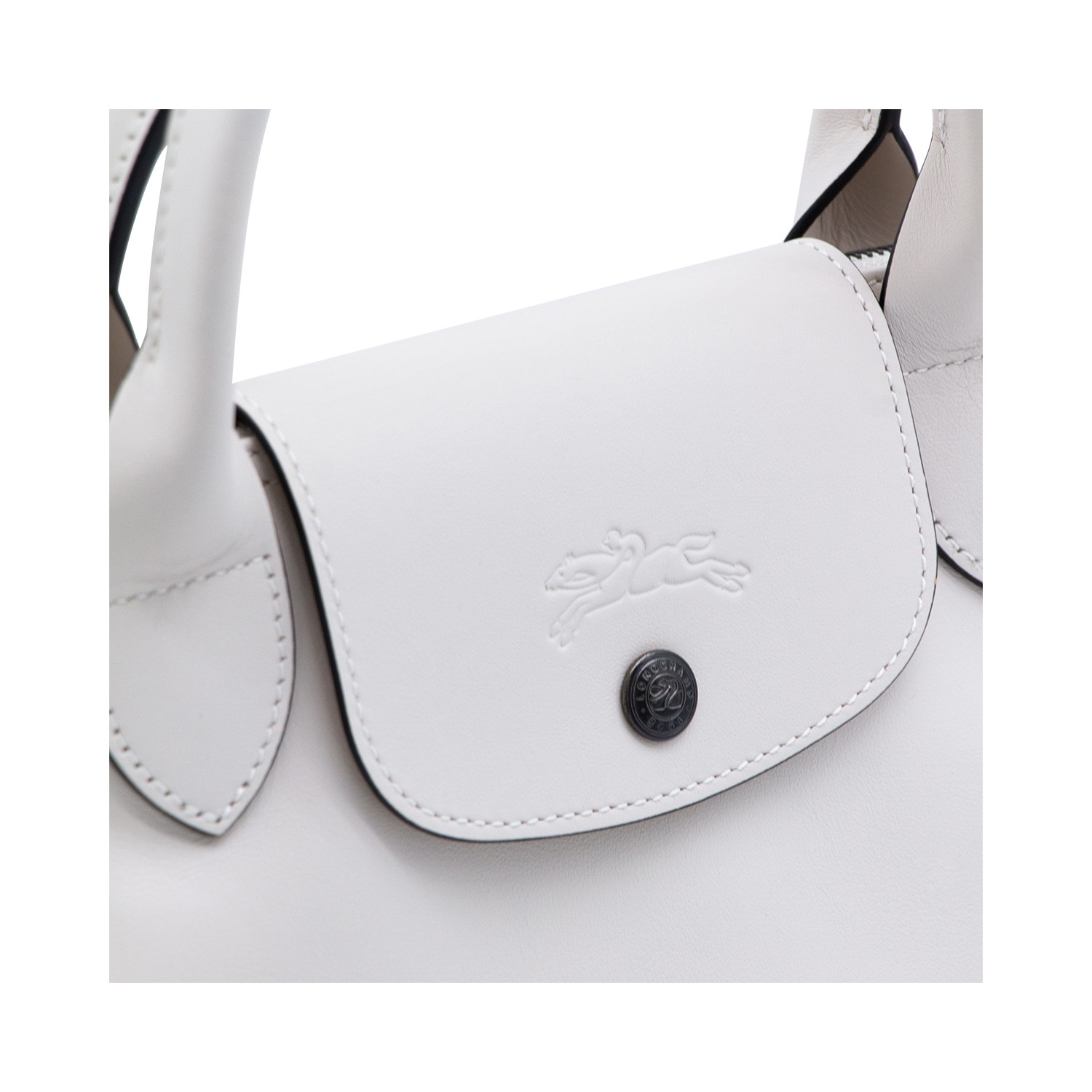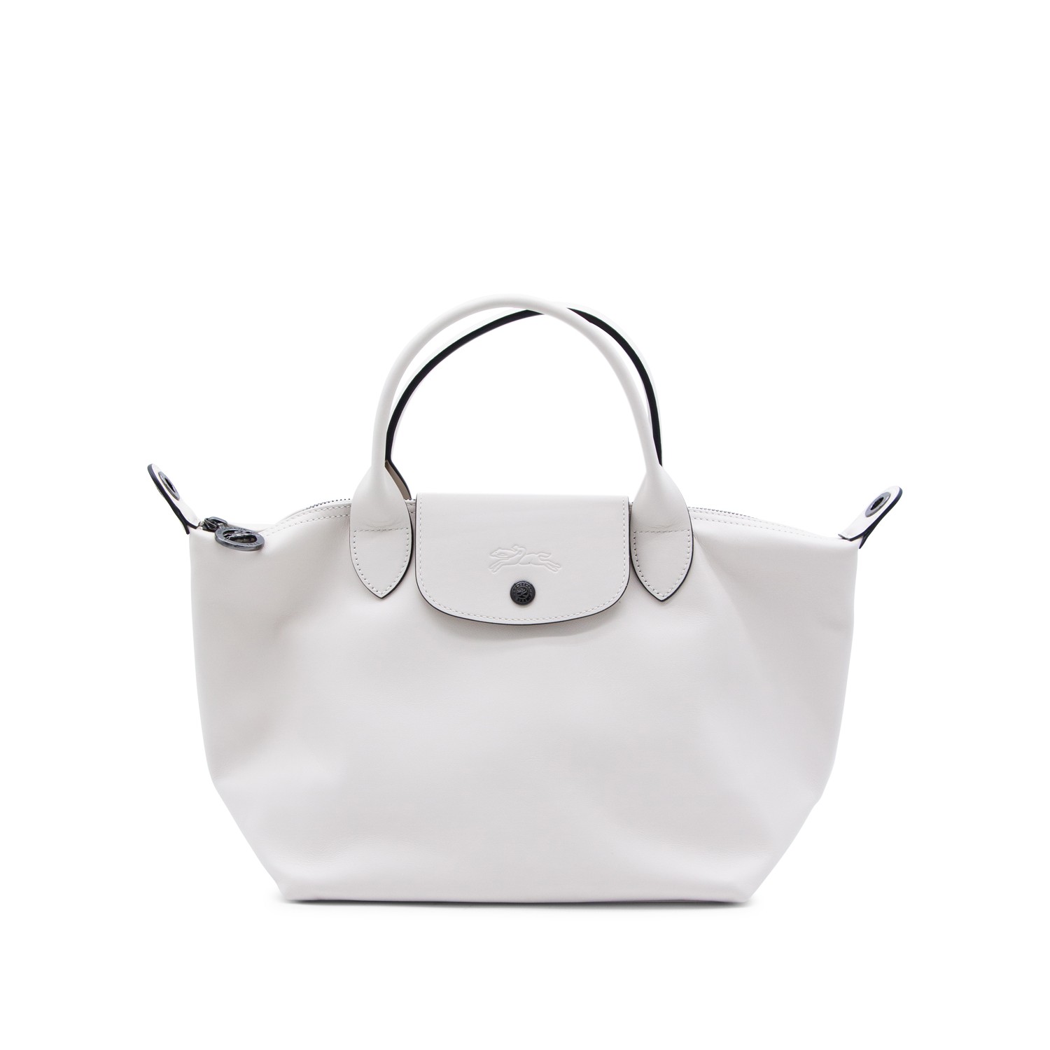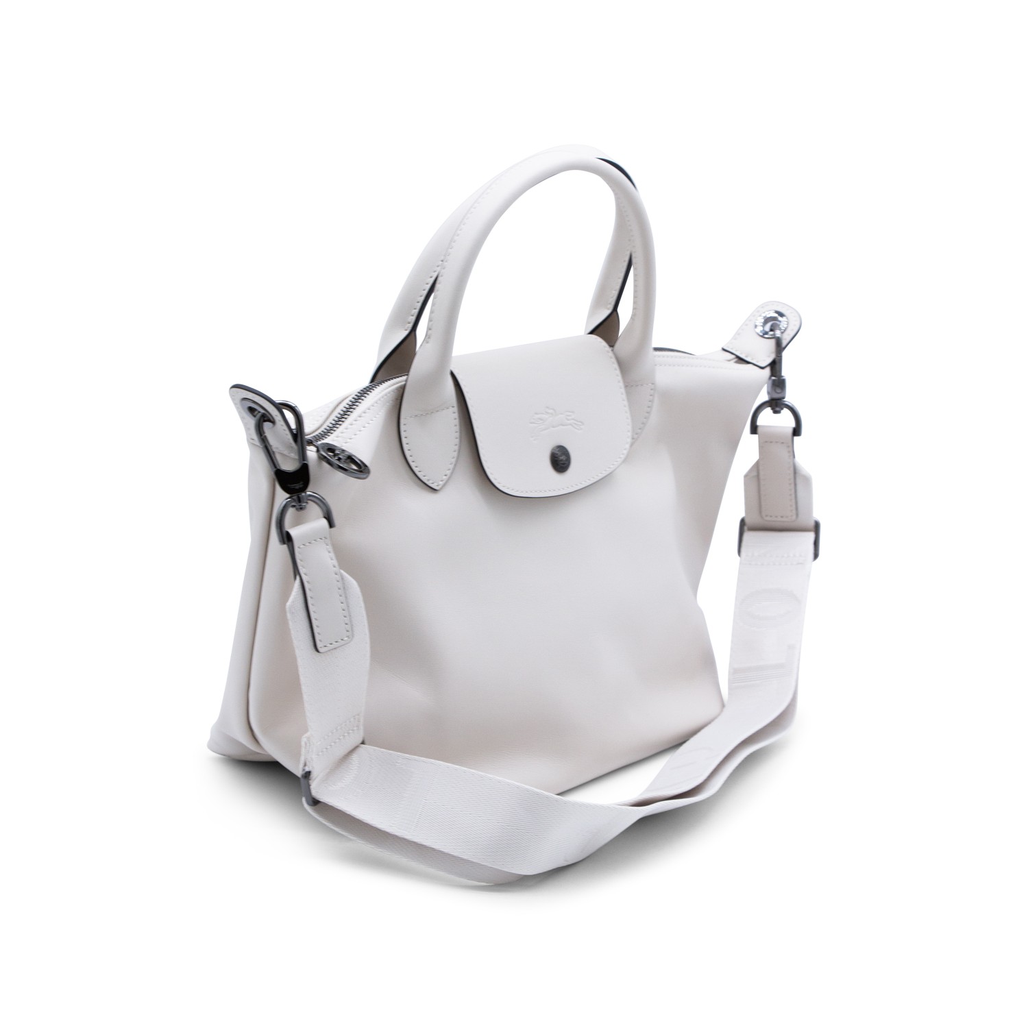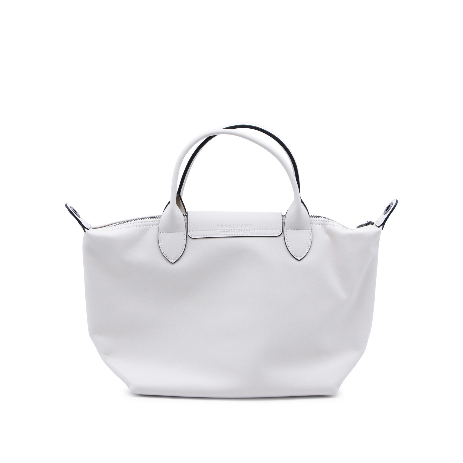 White Le Pliage Energy - Sac Main S tote from Longchamp featuring top handles, detachable and adjustable shoulder strap, zip closure, snap button, 2 inside pockets, embossed logo and black tone hardware.