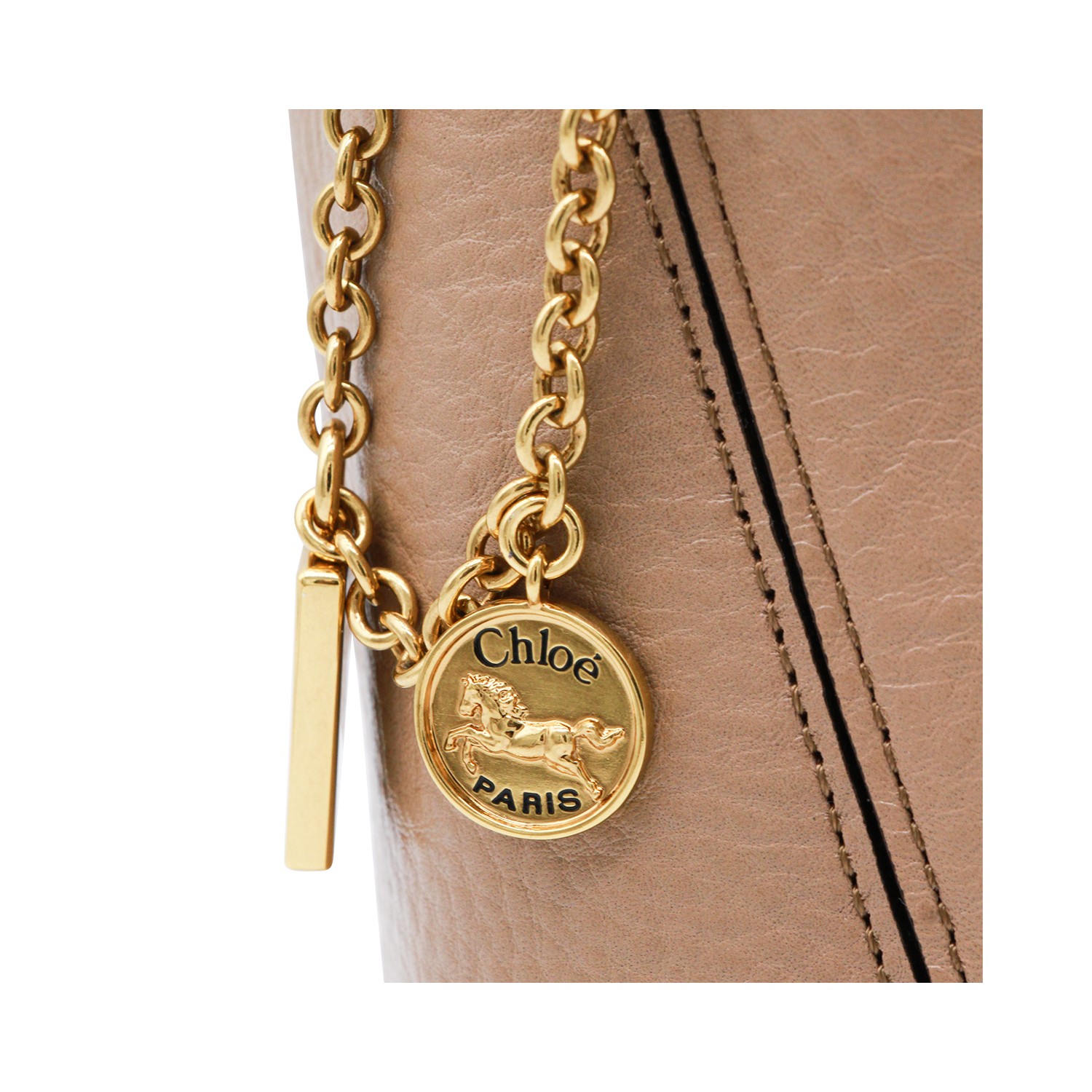 BEIGE LEATHER CHLOE SPIN TOTE