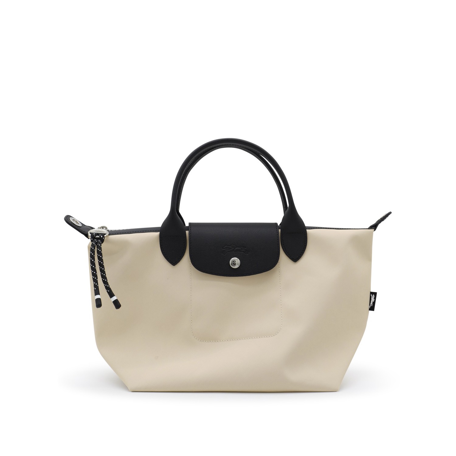 White Le Pliage S totes from Longchamp featuring top handles, zip and button fastening, logo and inside pocket.