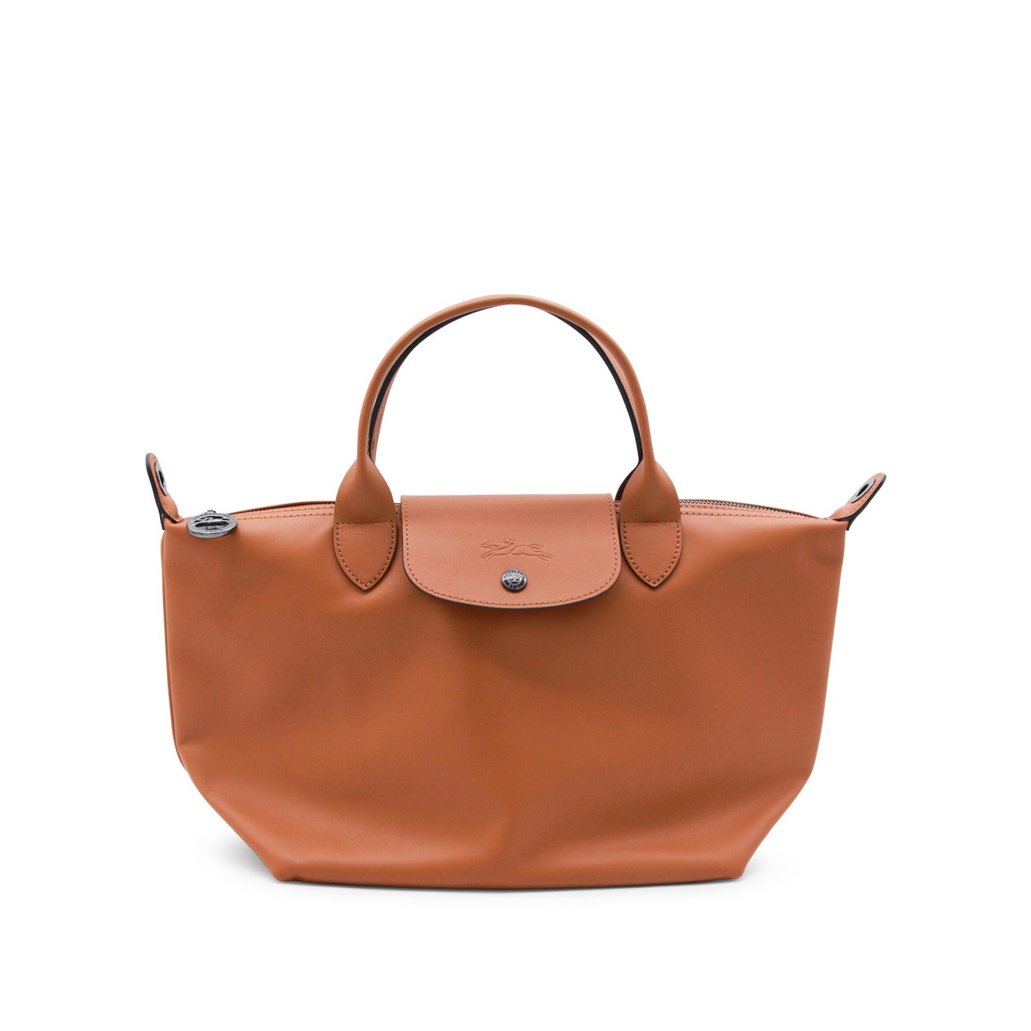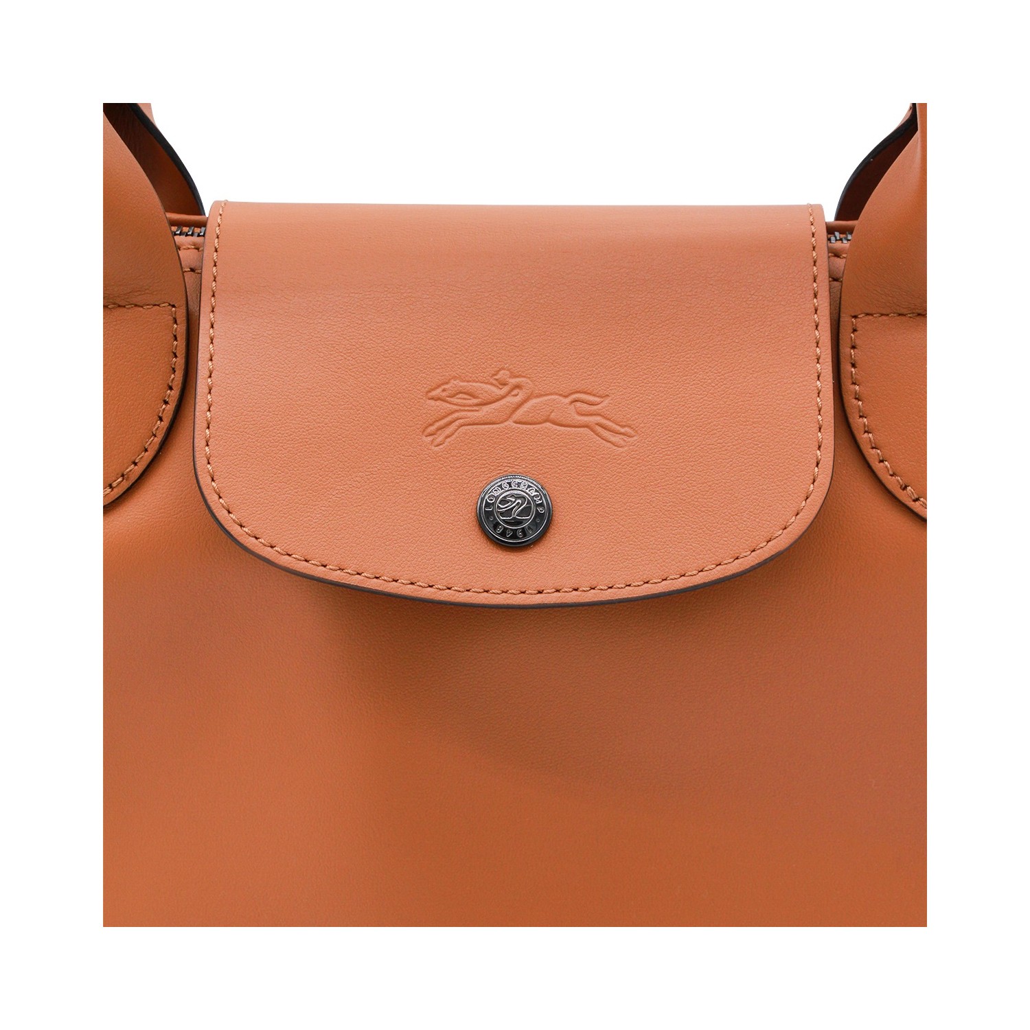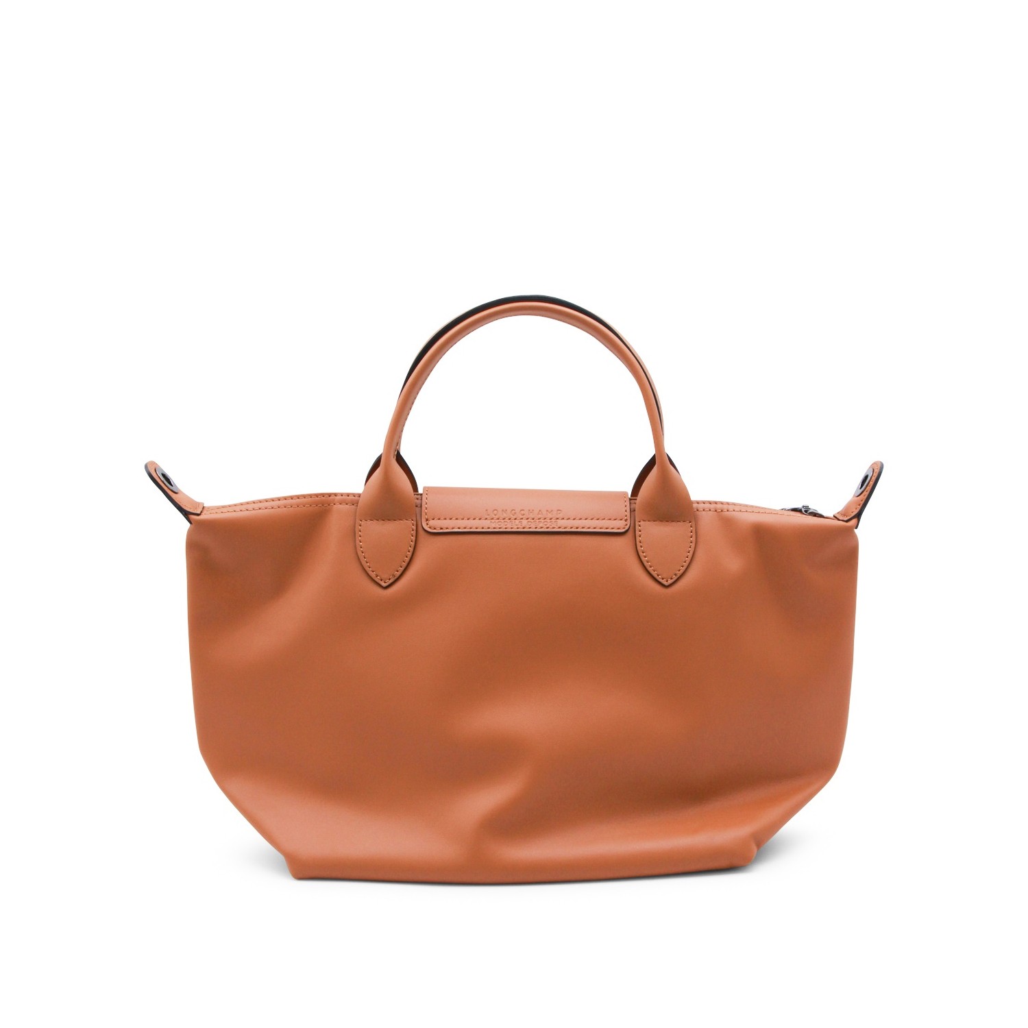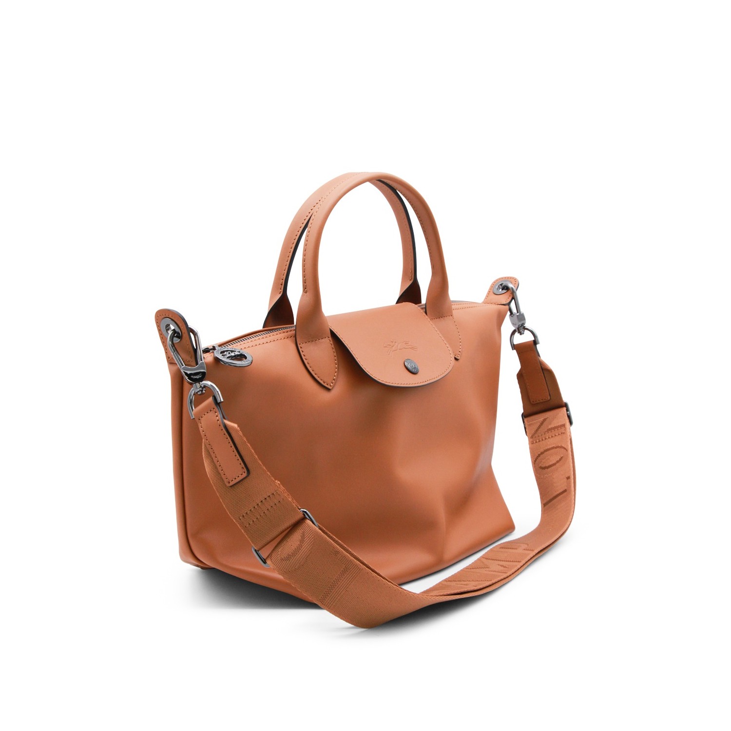 Cognac Le Pliage Energy - Sac Man S tote from Longchamp featuring top handles, foldover top with snap closure, zip fastening, foldable design, brown leather details, internal zipped pocket and black hardware.