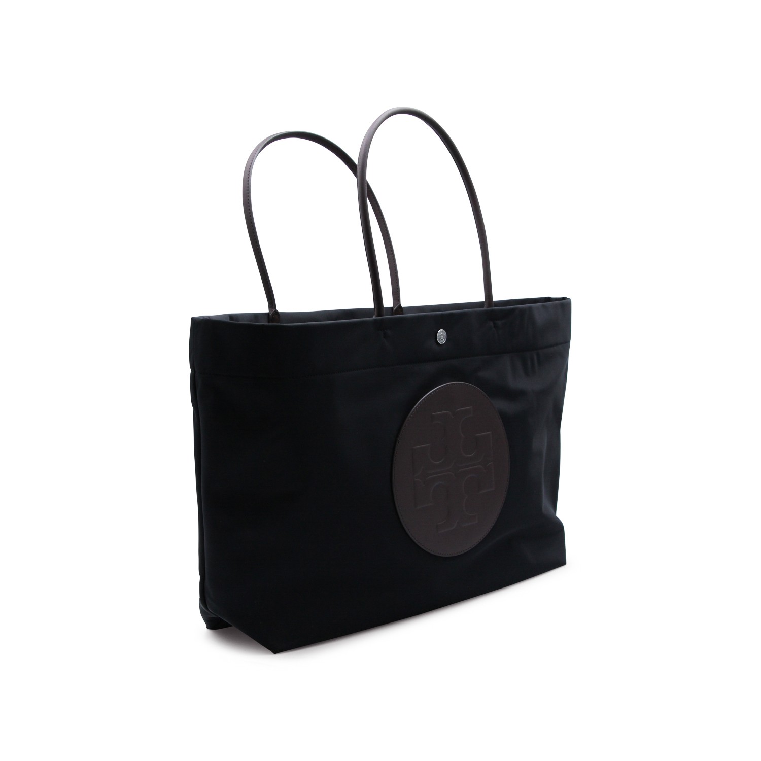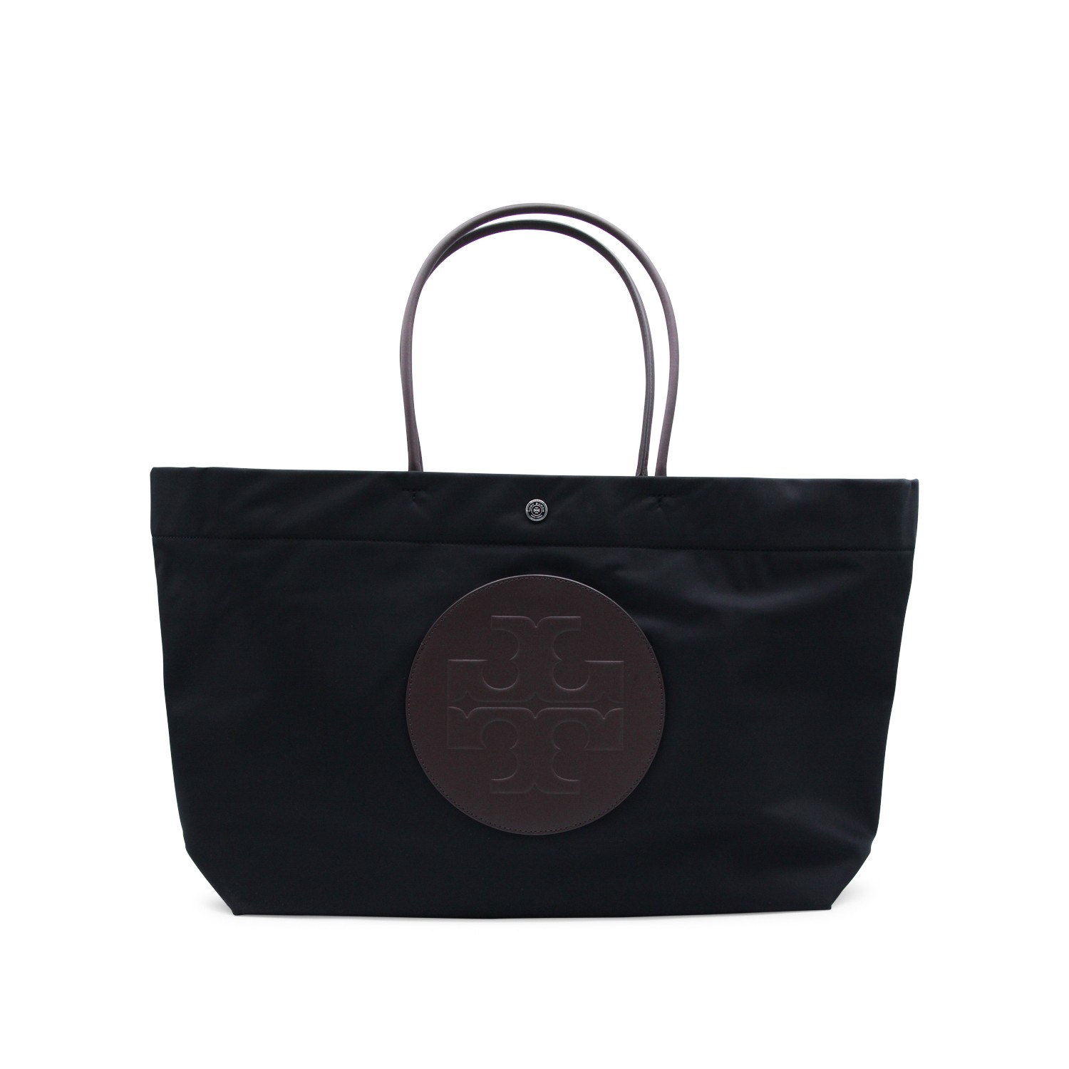 Black totes from Tory Burch featuring top handles, upper fastening, buttons fastening, pockets and frontal logo.