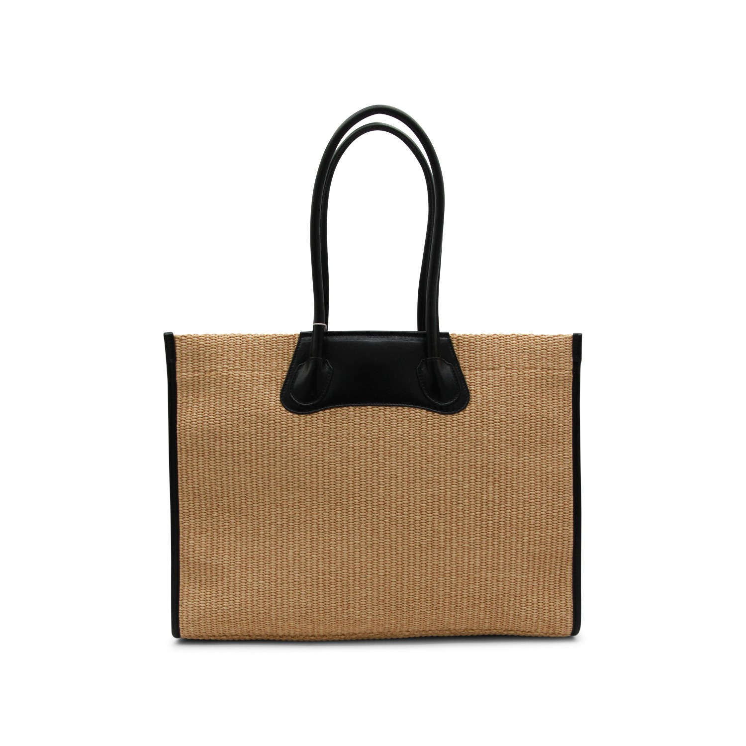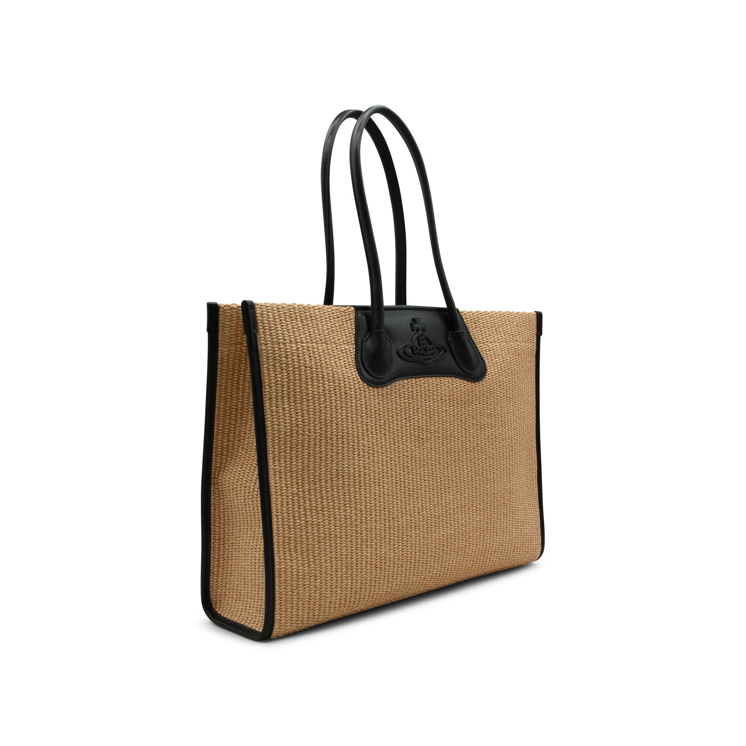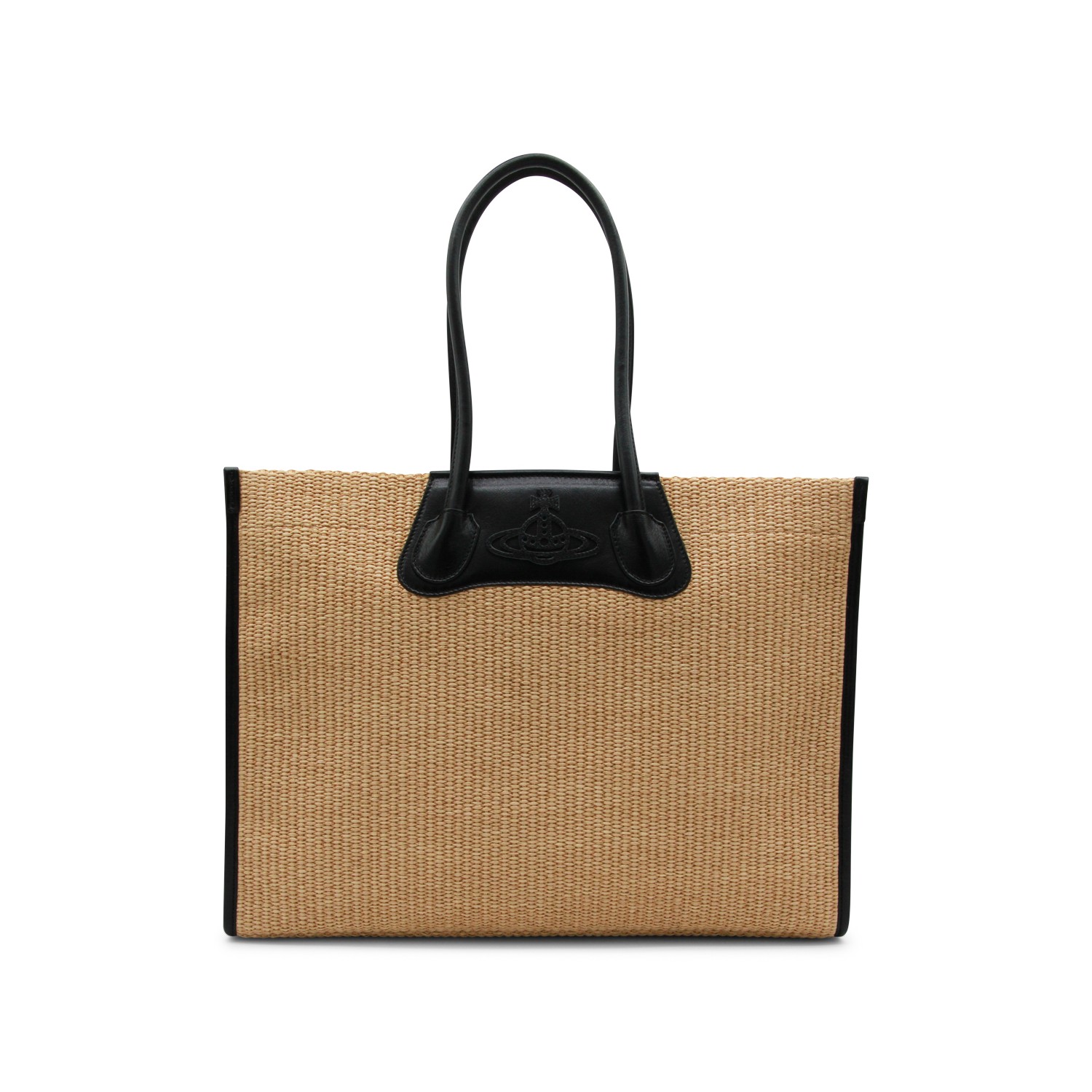 Natural and black cotton tote from Vivienne Westwood featuring handles, zip fastening, main compartment and internal pockets.