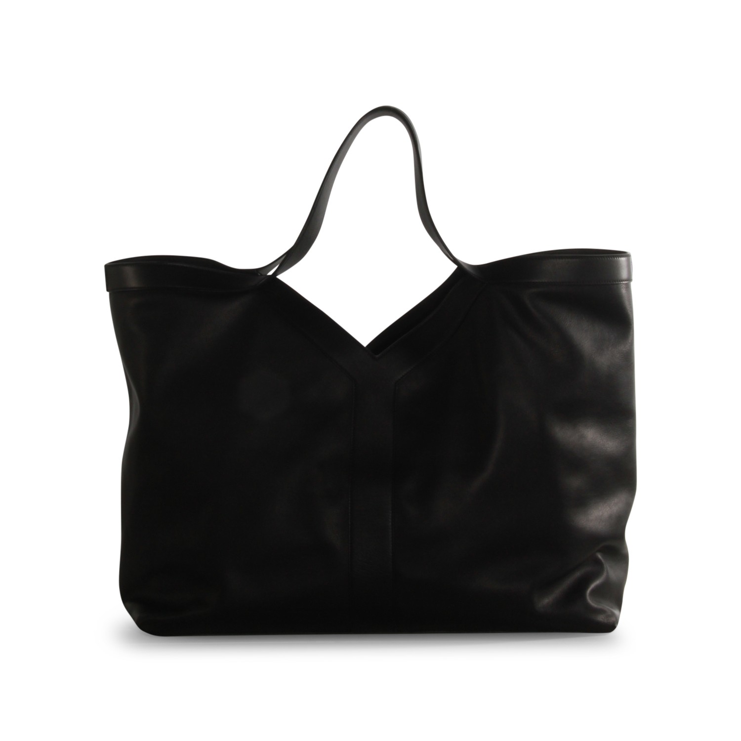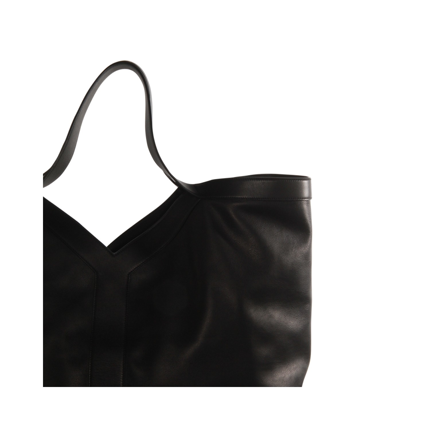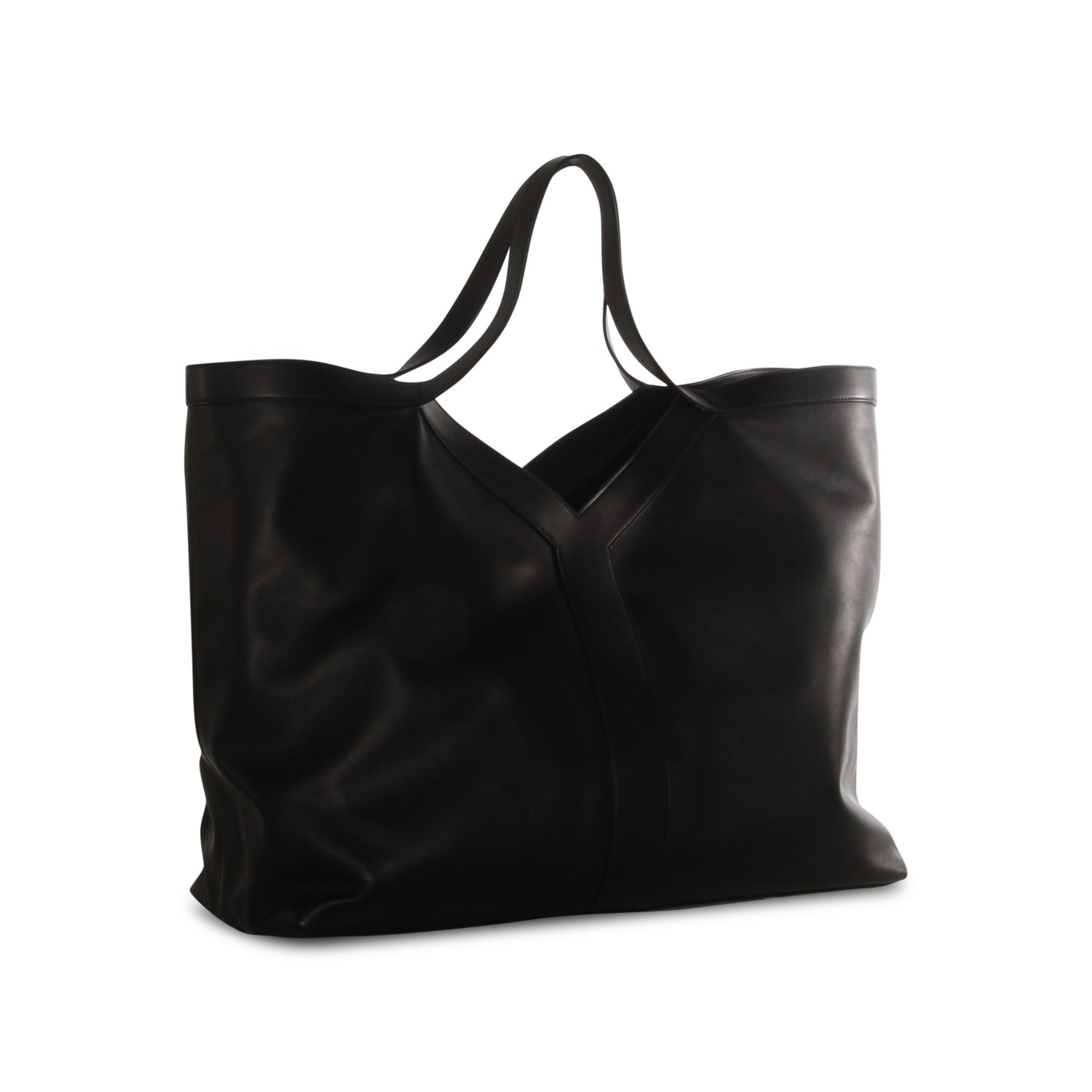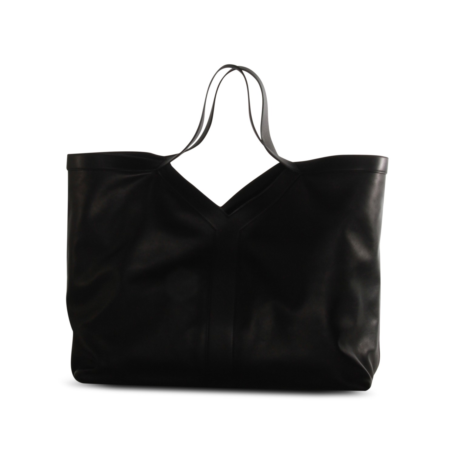 BLACK LEATHER Y MAXI TOP HANDLE BAG