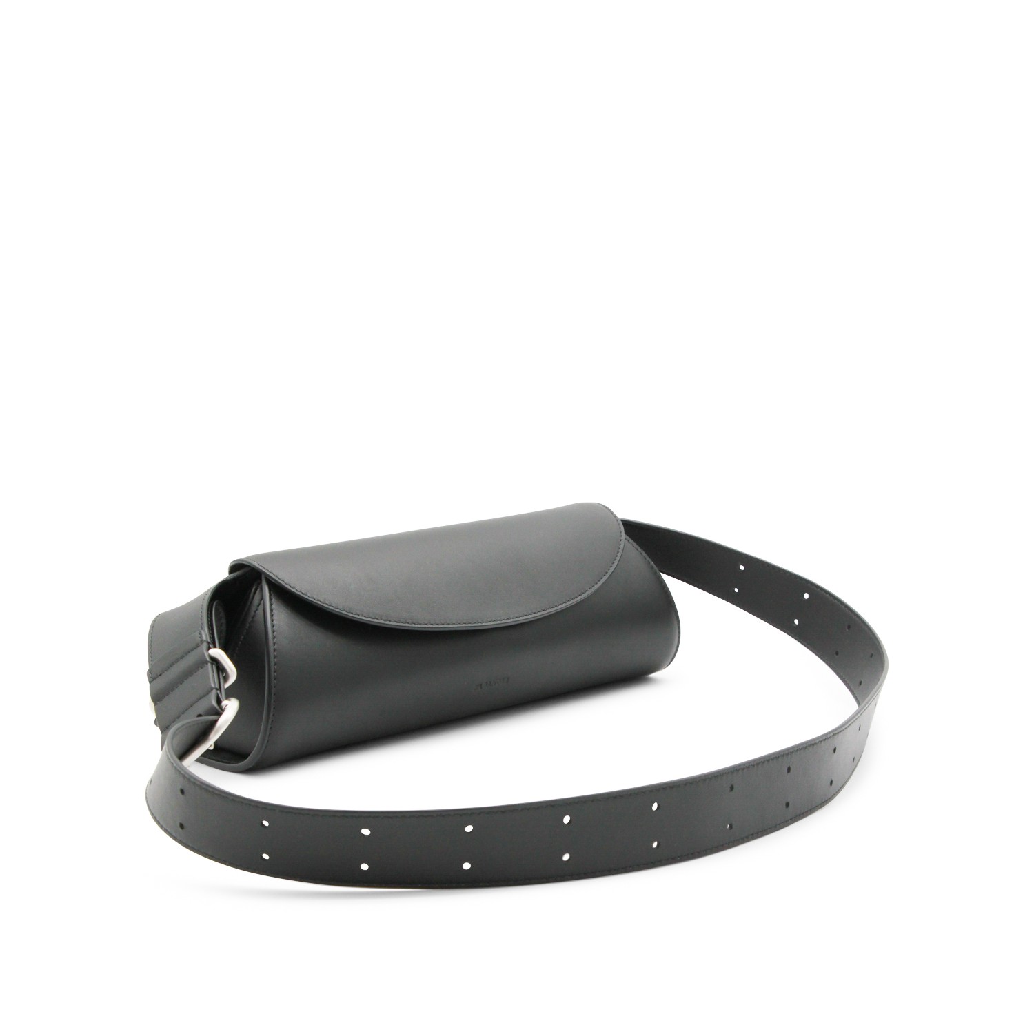 Black Cannolo SM shoulder bag from Jil Sander featuring adjustable strap, frontal fastening and main compartment.