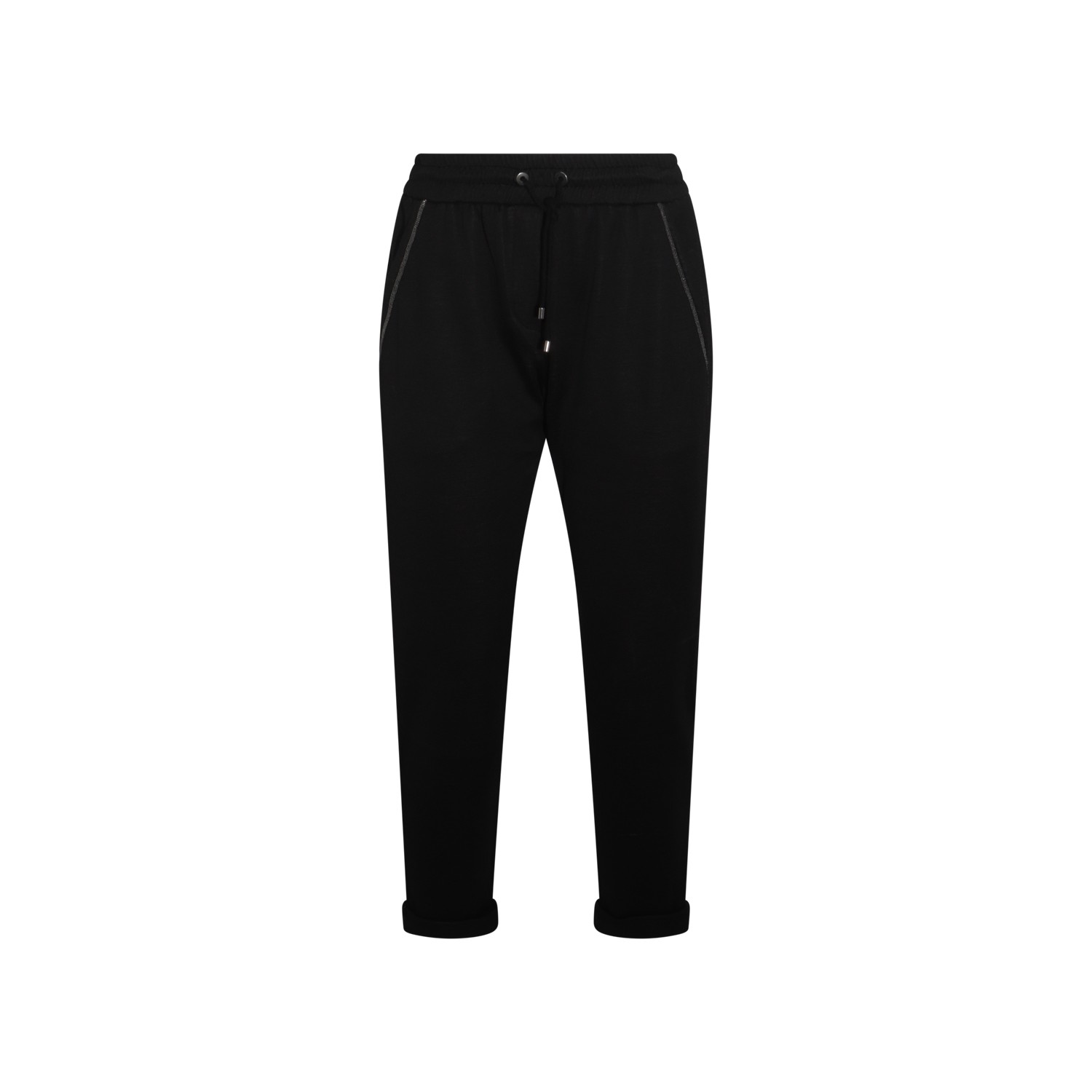 Black cotton pants from Brunello Cucinelli featuring elasticizated waist with drawstrings, pockets and regular vestibility.