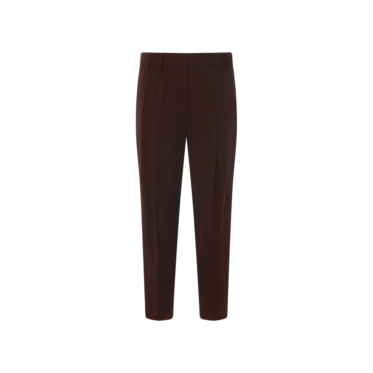 Red wine wool pants from Brunello Cucinelli featuring mid waist, belt loops, zip fastening, back pockets and slim vestibility.