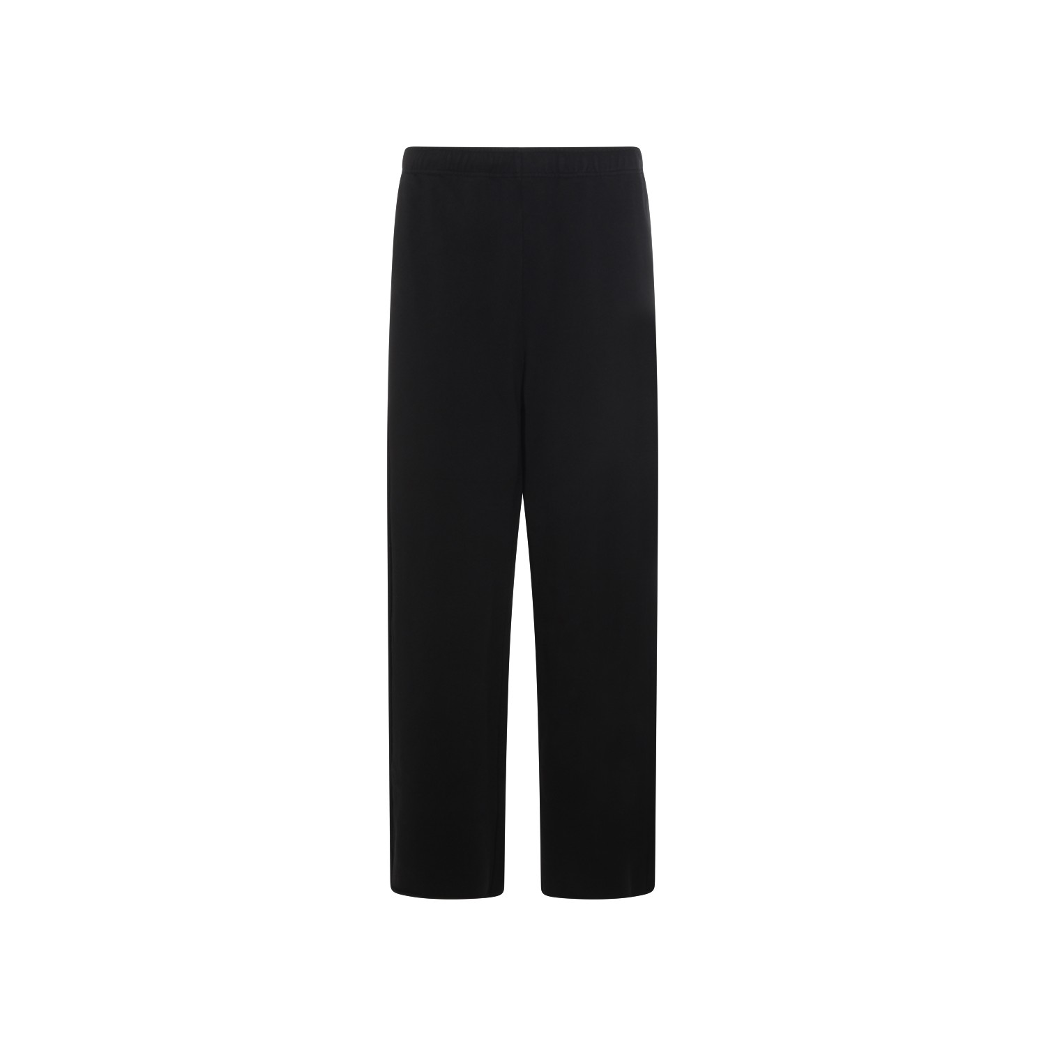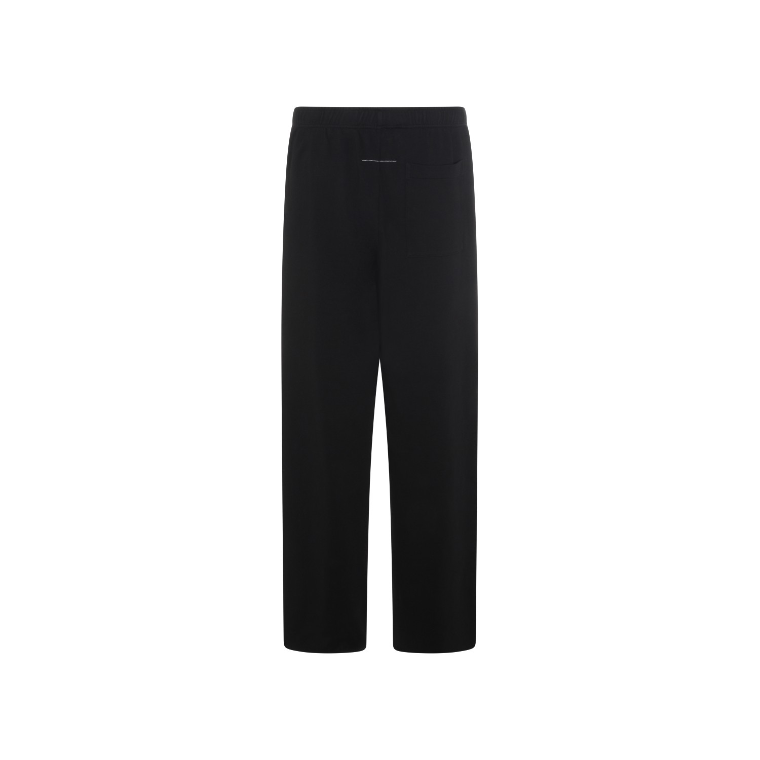 Black cotton pants from MM6 Maison Margiela featuring high elasticated waist, frontal logo, back pocket and loose vestibility.