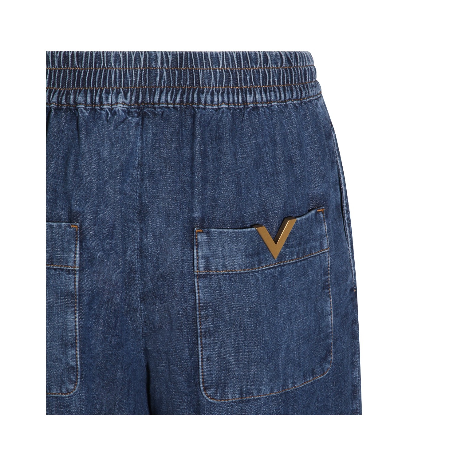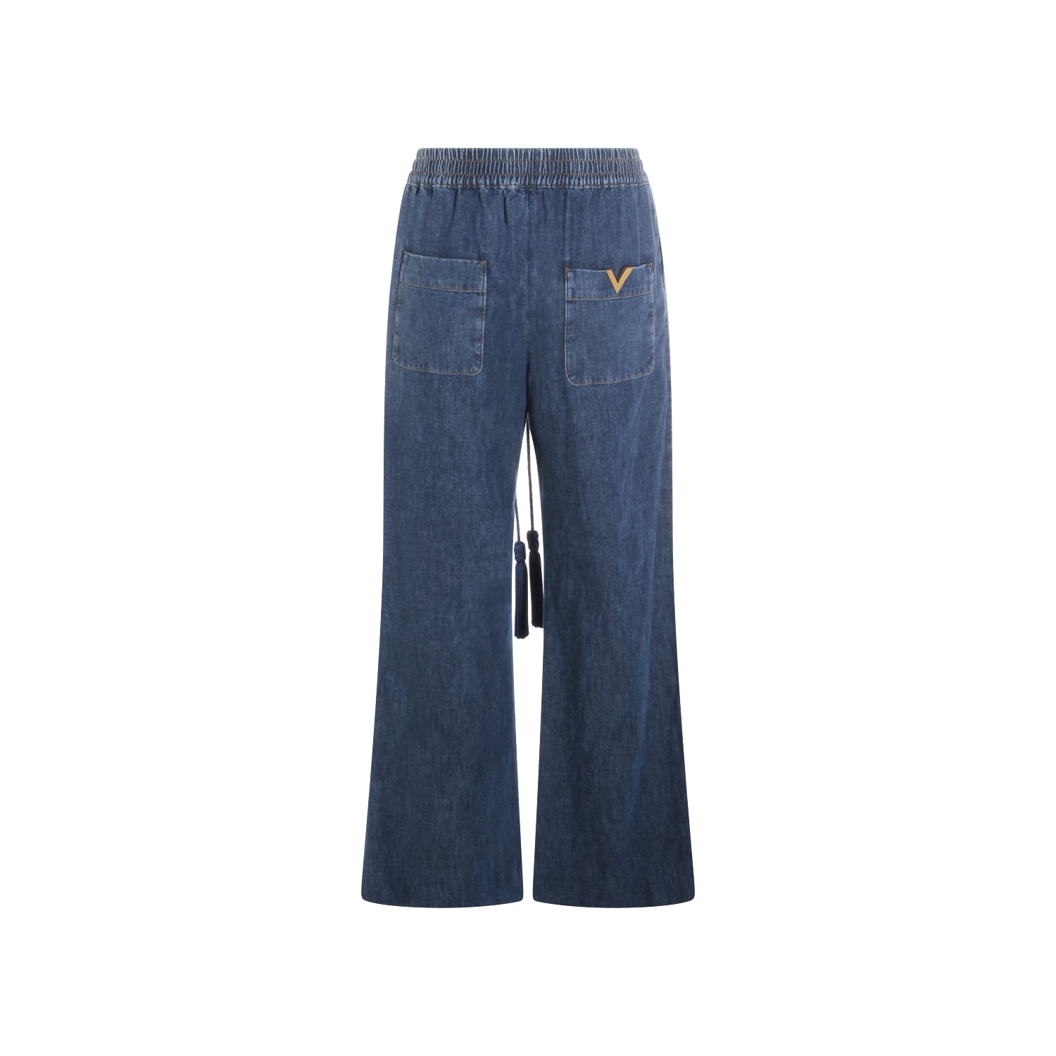 Blue cotton pants from Valentino featuring elasticated waist with drawstring and wide leg.