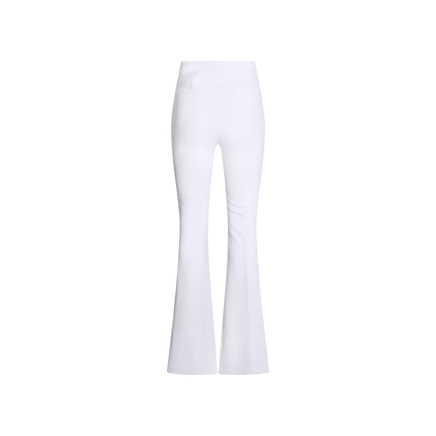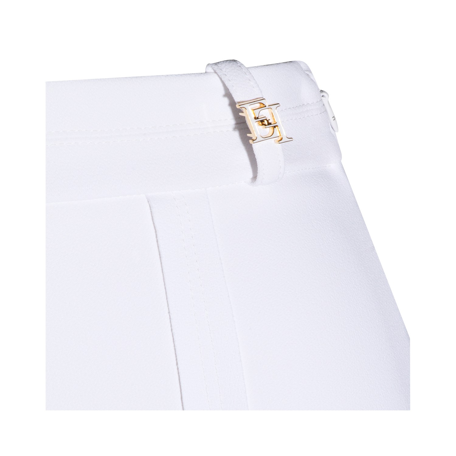 Ivory pants from Elisabetta Franchi featuring high waist, gold tone detail, tight fit and flared.