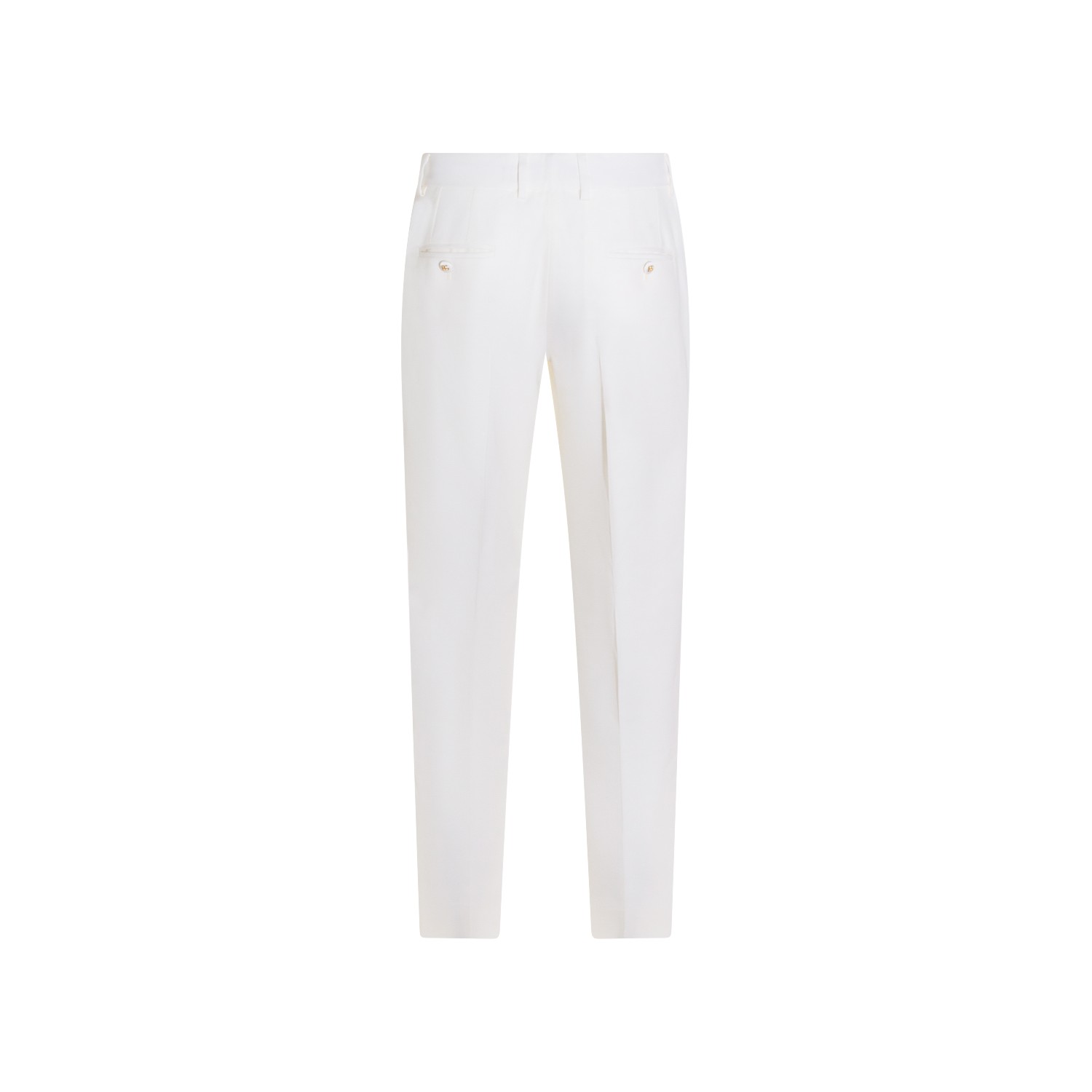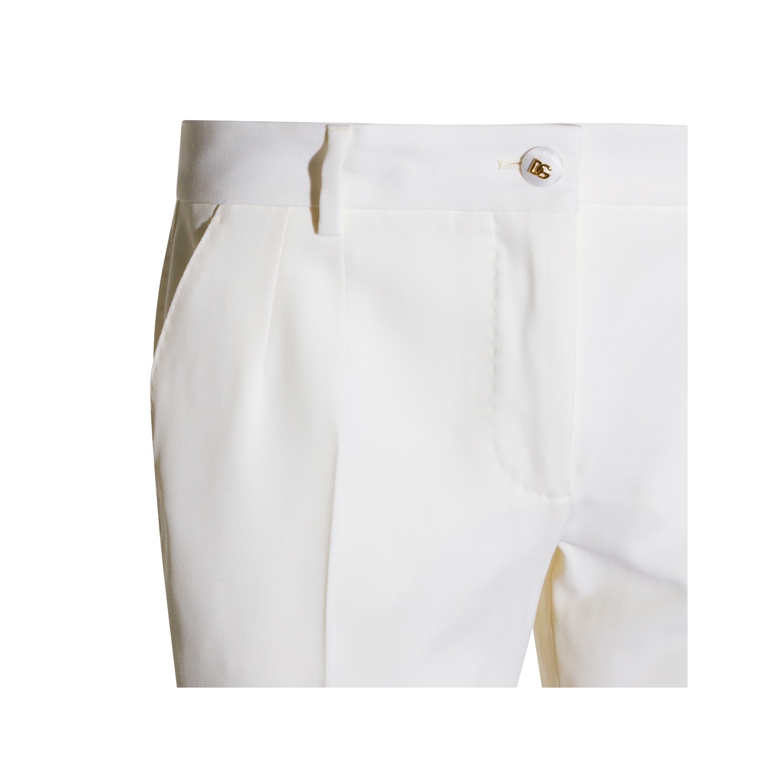 White wool pants from Dolce & Gabbana featuring belt loops, zip and button fastening and straight leg.