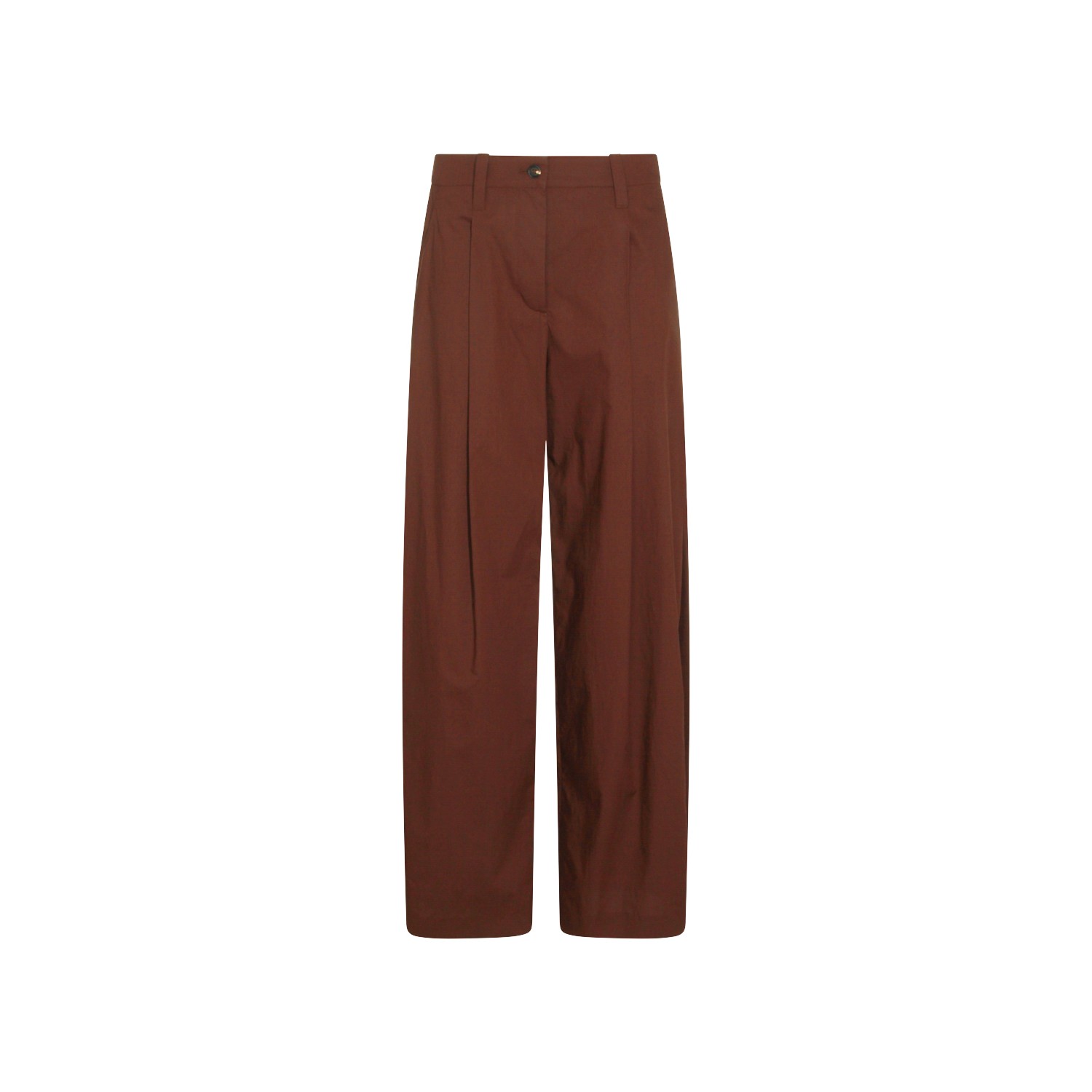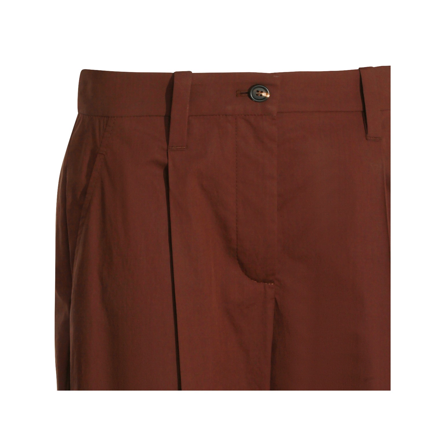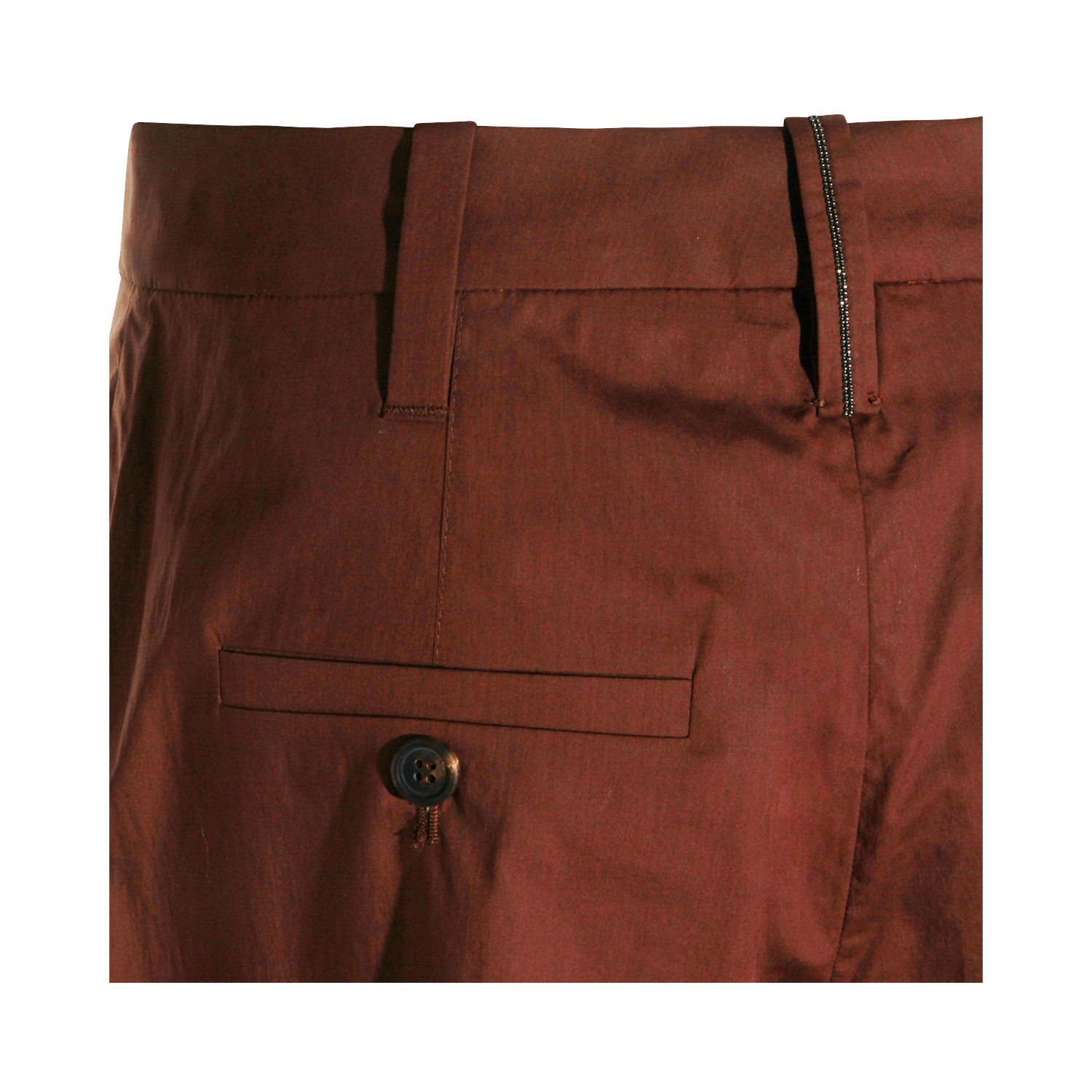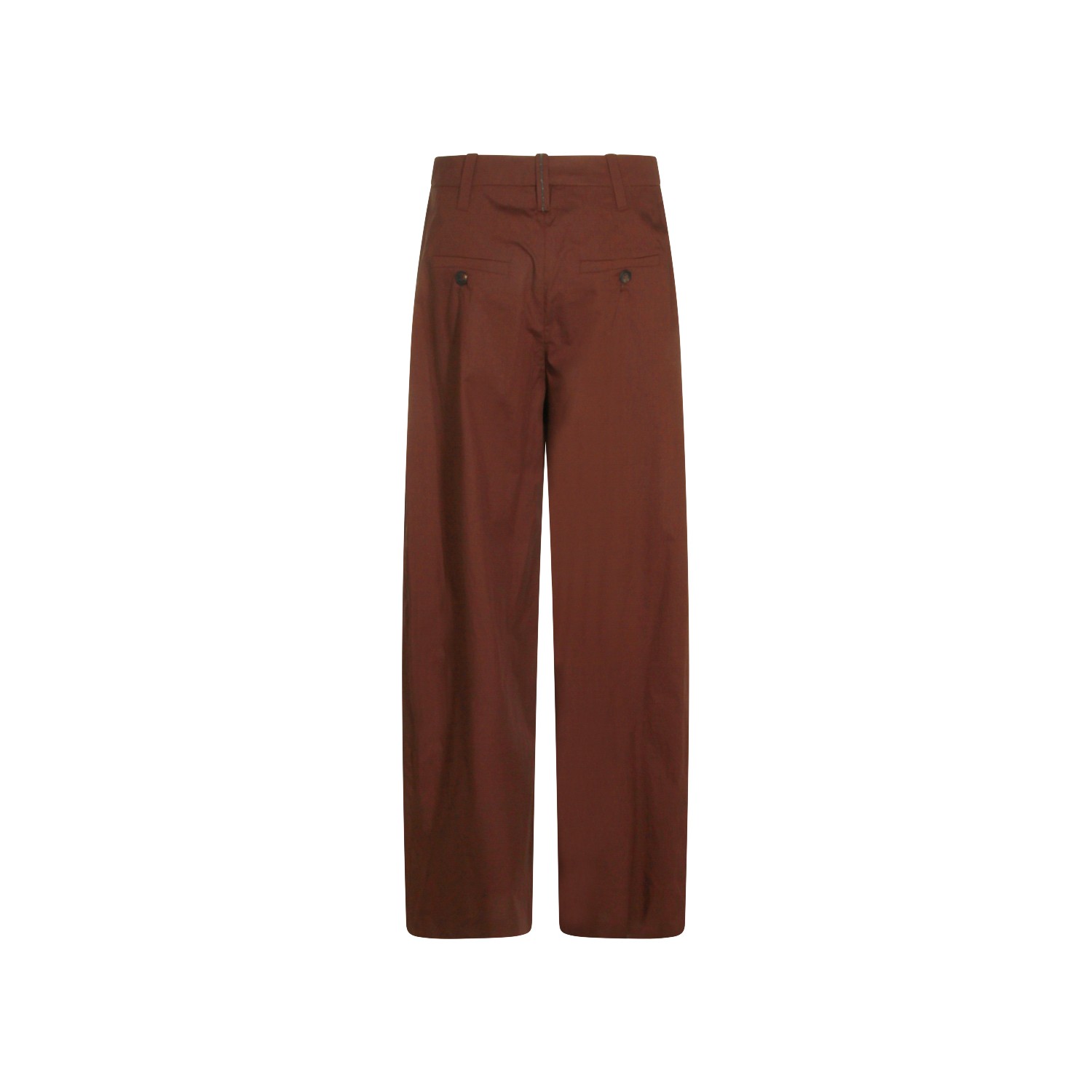 Brown cotton pant from Brunello Cucinelli featuring belt loops, zip and button fastening, pleats on the front and wide leg.