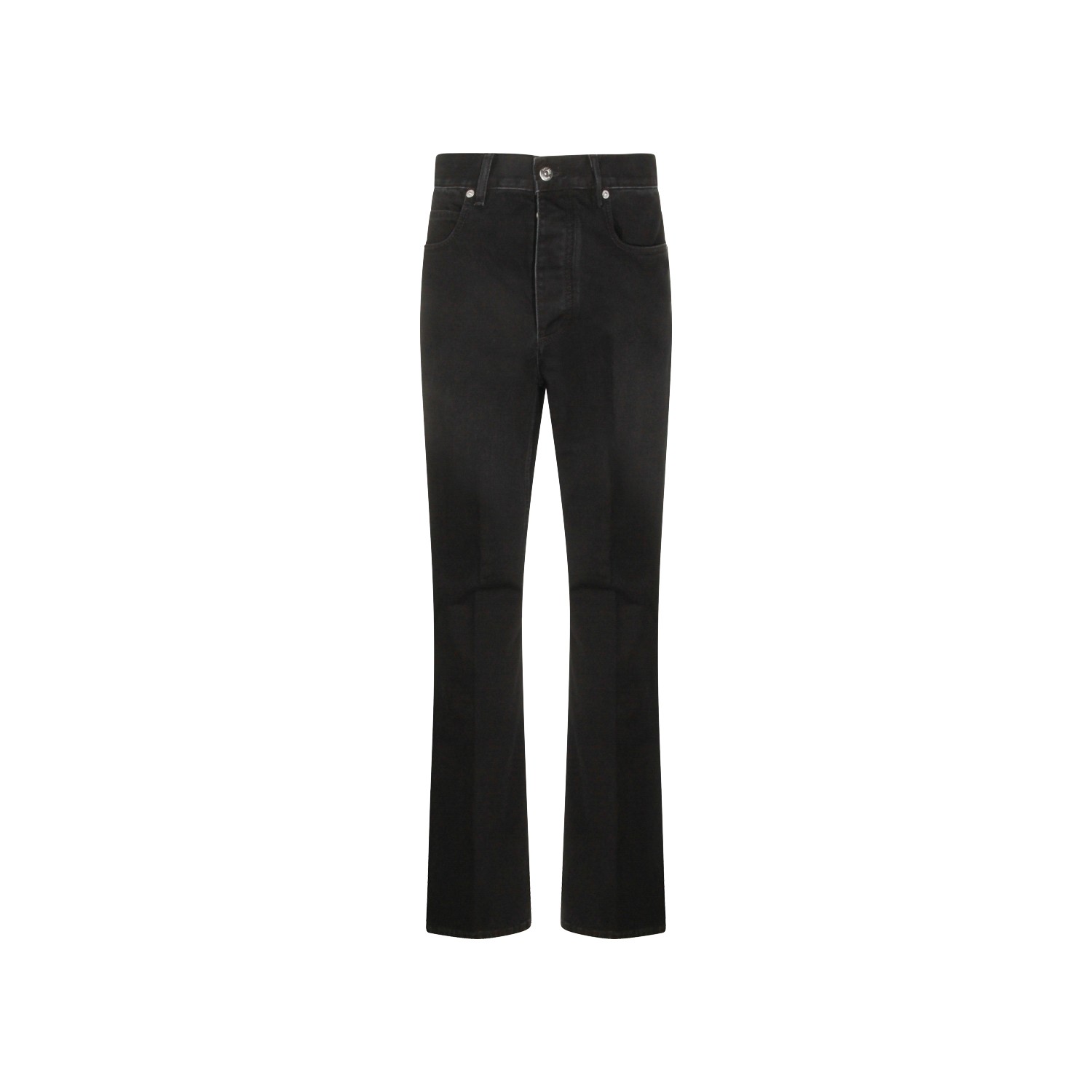 Black cotton pant from Bottega Veneta featuring high waist, belt loops, zip and button fastening, classic 5 pockets, straight hem and regular vestibility.