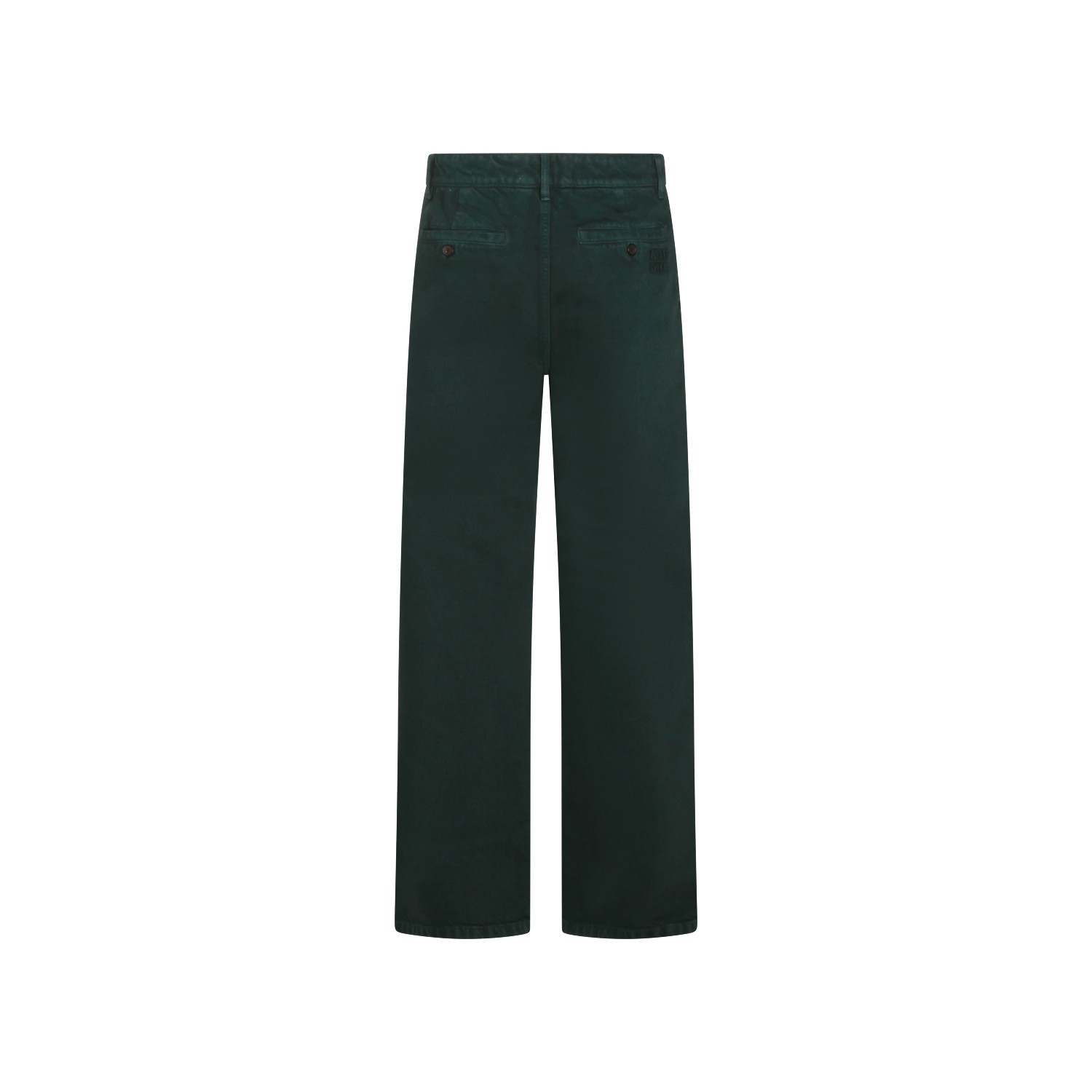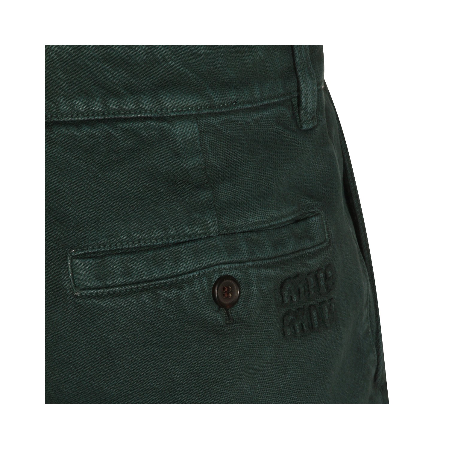 Dark green cotton from Miu Miu featuring high waist, belt loops, zip and button fastening, classic 5 pockets and wide leg.