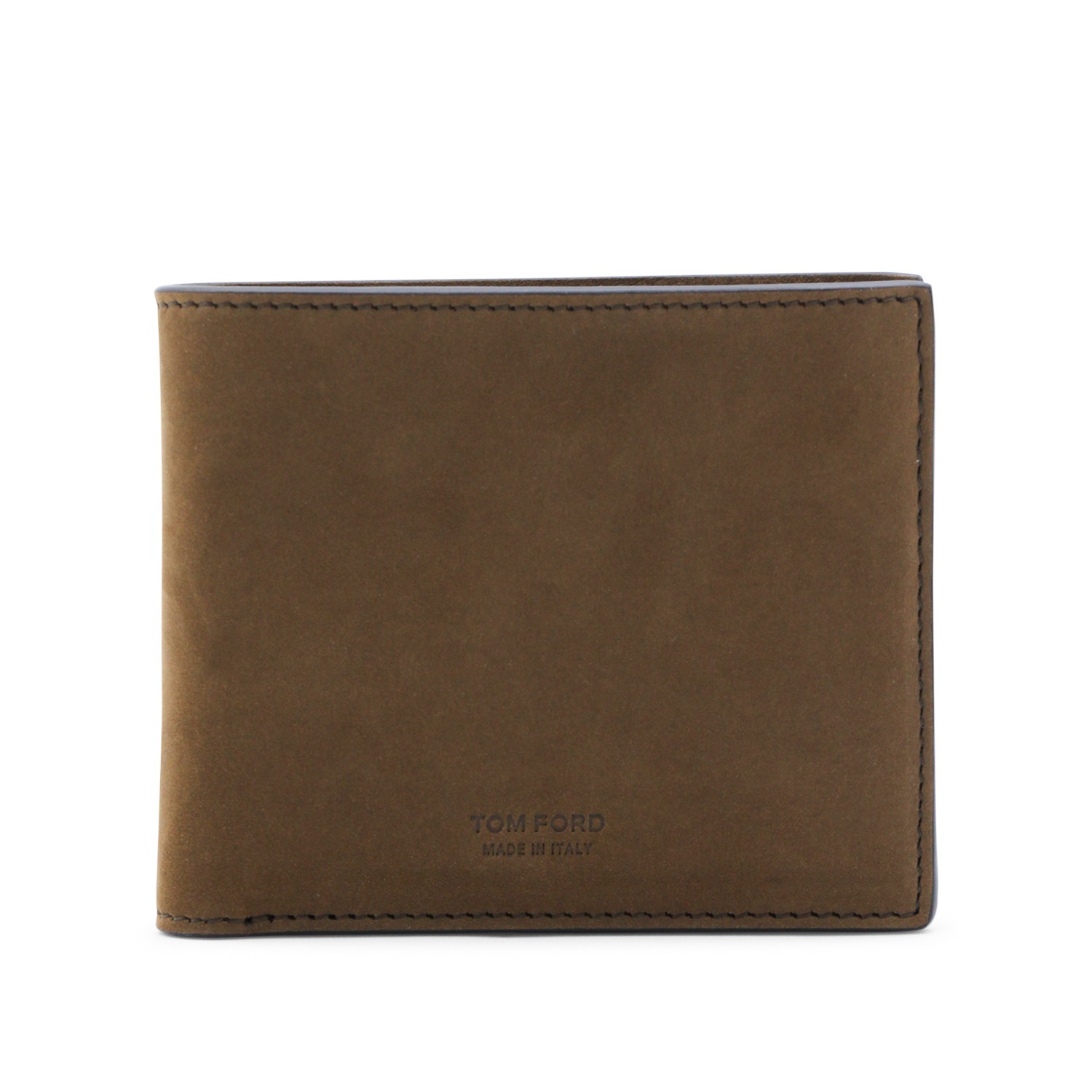 Brown leather wallet from Tom Ford featuring embossed logo, inside card slots and pocket and suede.